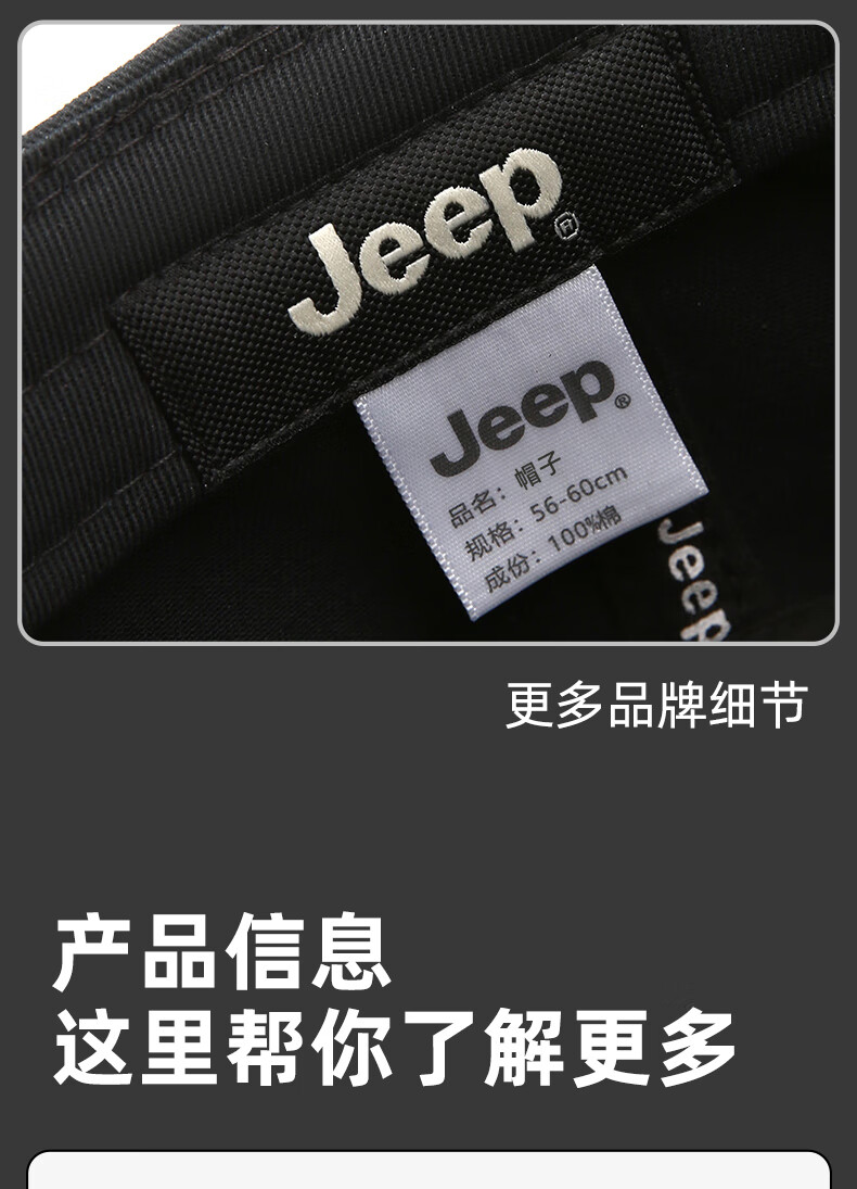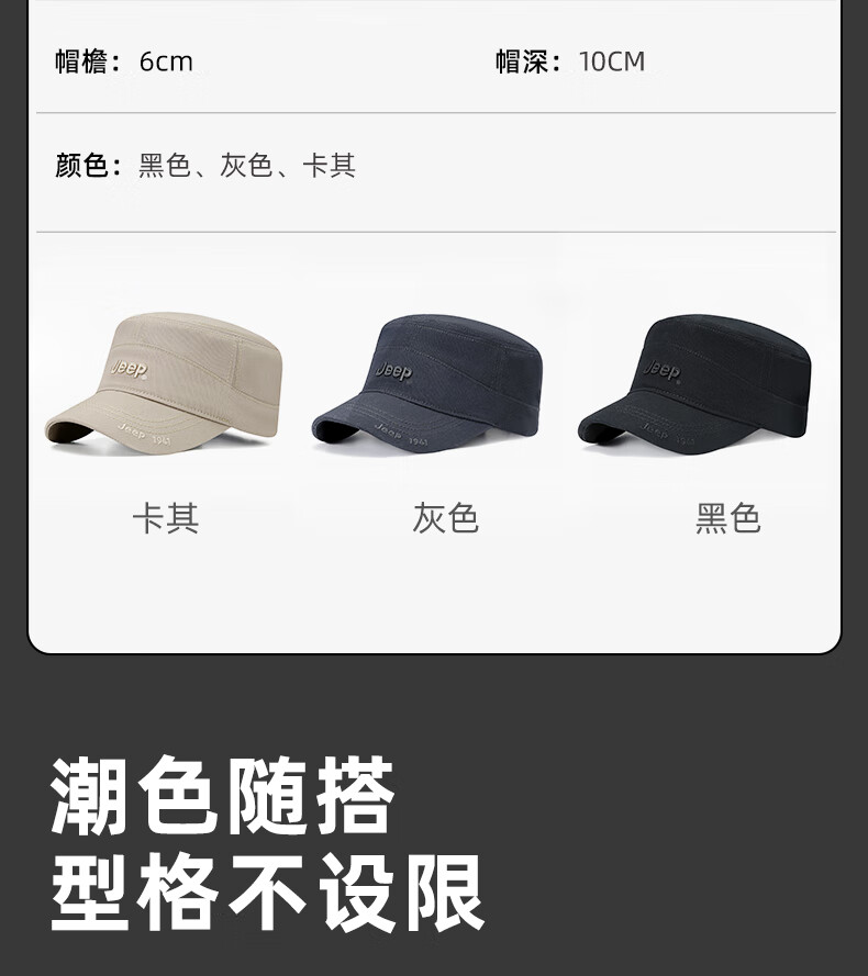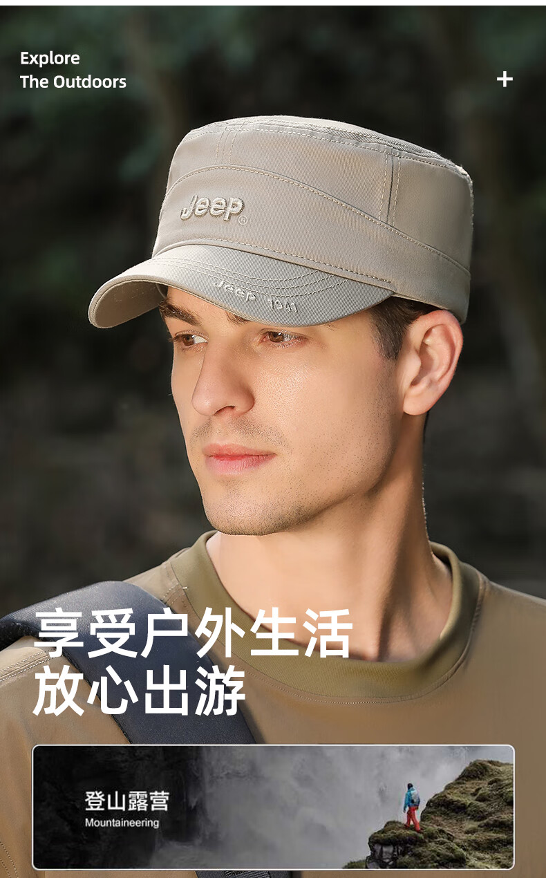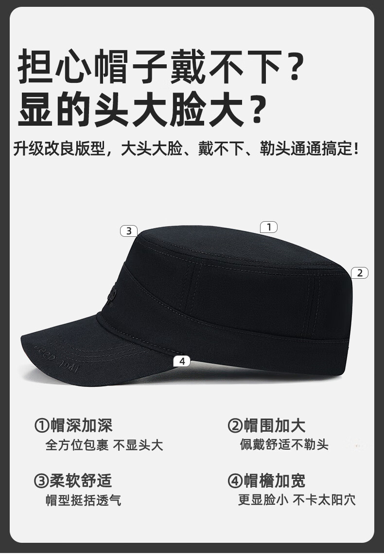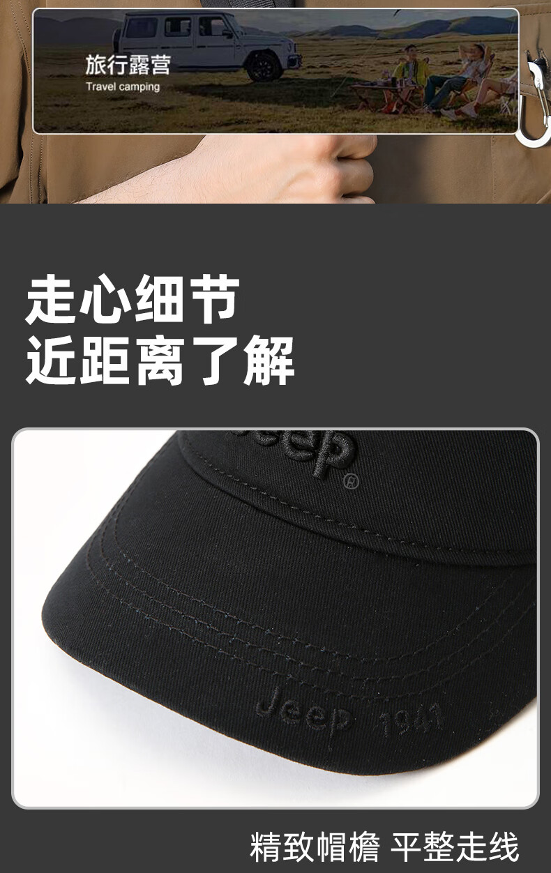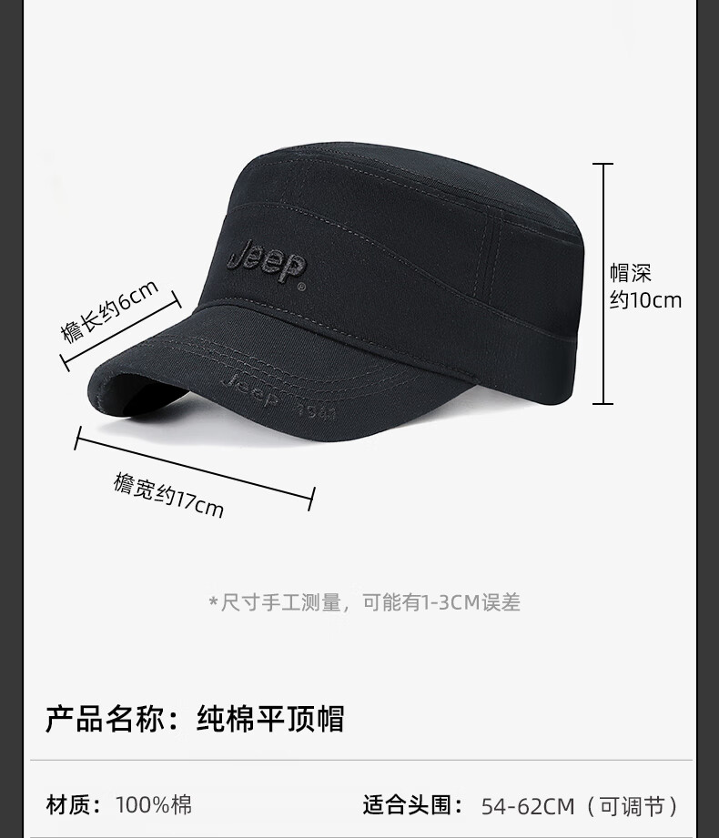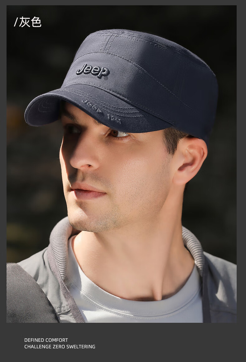 吉普(JEEP)帽子男士棒球帽四季百搭纯棉鸭舌帽平顶太阳帽中老年遮阳帽子