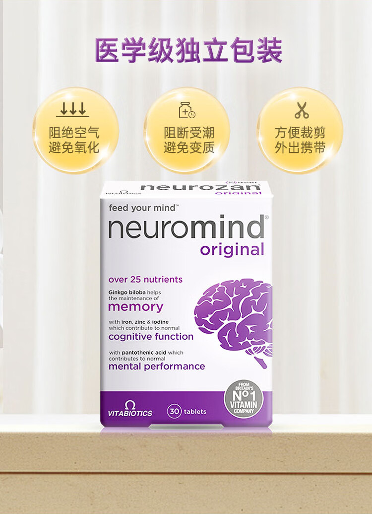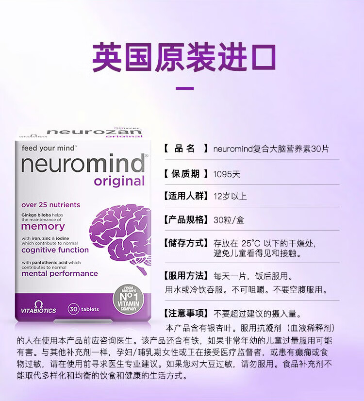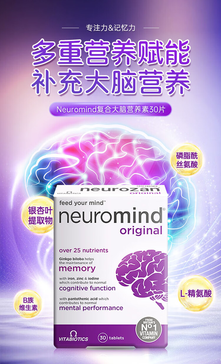 Vitabiotics薇塔贝尔补充脑力片PS磷脂酰丝氨酸备考记忆力银杏叶提取物30片
