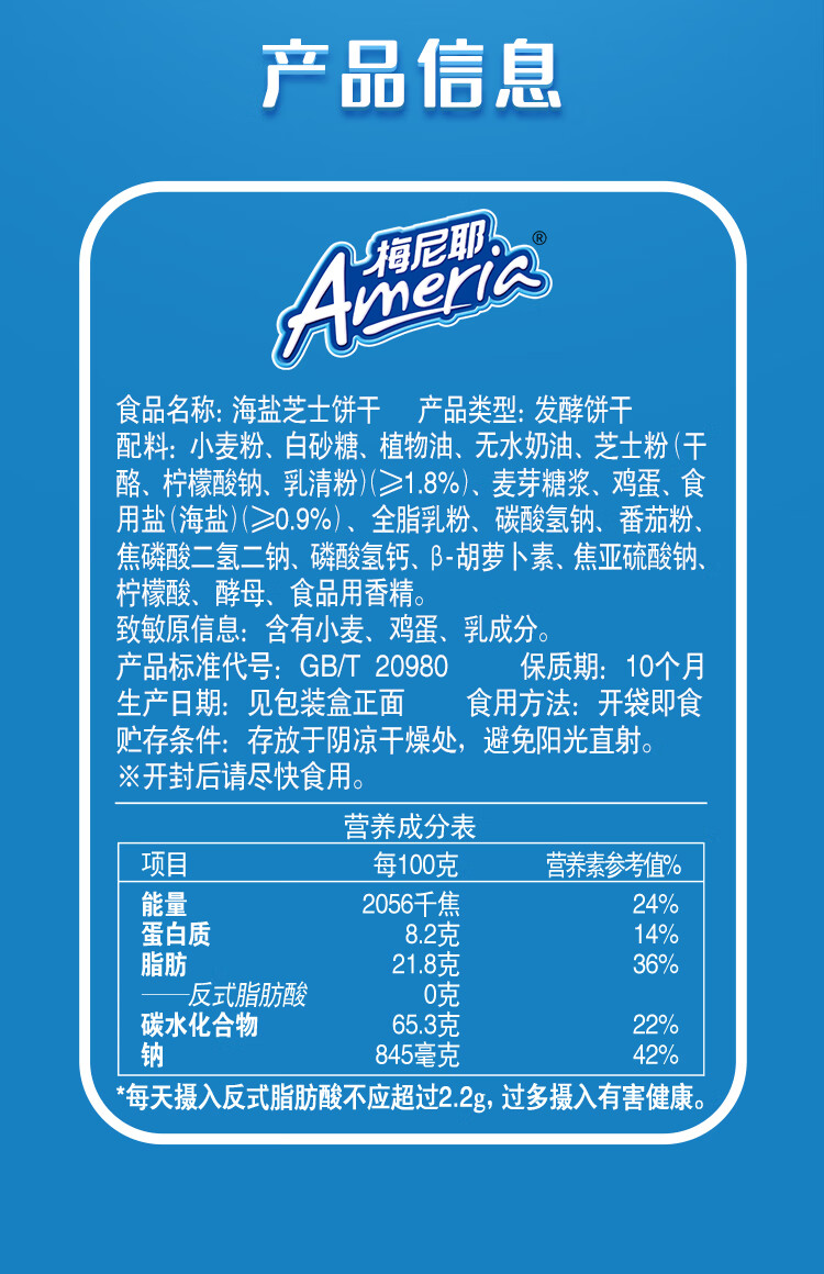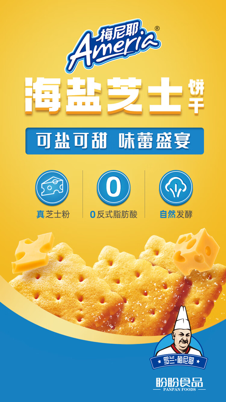梅尼耶 海盐芝士饼干 咸味苏打饼干休闲零食早餐点心下午茶 200g/盒