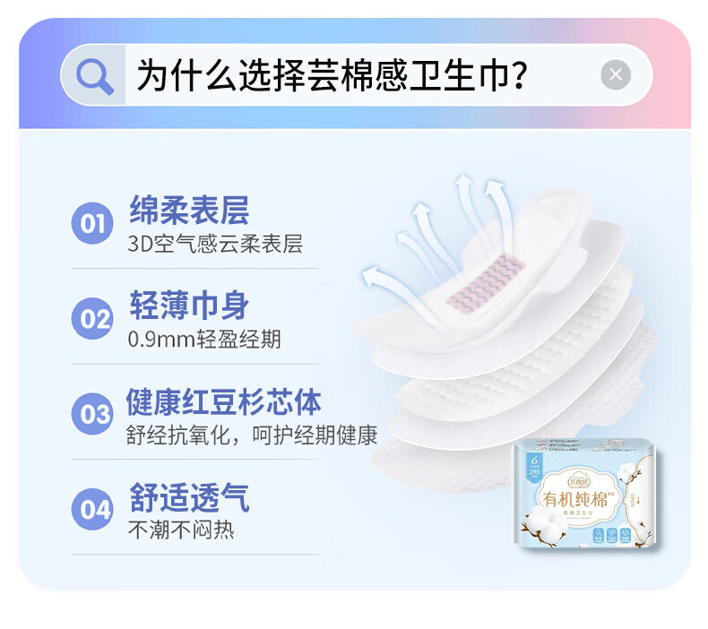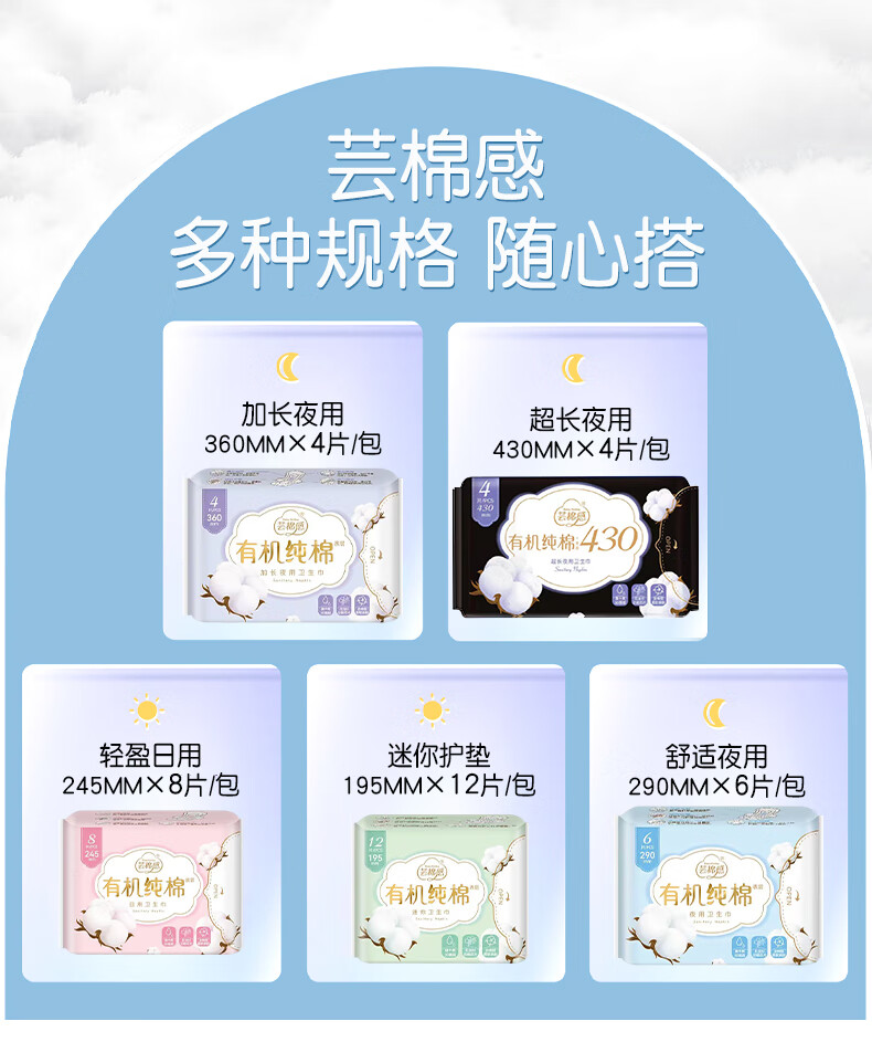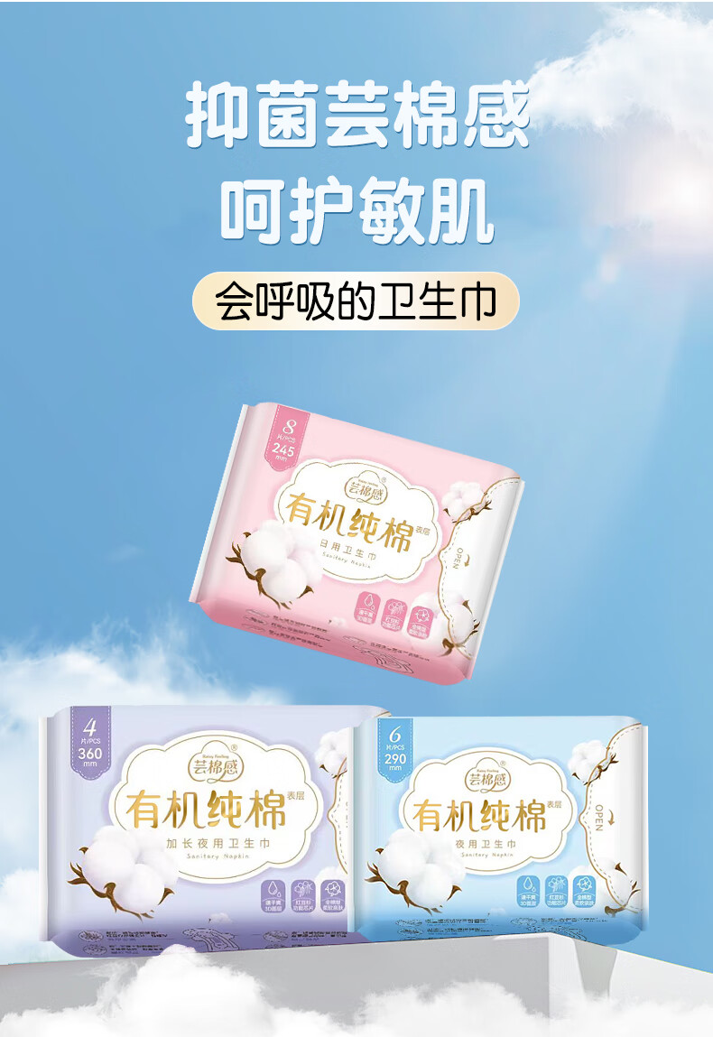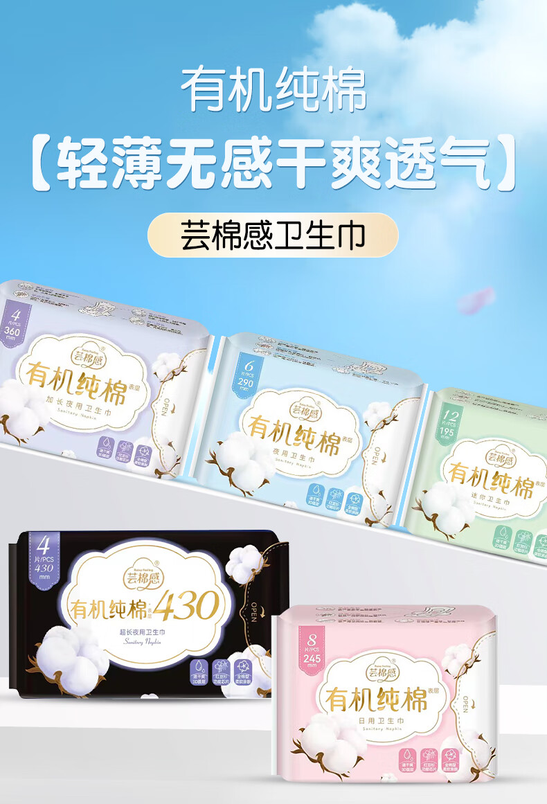 【DL商超爆款】芸棉感卫生巾日夜组合套装超薄红豆杉芯片有机纯棉 【2包到手20片】1包日用245+1包迷你195