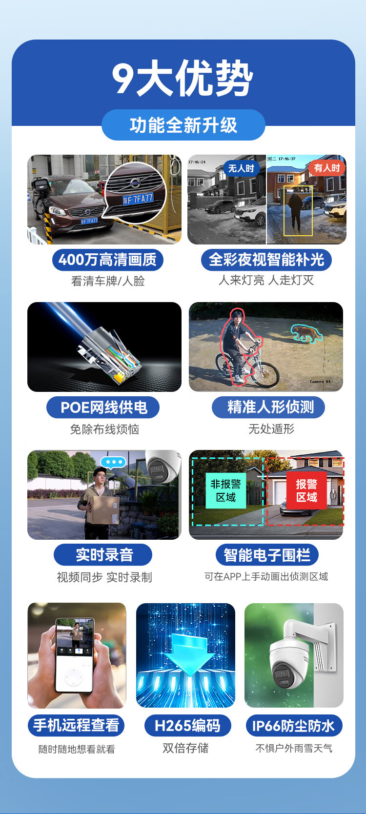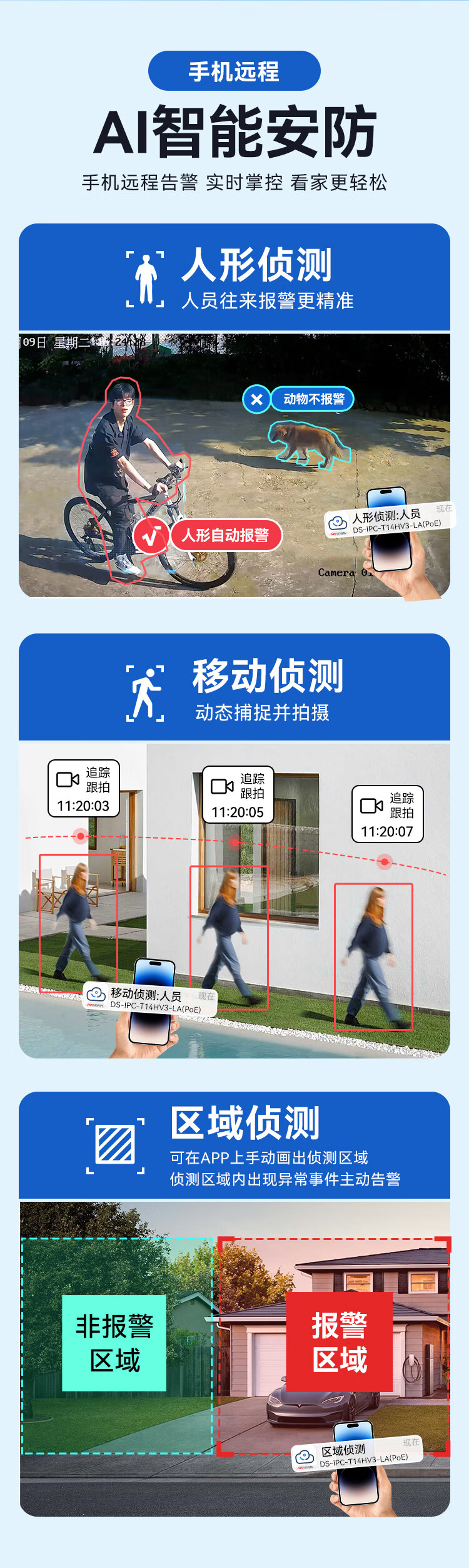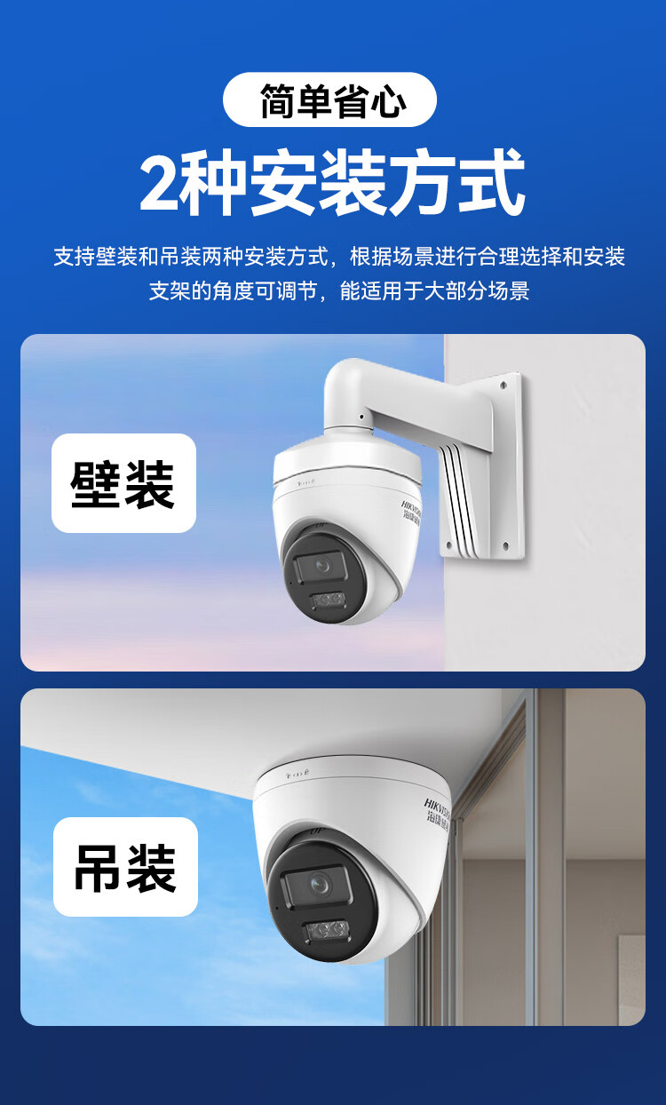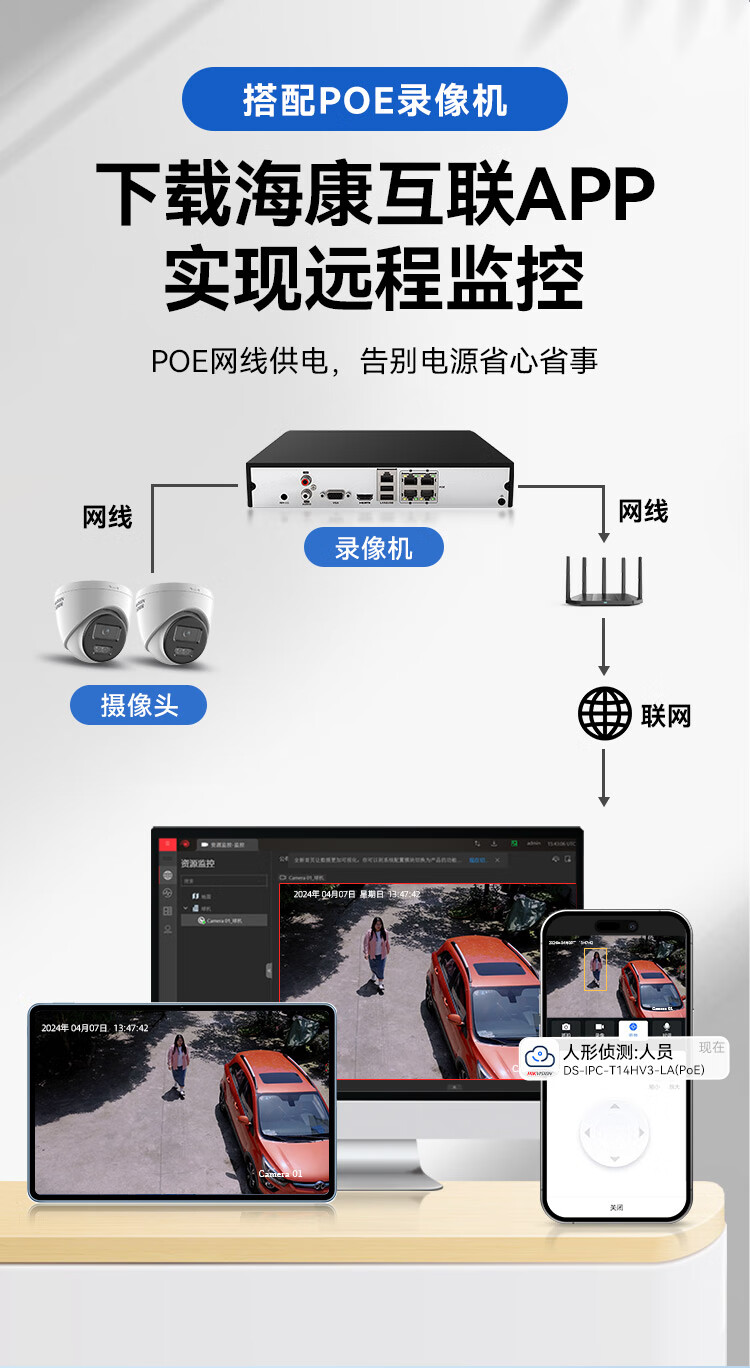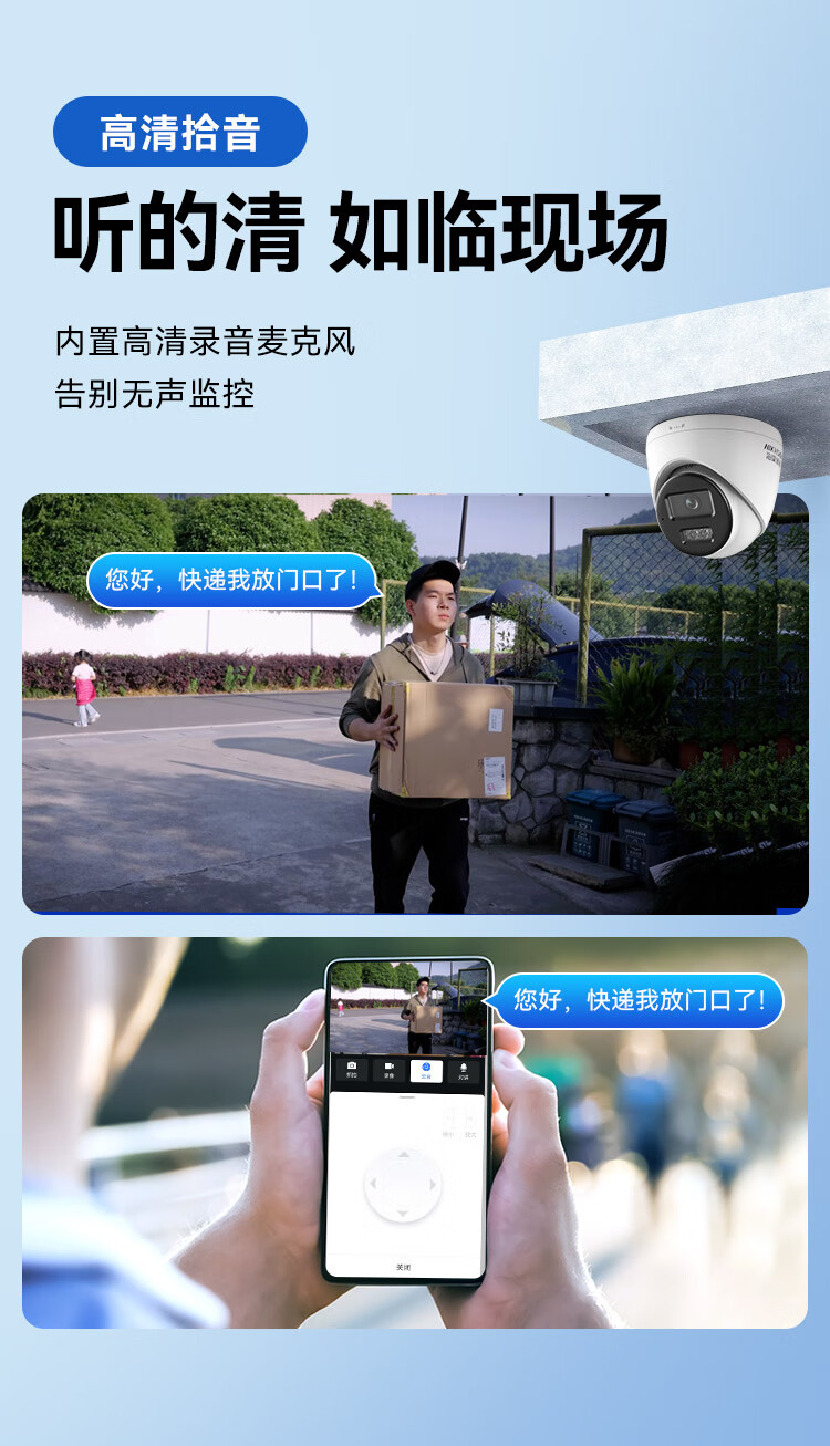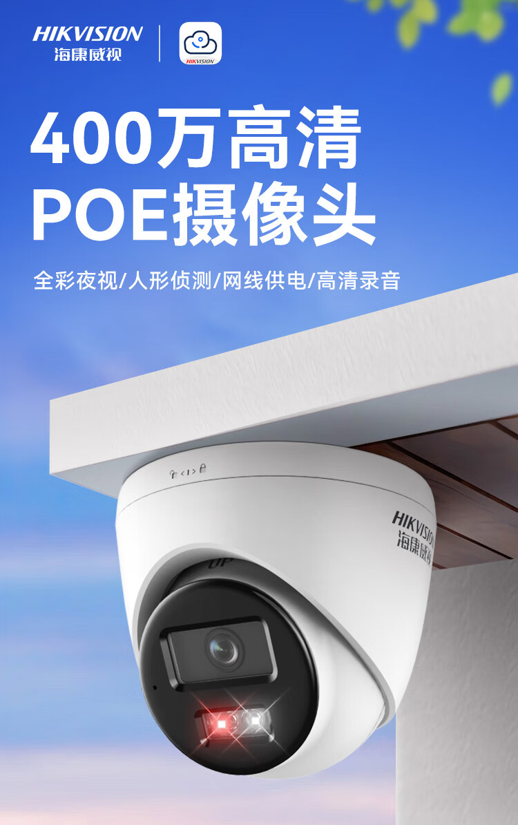 HIKVISION海康威视监控摄像头400万2K高清全彩夜视poe供电AI人形检测语音对讲商超室内半球K34HV2-LT 4MM