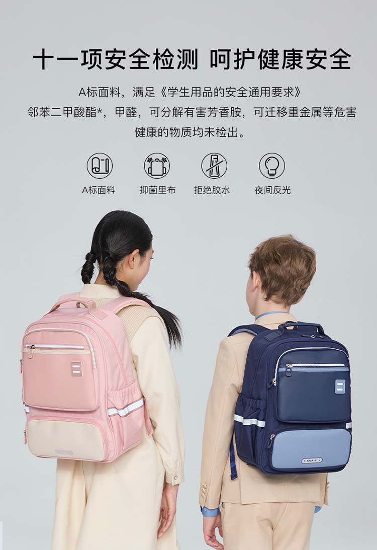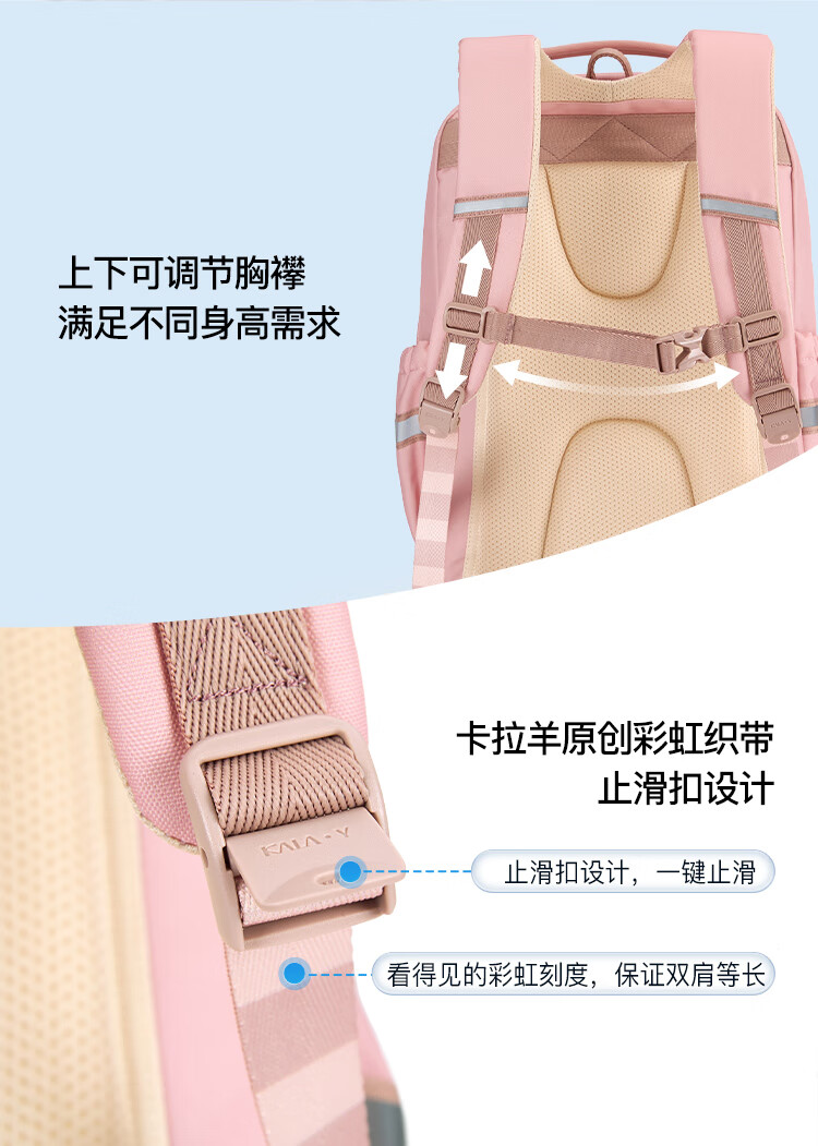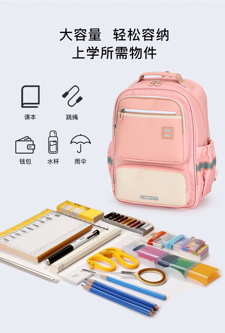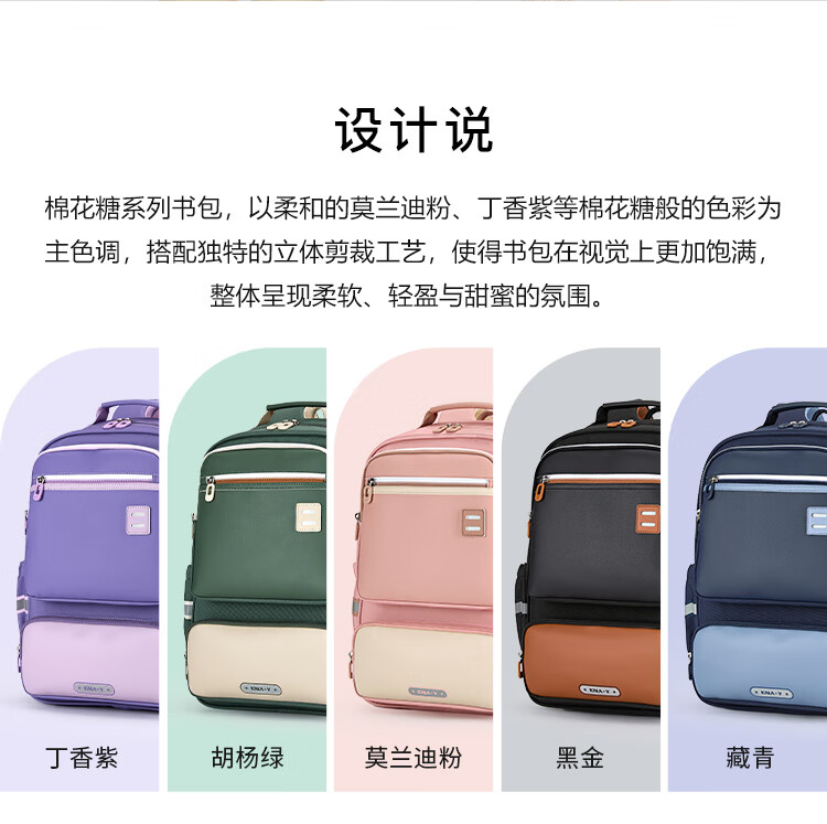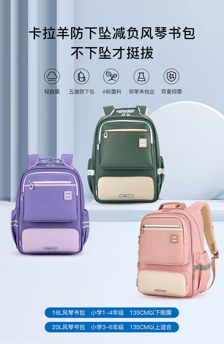 卡拉羊小学生1-6年级防下坠减负风琴书包大容量高颜值双肩包儿童书包 【棉花糖】藏青 【容量18L】身高135cm以下