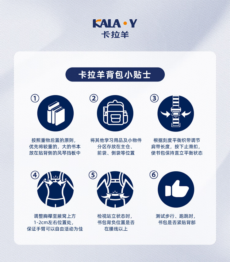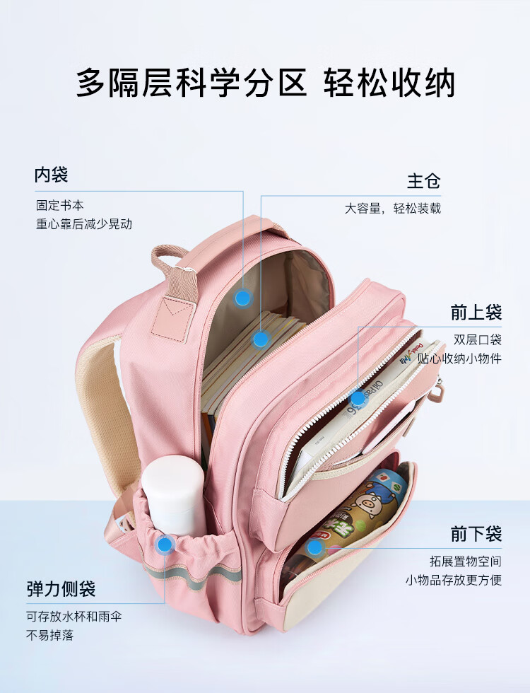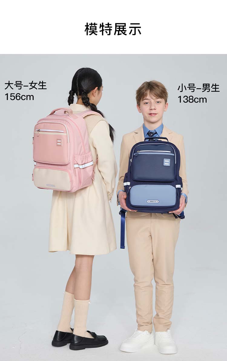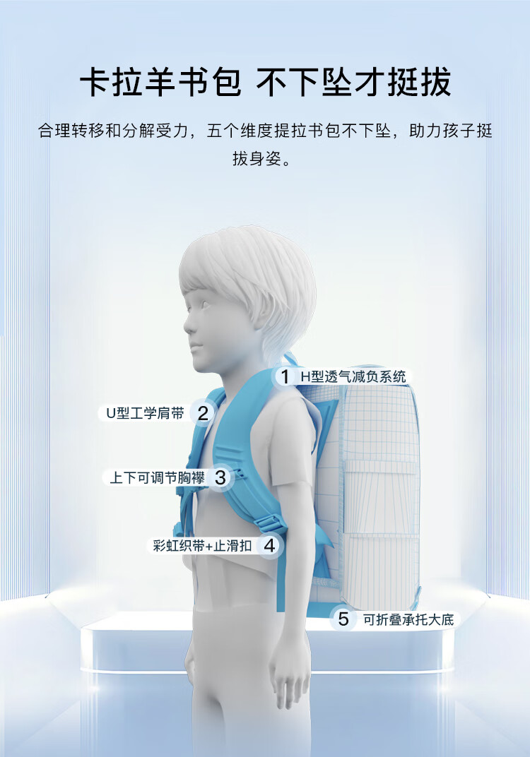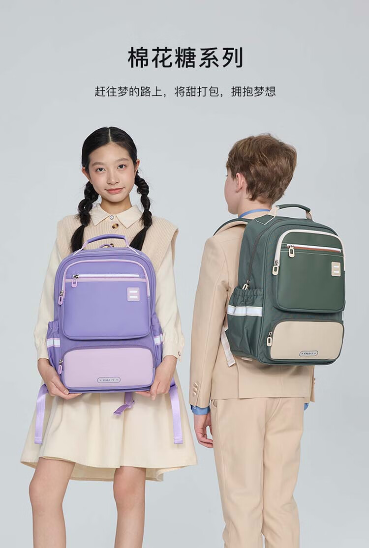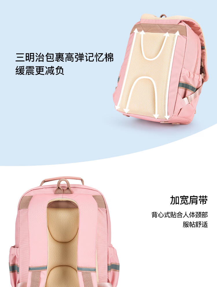 卡拉羊小学生1-6年级防下坠减负风琴书包大容量高颜值双肩包儿童书包 【棉花糖】藏青 【容量18L】身高135cm以下
