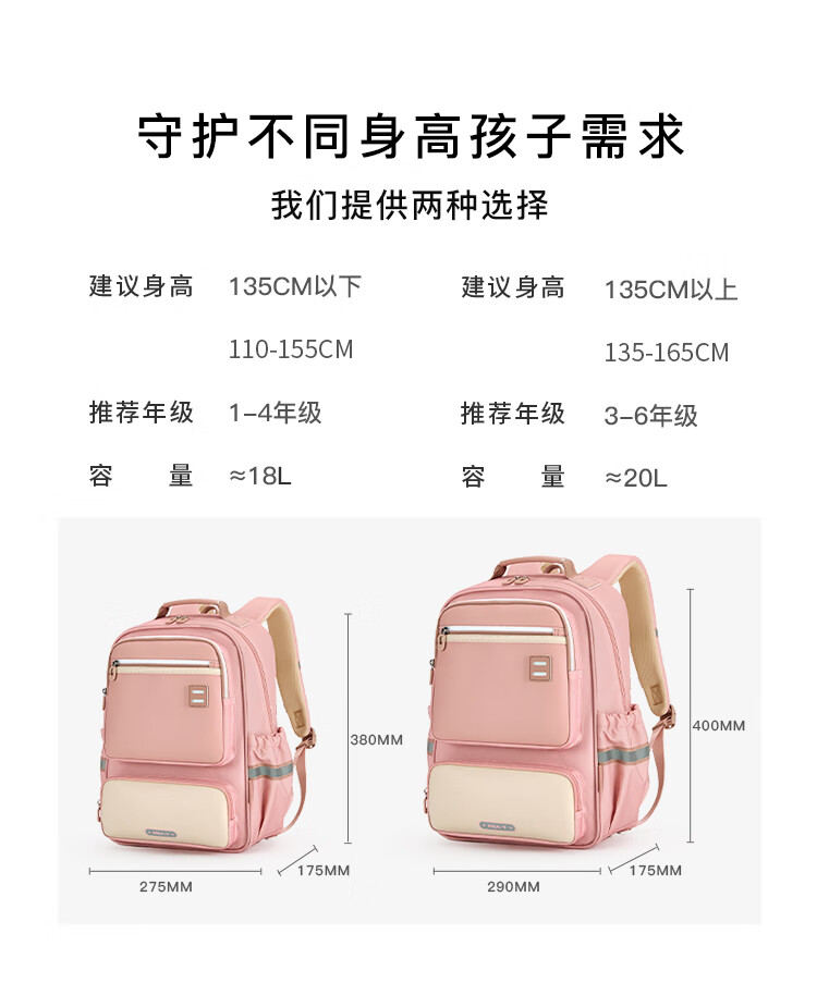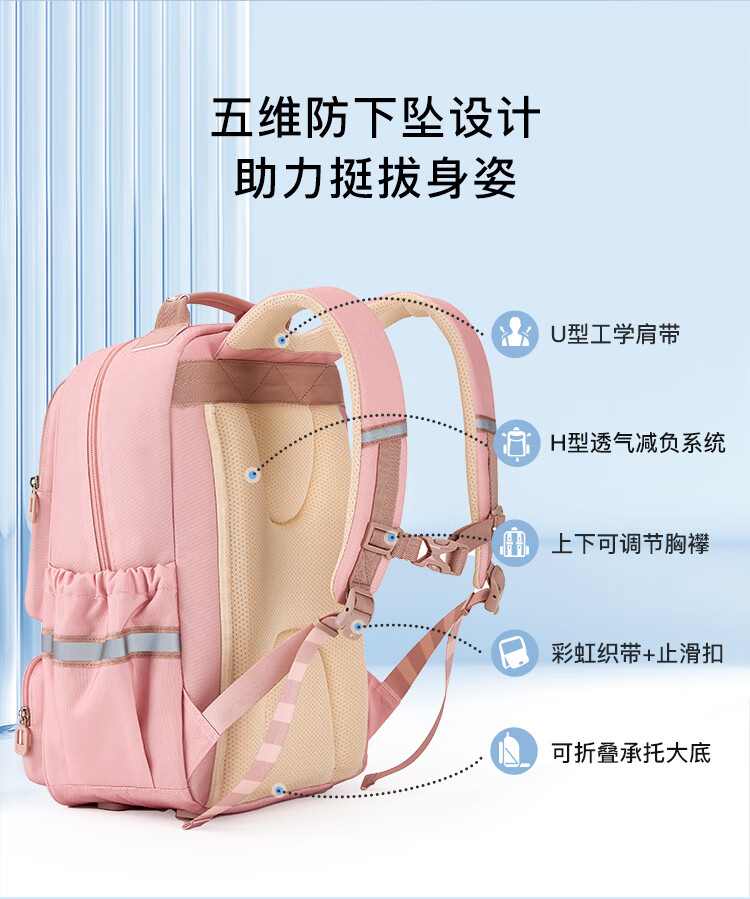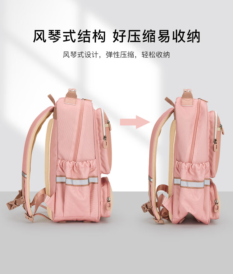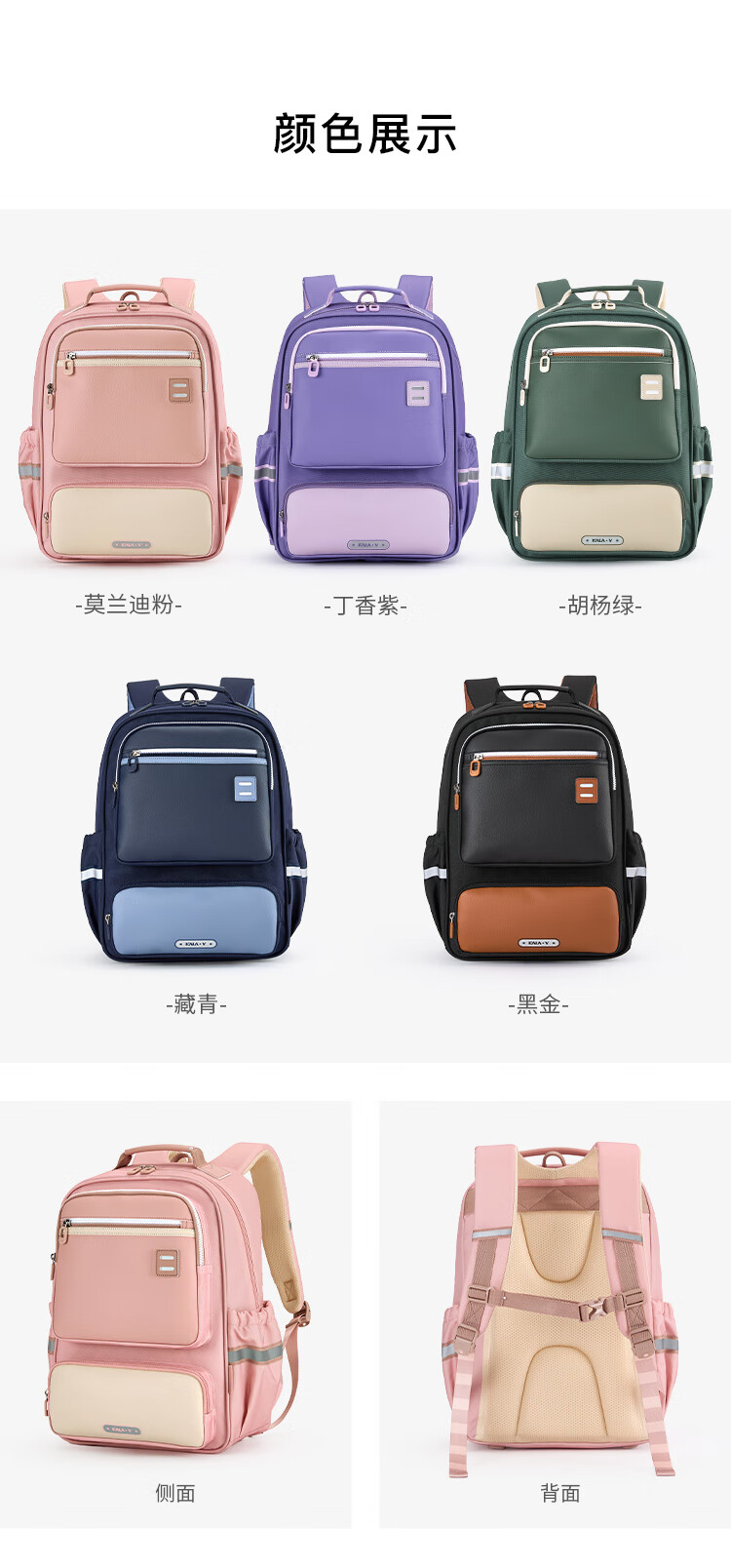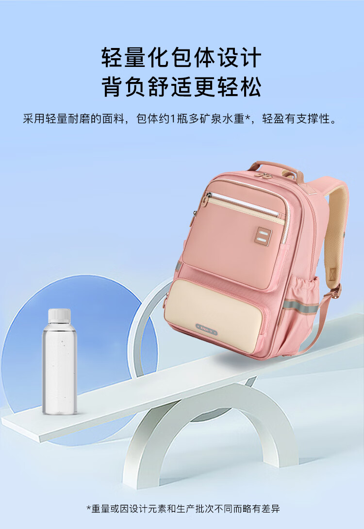卡拉羊小学生1-6年级防下坠减负风琴书包大容量高颜值双肩包儿童书包 【棉花糖】藏青 【容量18L】身高135cm以下