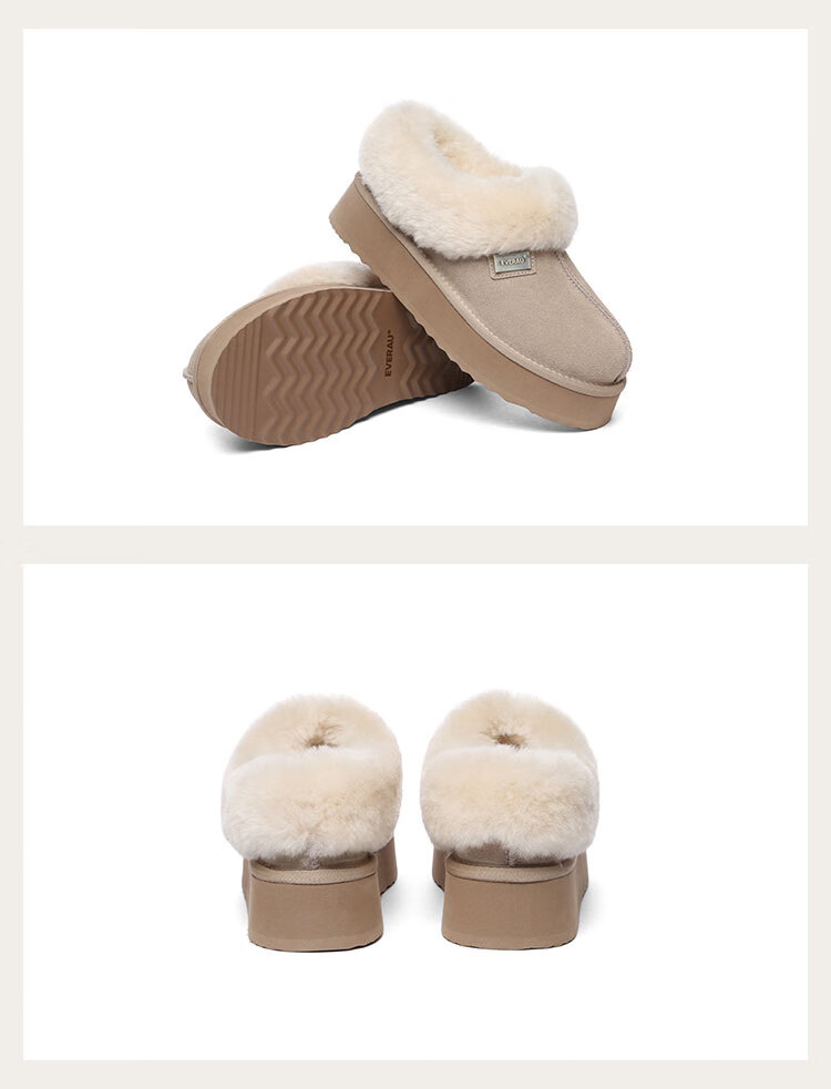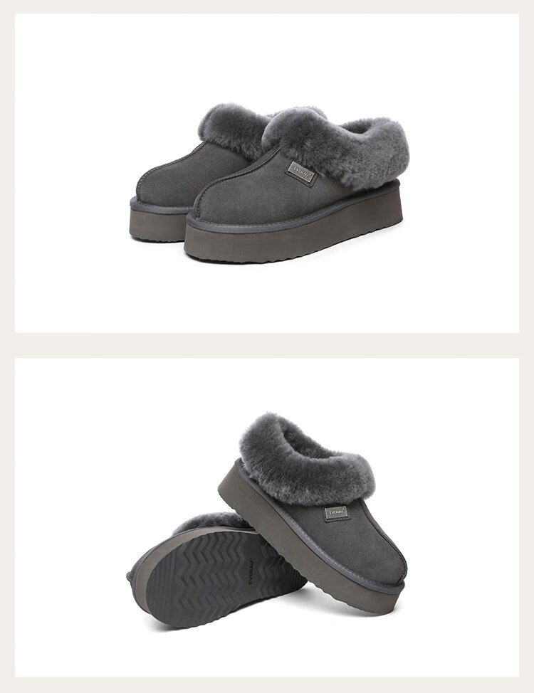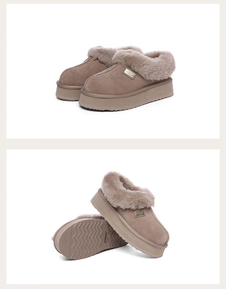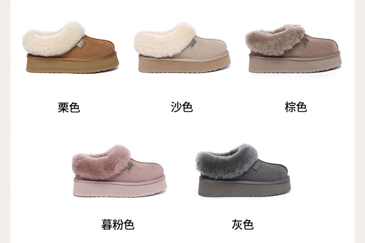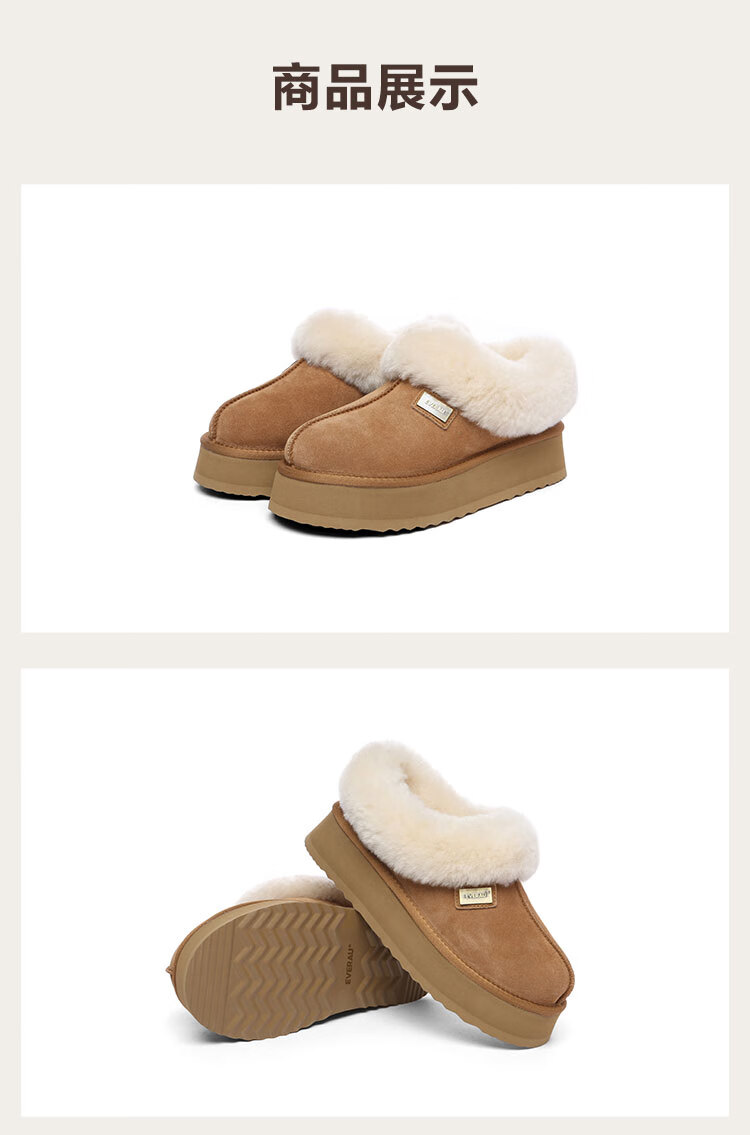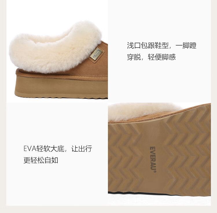 EVERAU女士冬季茸茸毛鞋领厚底便鞋休闲舒适棉鞋面包鞋懒人鞋丨UEA2001 栗色 37