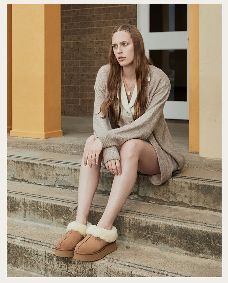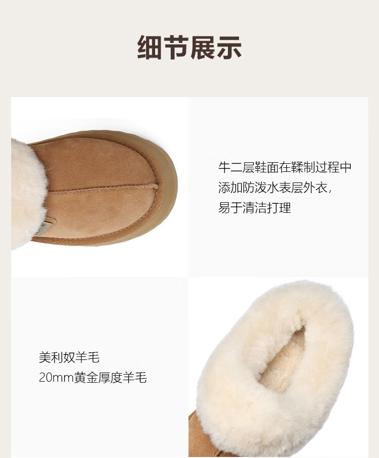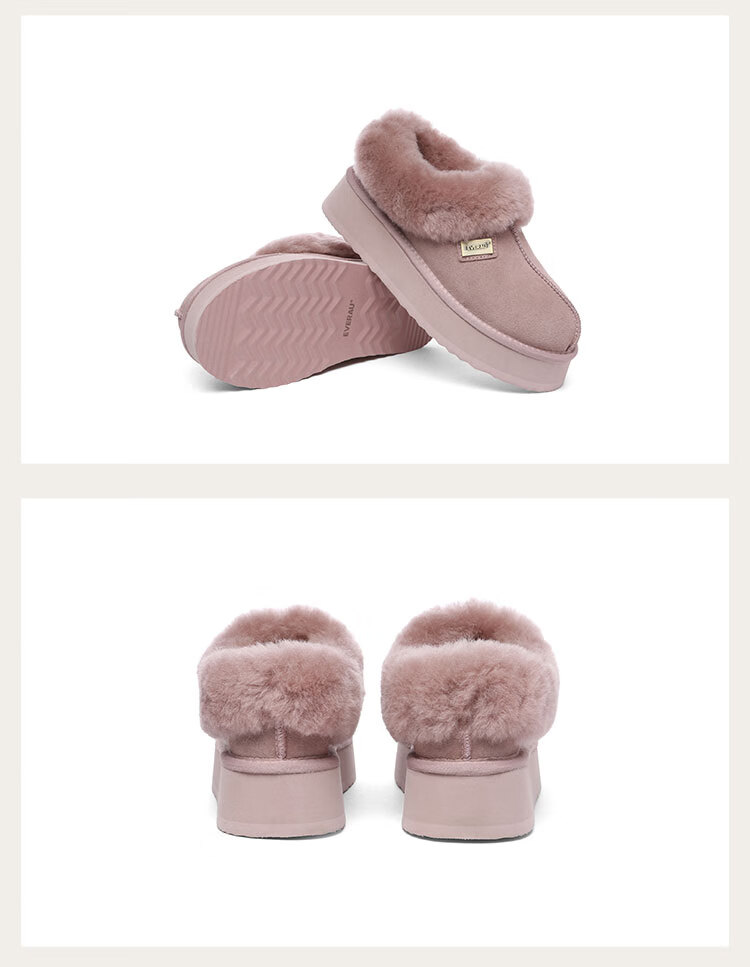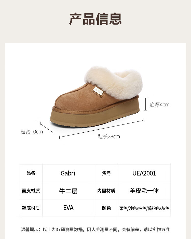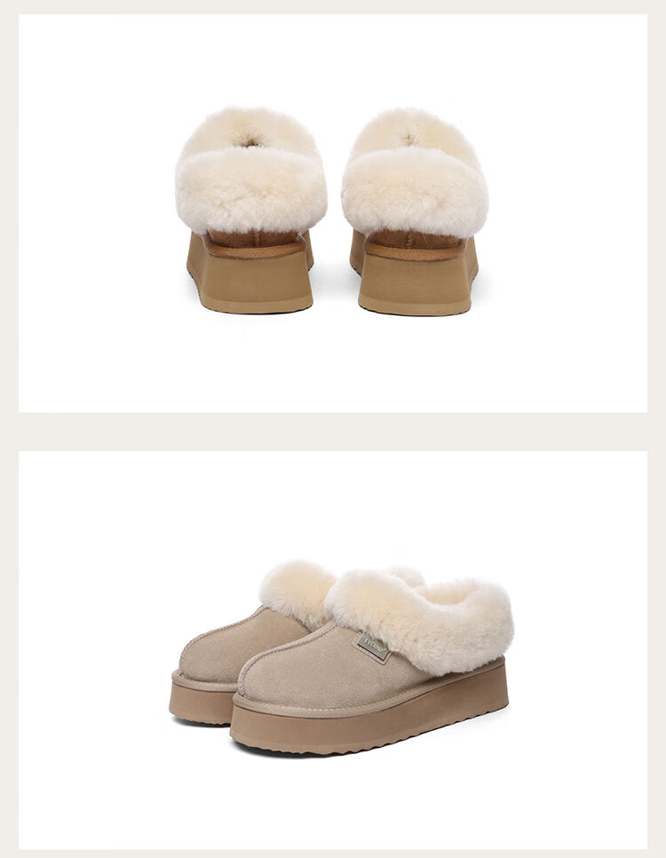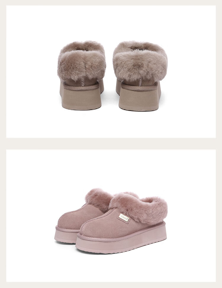 EVERAU女士冬季茸茸毛鞋领厚底便鞋休闲舒适棉鞋面包鞋懒人鞋丨UEA2001 栗色 37