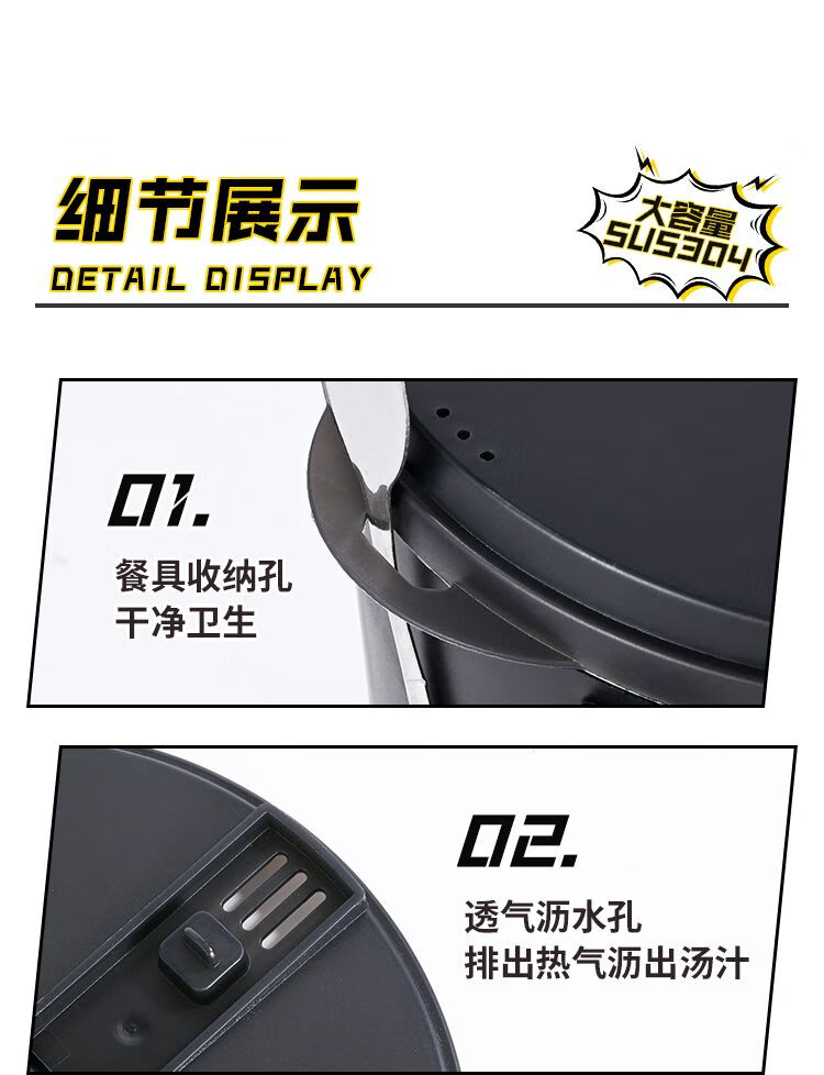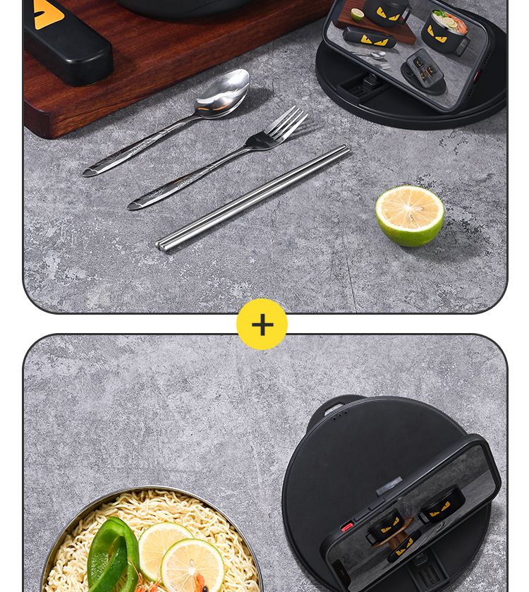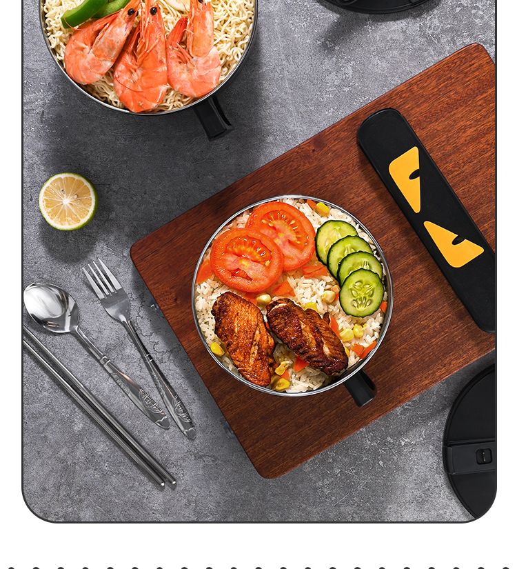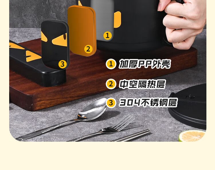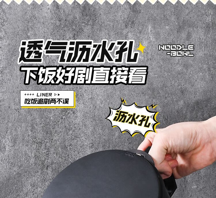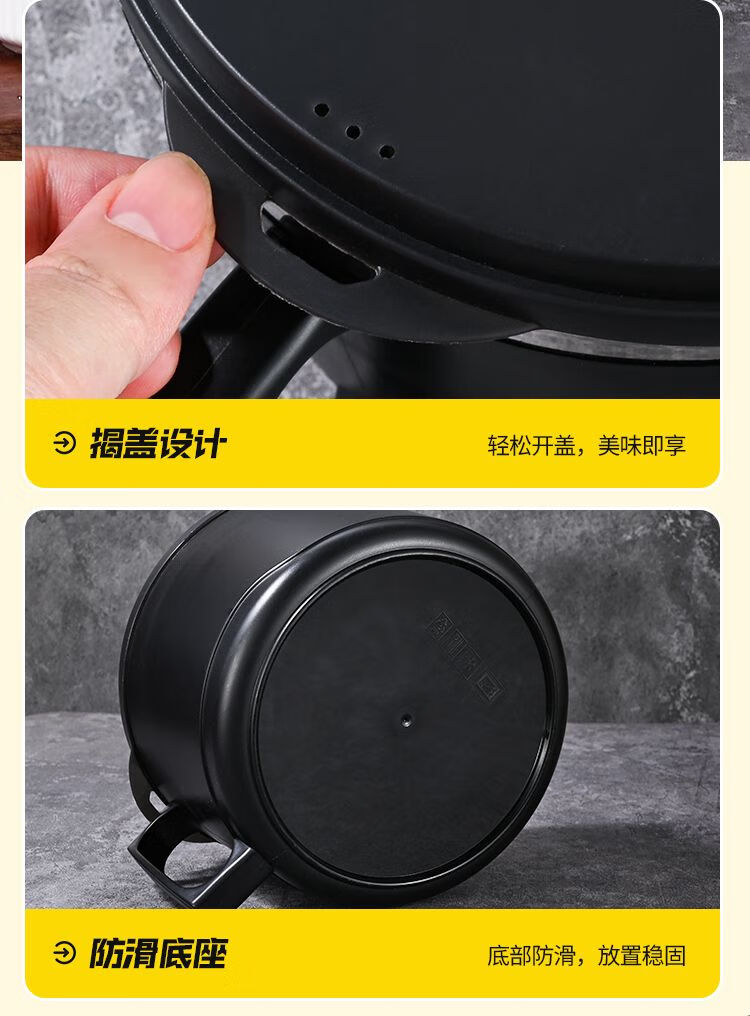 DEATKN德国泡面碗带盖日式304不锈钢ins风可沥水宿舍面碗大容量学生饭盒 全黑-加大号304小恶魔1500ml 泡面碗【配沥水防尘盖】