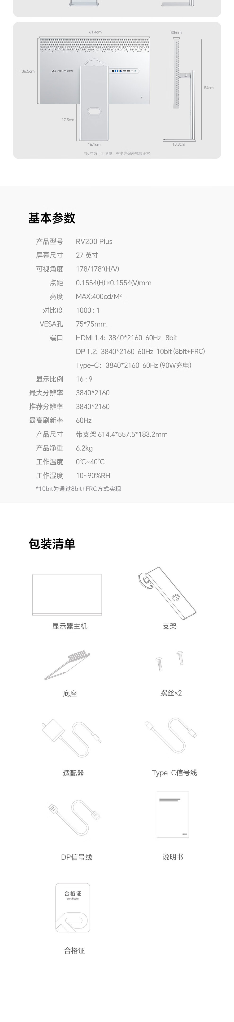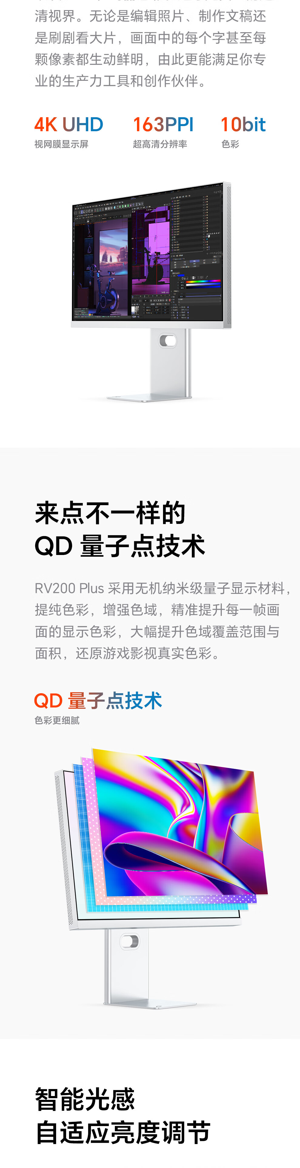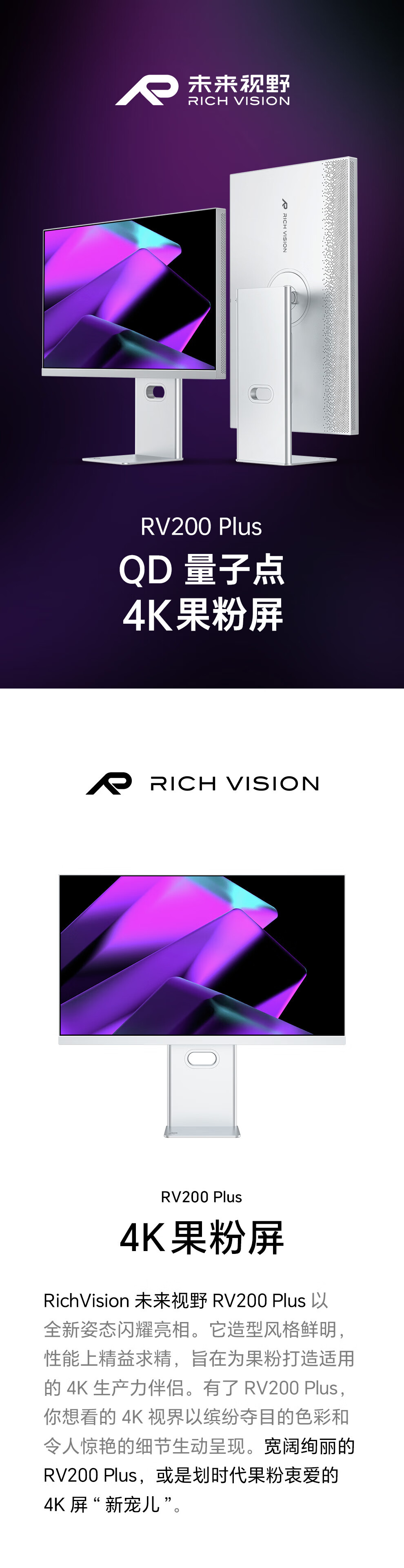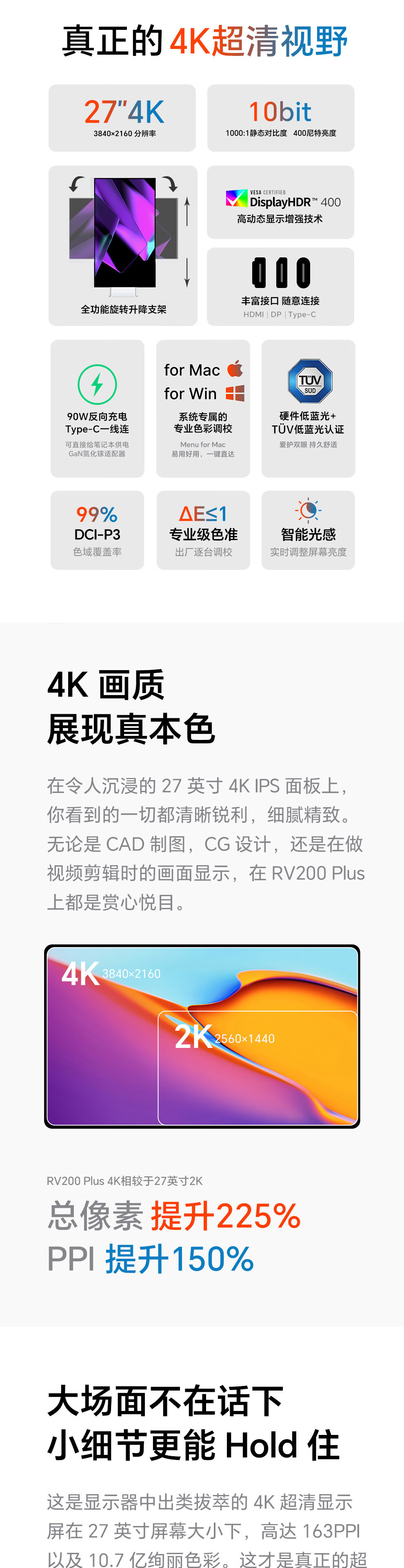 RICHVISION未来视野 27英寸4K显示器IPS果粉屏 10bit 量子点技术 Type-C90W 专业设计剪辑电脑屏幕 RV200plus