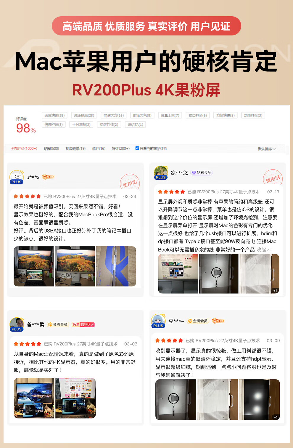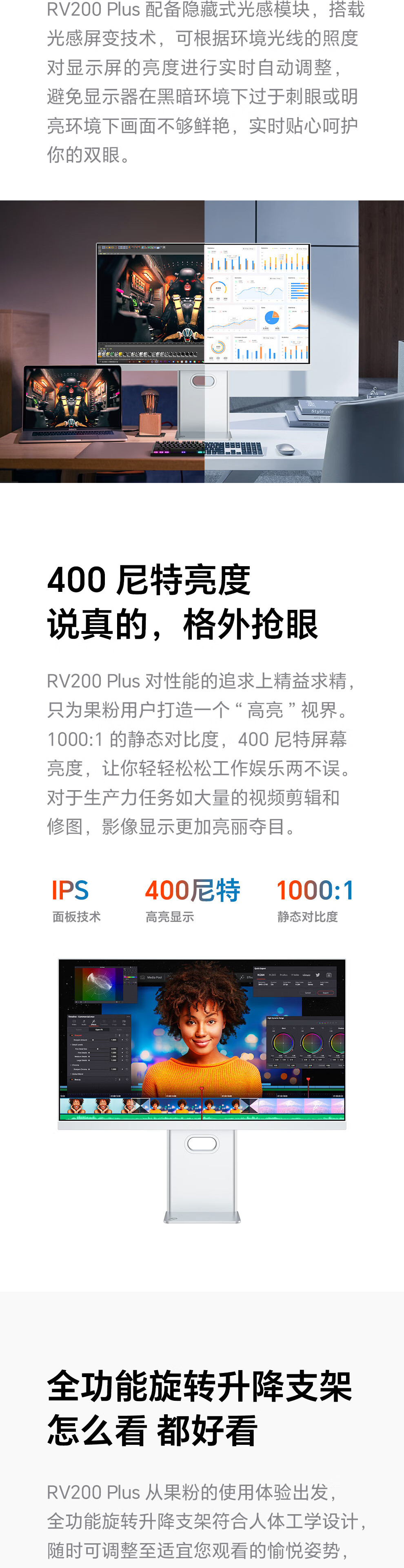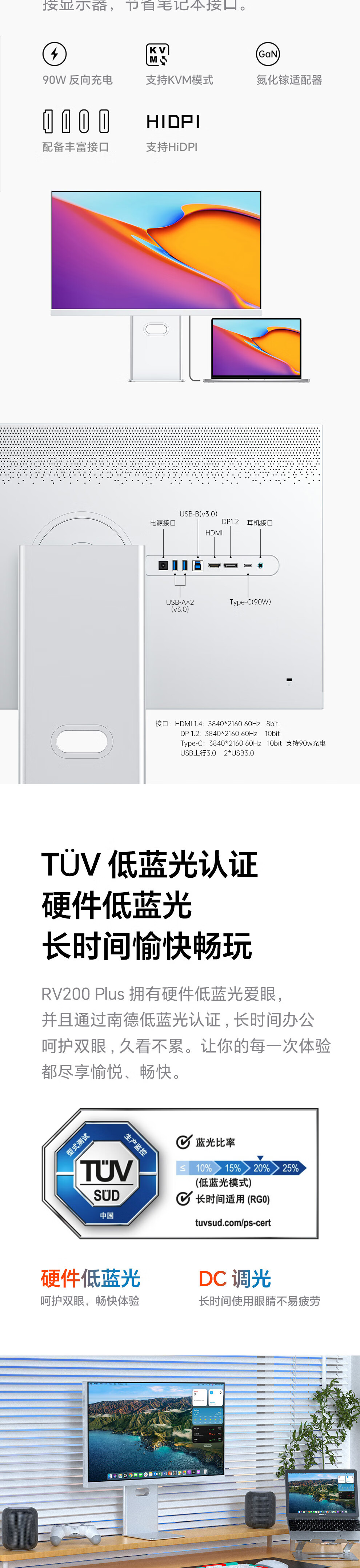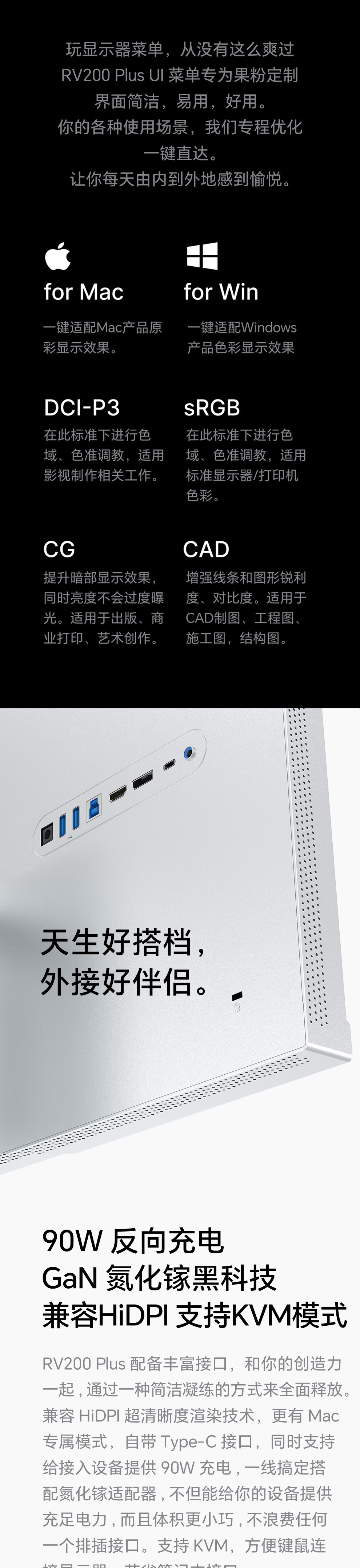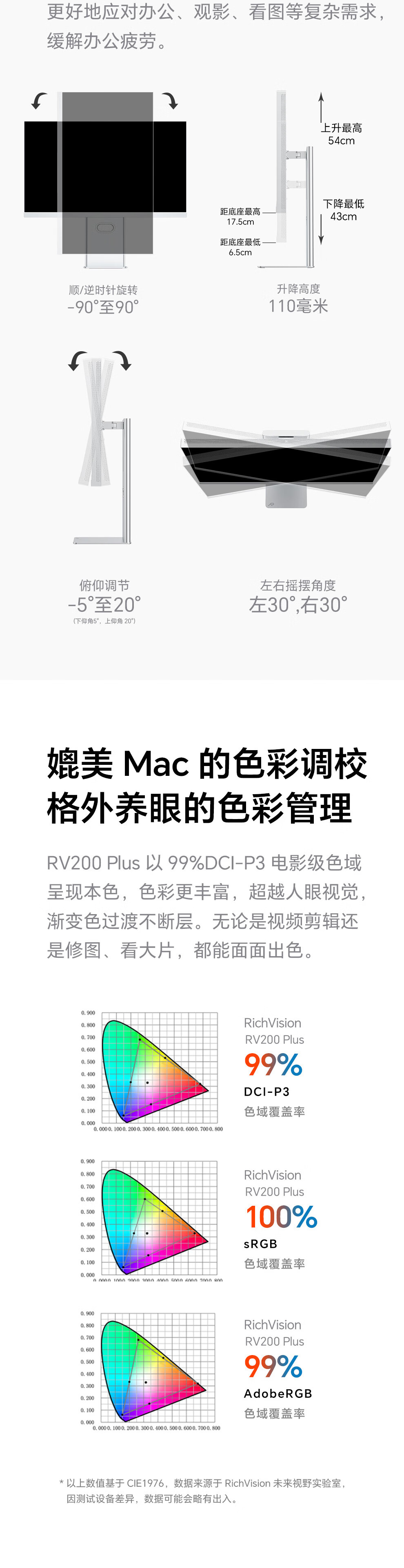 RICHVISION未来视野 27英寸4K显示器IPS果粉屏 10bit 量子点技术 Type-C90W 专业设计剪辑电脑屏幕 RV200plus