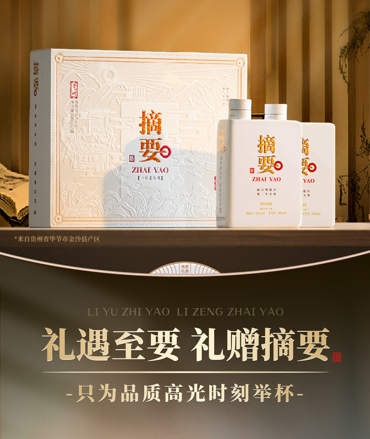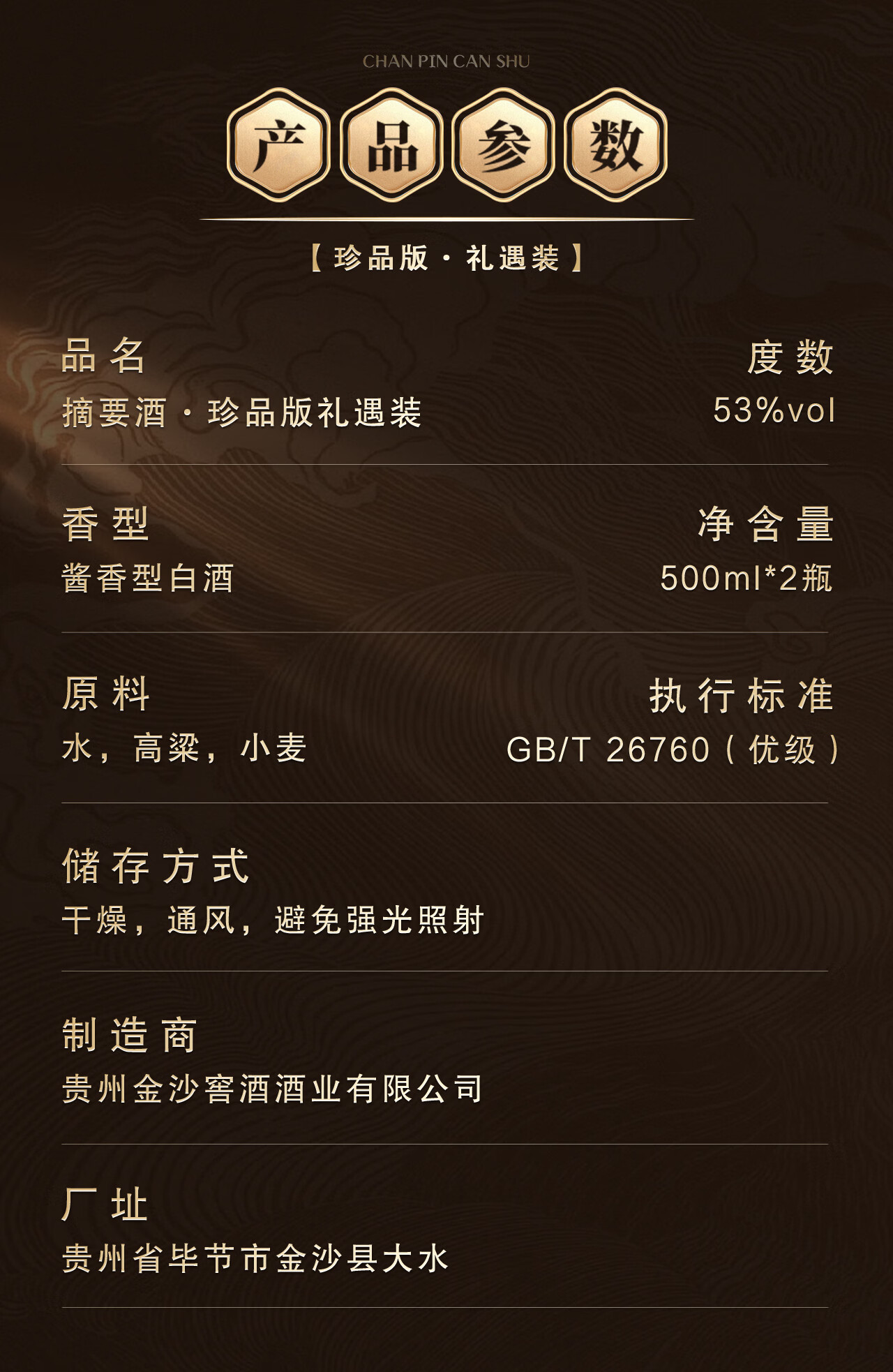 金沙摘要 珍品 礼遇版 高端酱香型 53度白酒 500ml*2 礼盒装 收藏宴请