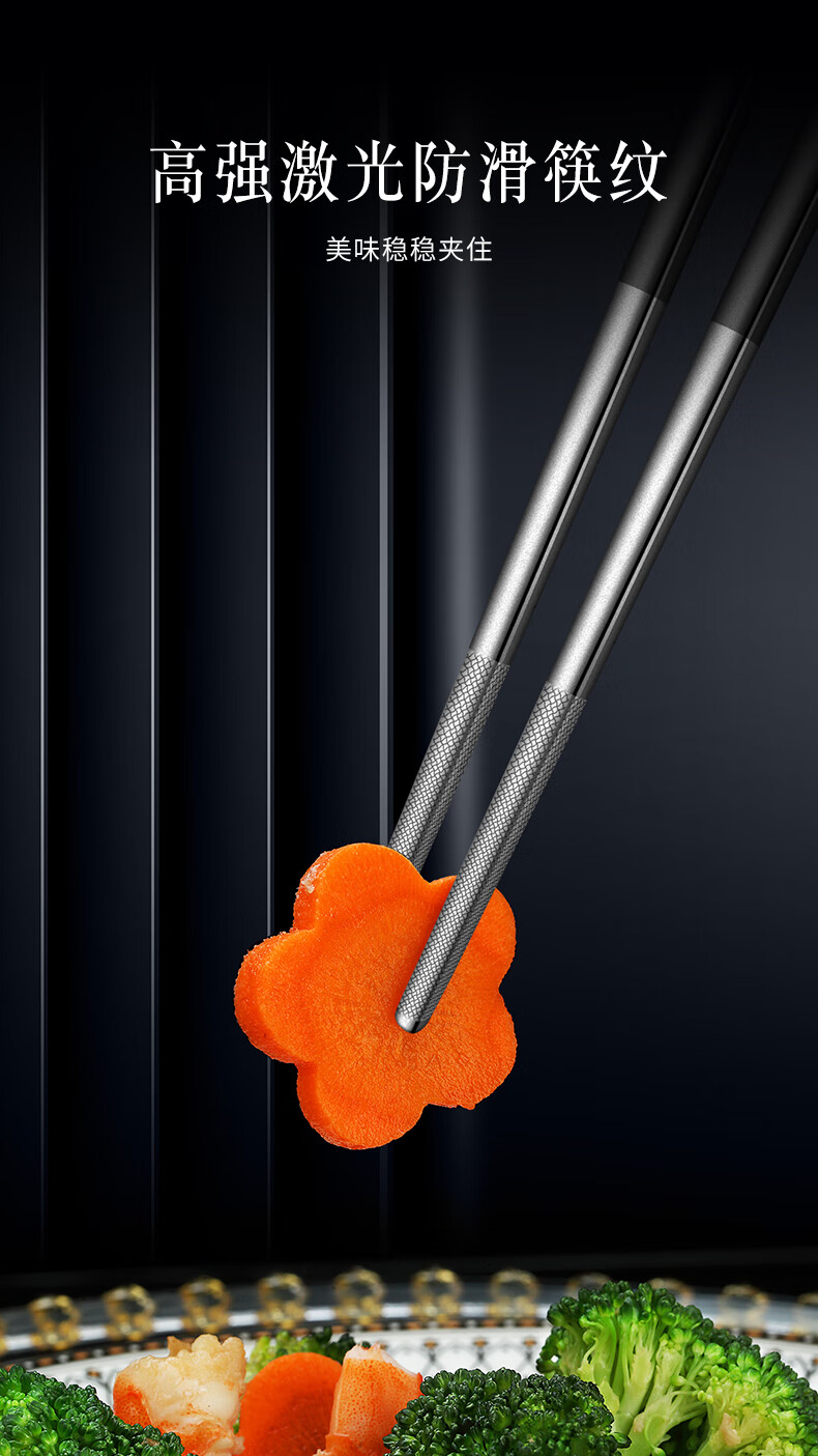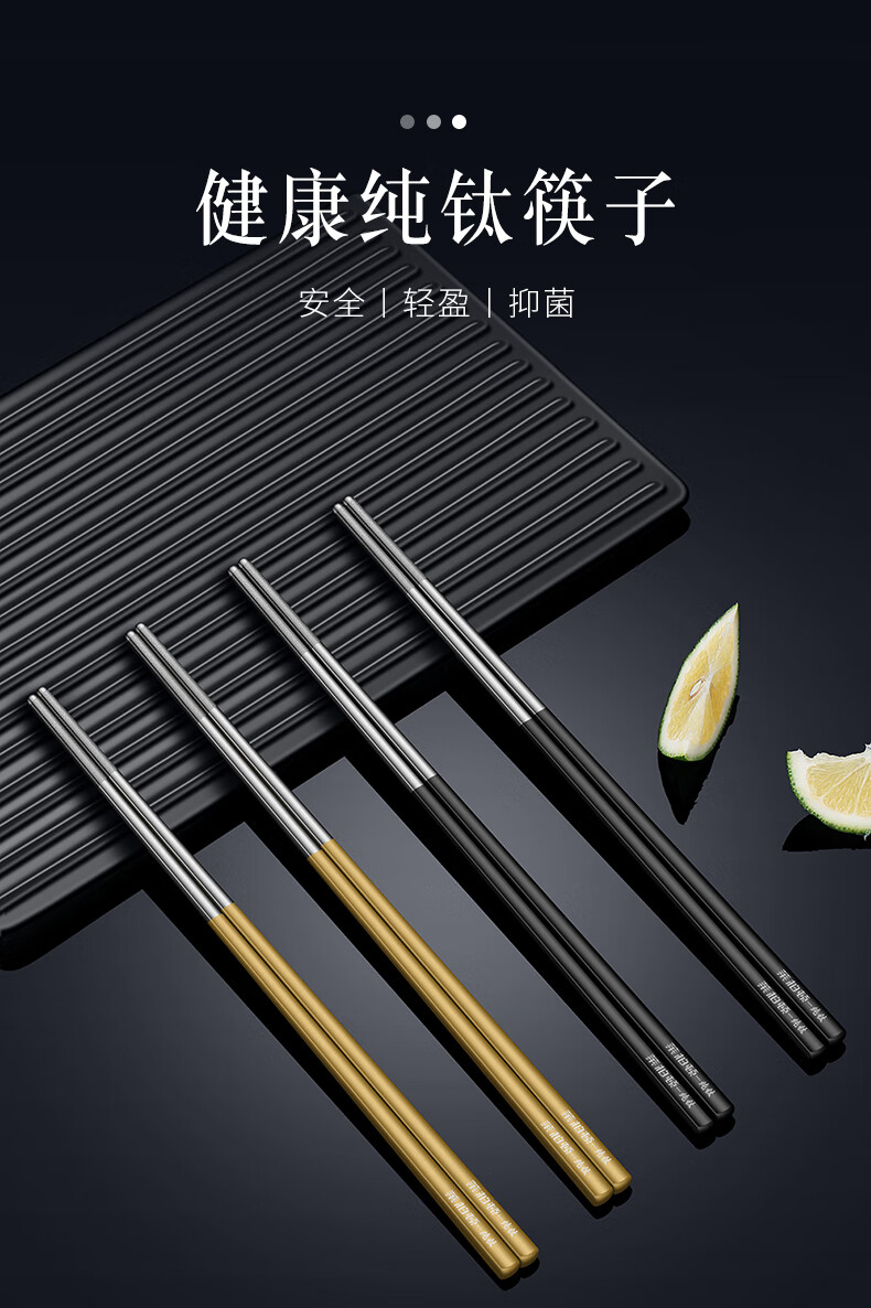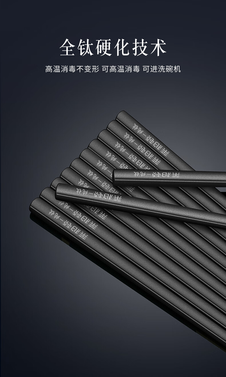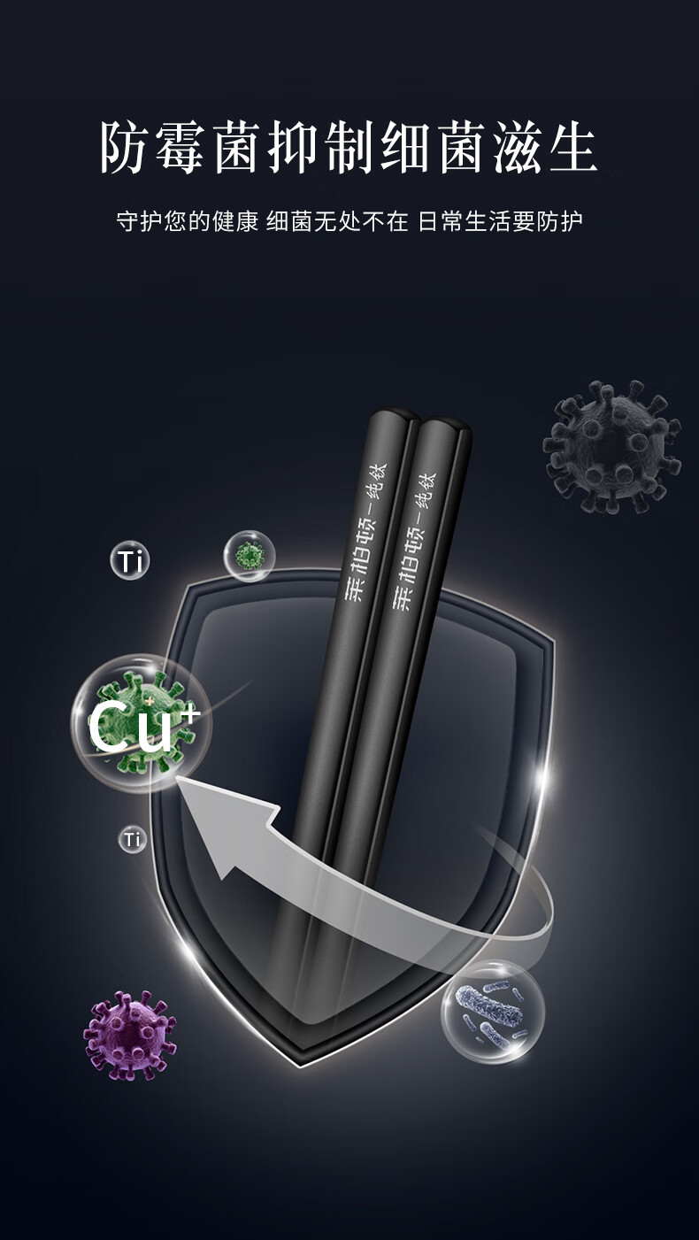 莱柏顿纯钛筷子家用筷子套装家庭分餐筷一人一筷成人金属筷防滑钛筷25cm 黑色10双【纯钛99.8%】