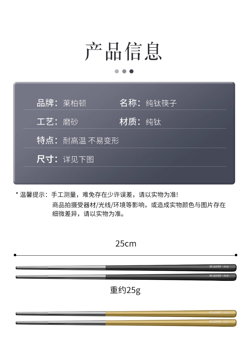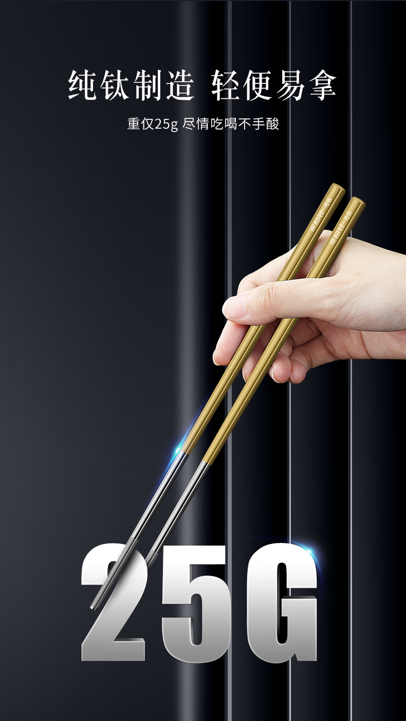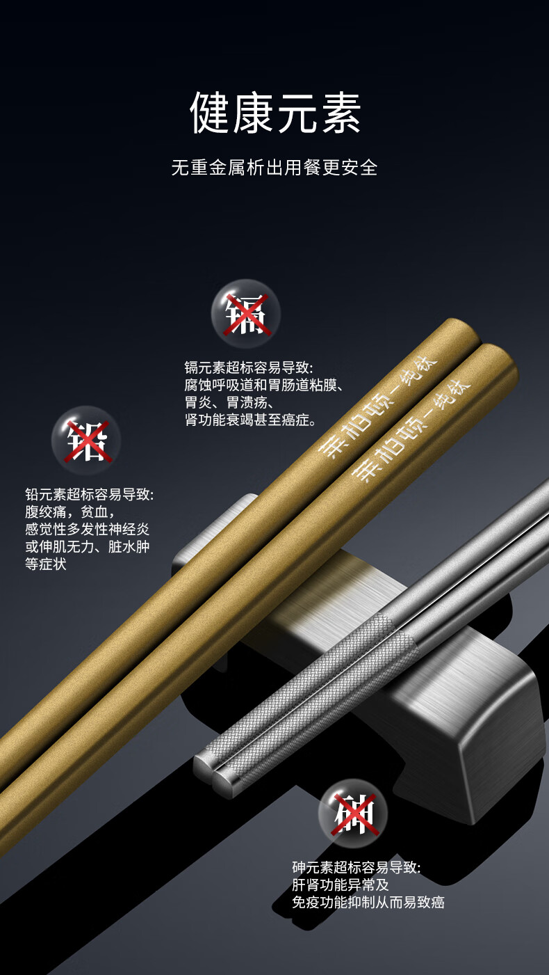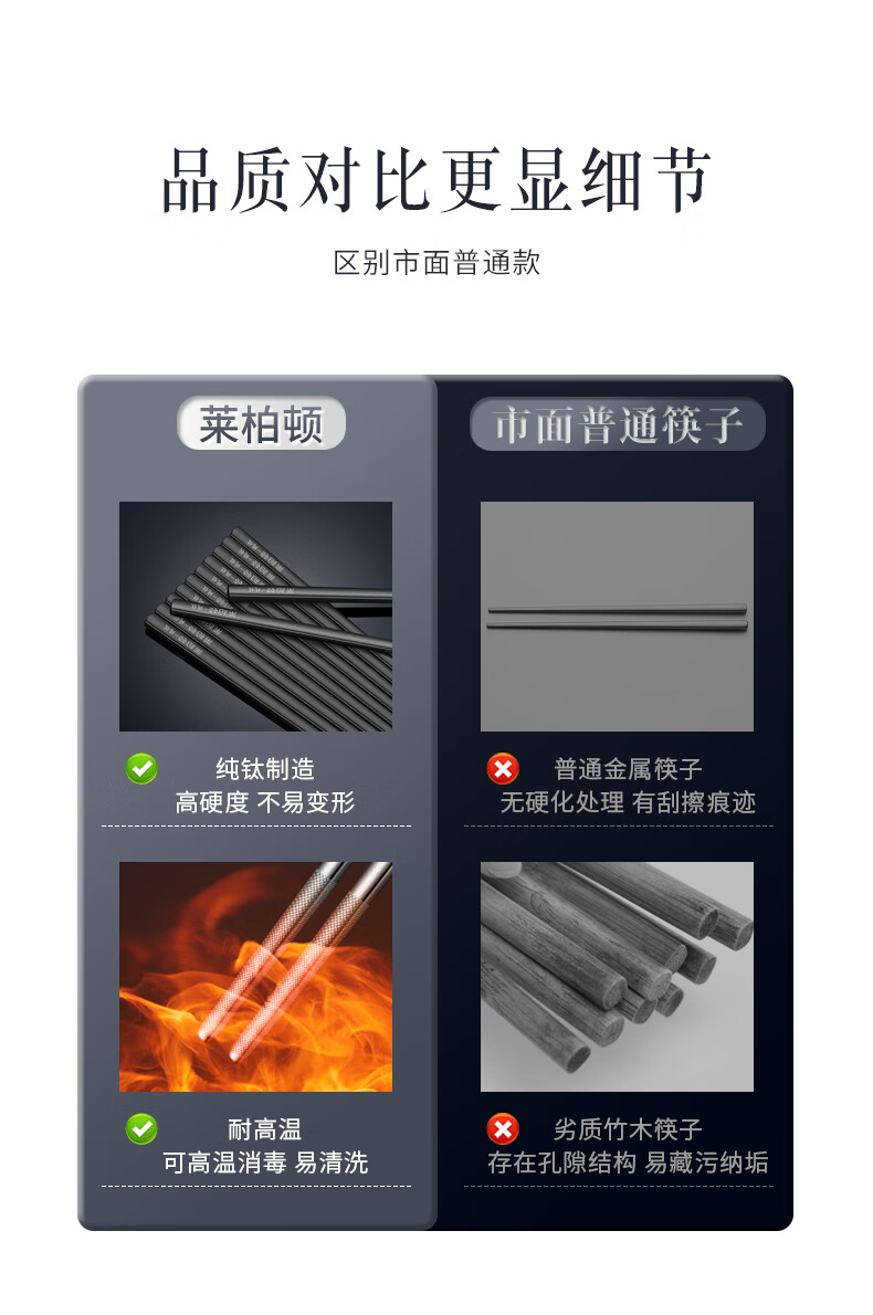 莱柏顿纯钛筷子家用筷子套装家庭分餐筷一人一筷成人金属筷防滑钛筷25cm 黑色10双【纯钛99.8%】