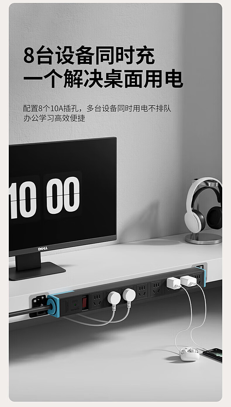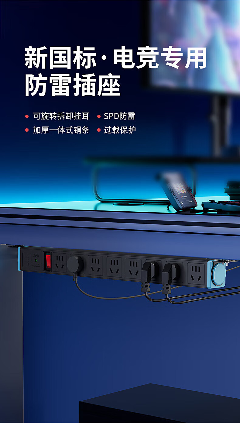 国际电工PDU机柜插座8插位电竞机房专用过载保护插排桌下接线板多插位家用 防过载保护-黑色丨6插位双断开关 无线款【需自己接线】