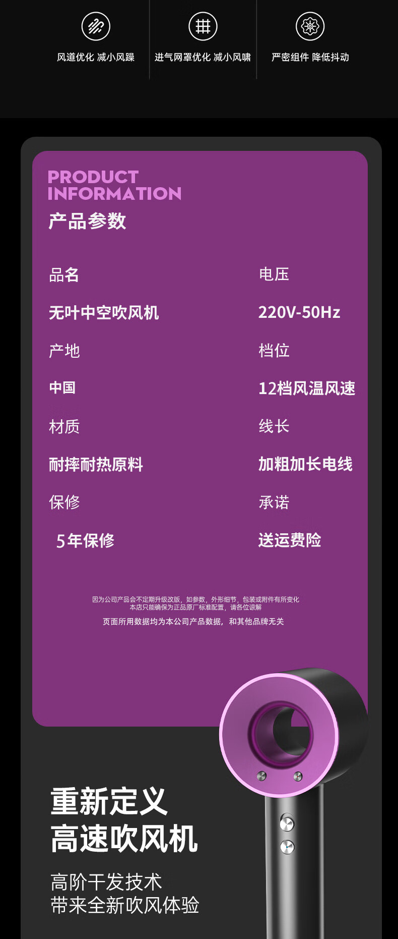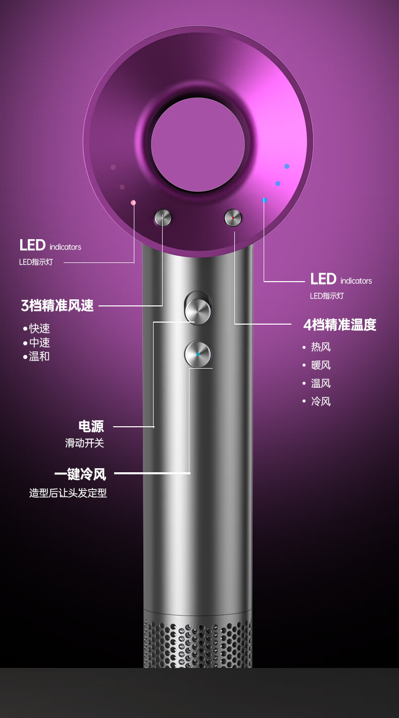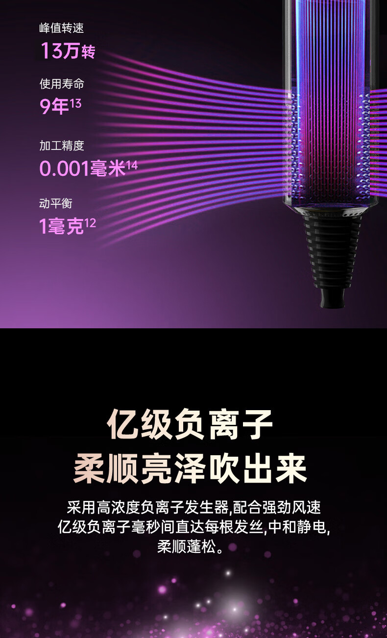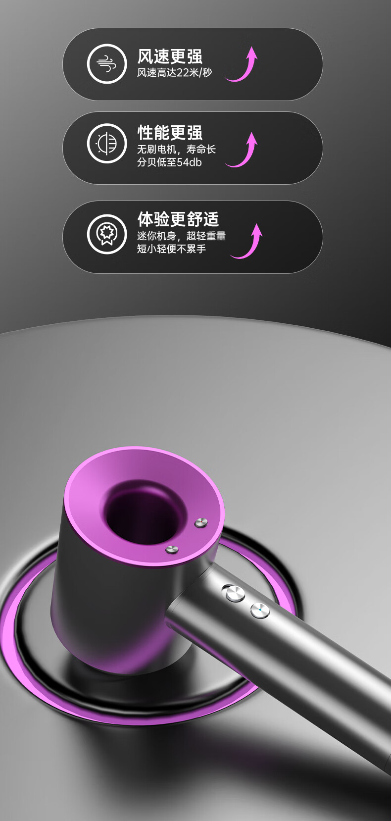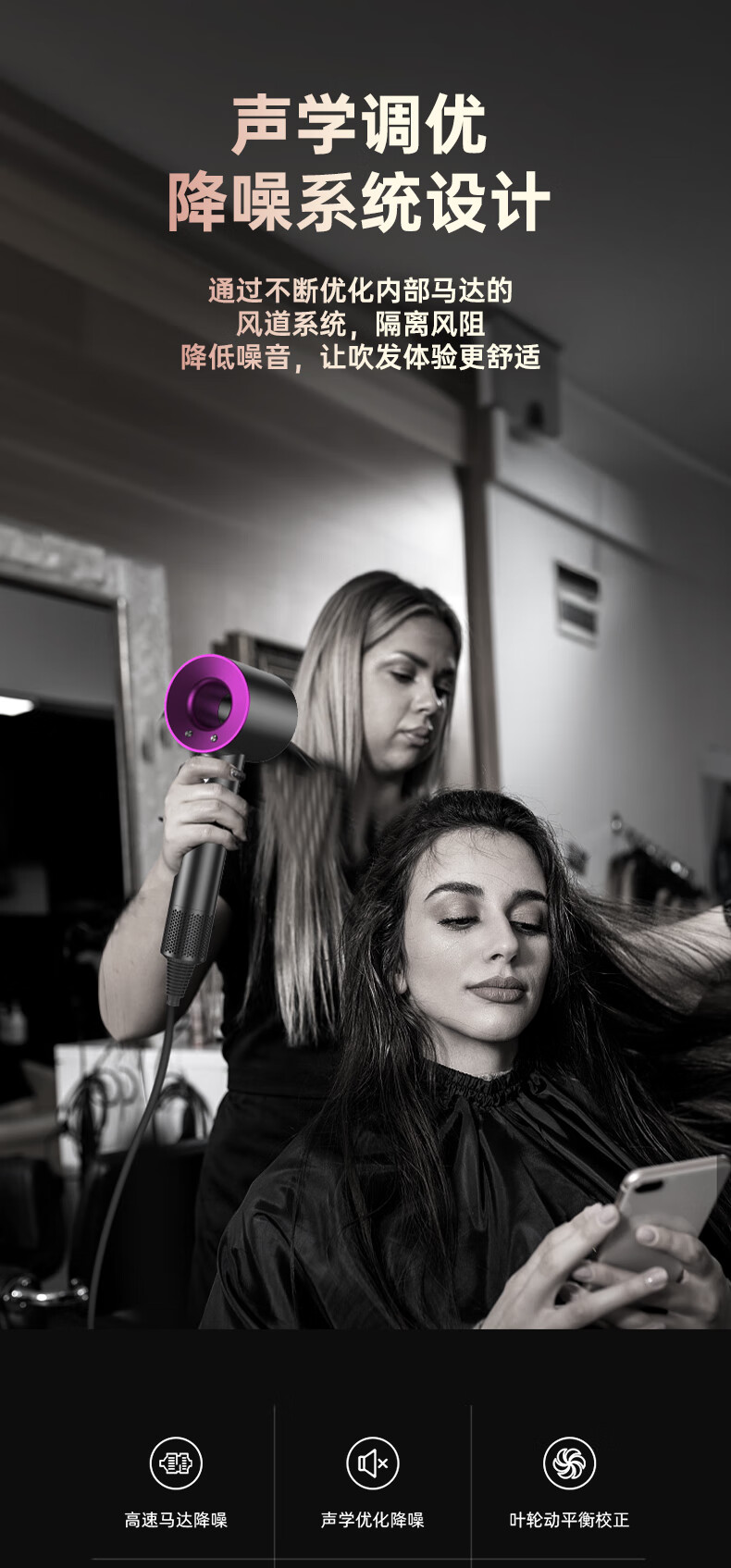 【国家3C认证 30亿负离子护发】华强北高速无叶电吹风机家用低音大功率速干不伤发电吹风筒礼物 【官方顶配】落日玫瑰-五风嘴-30亿水润负离子护发