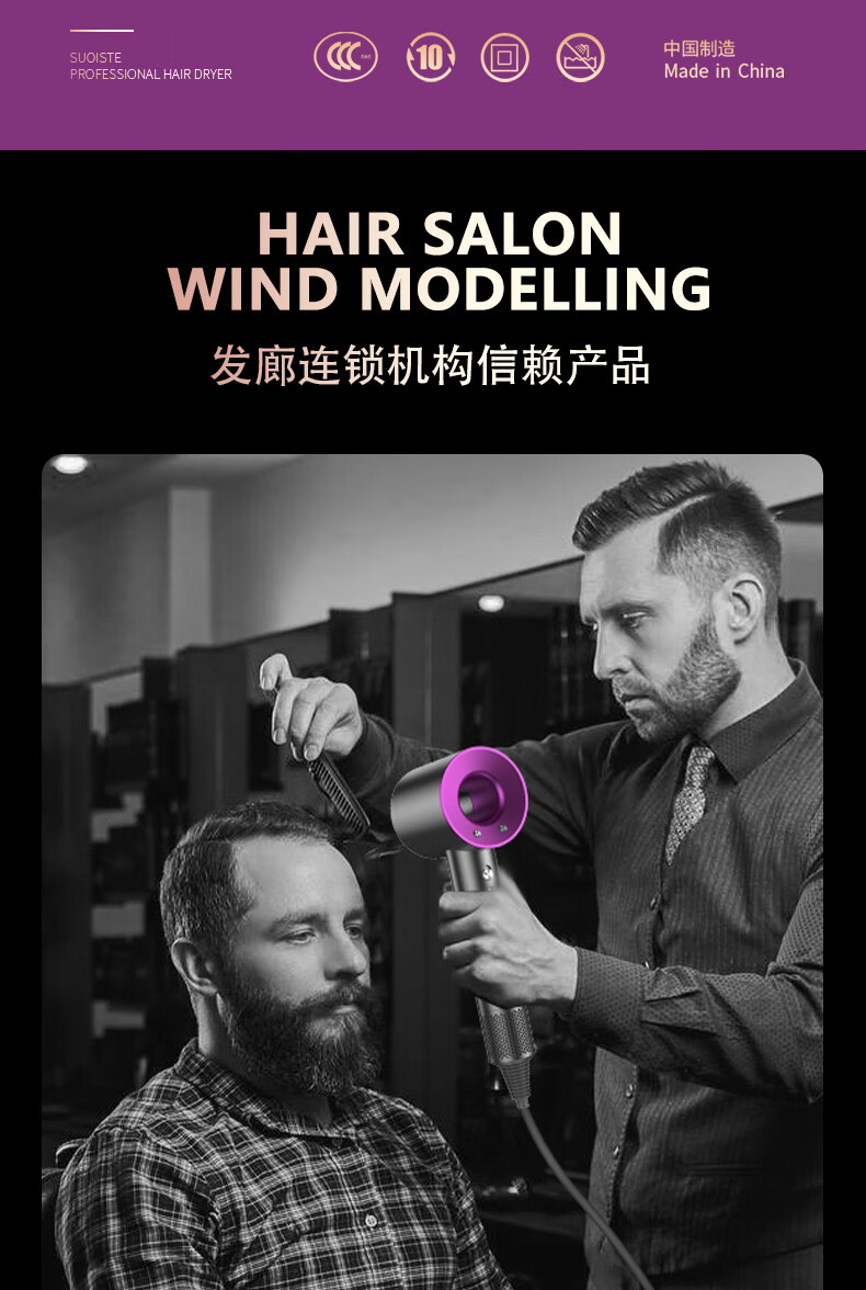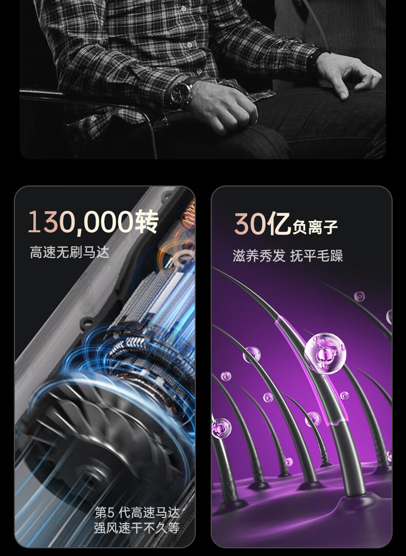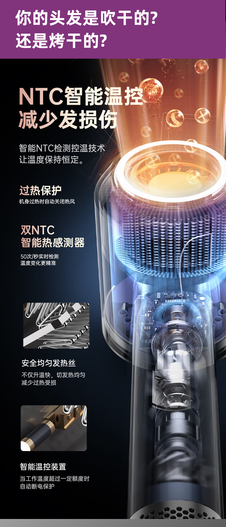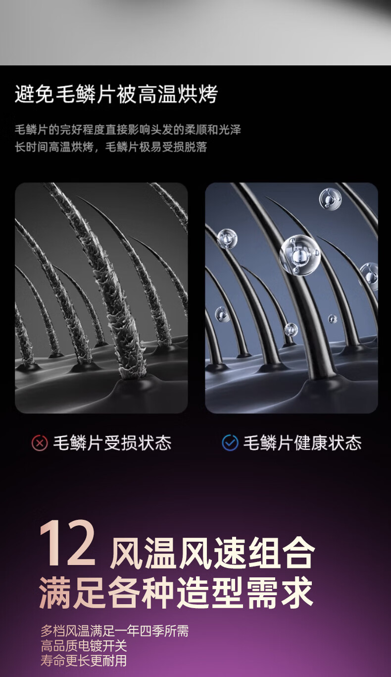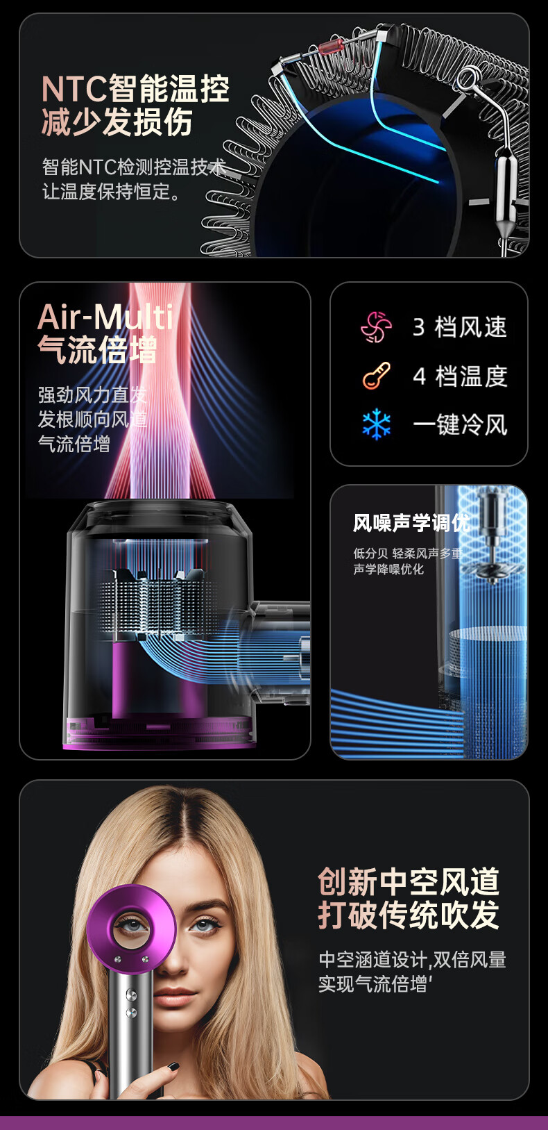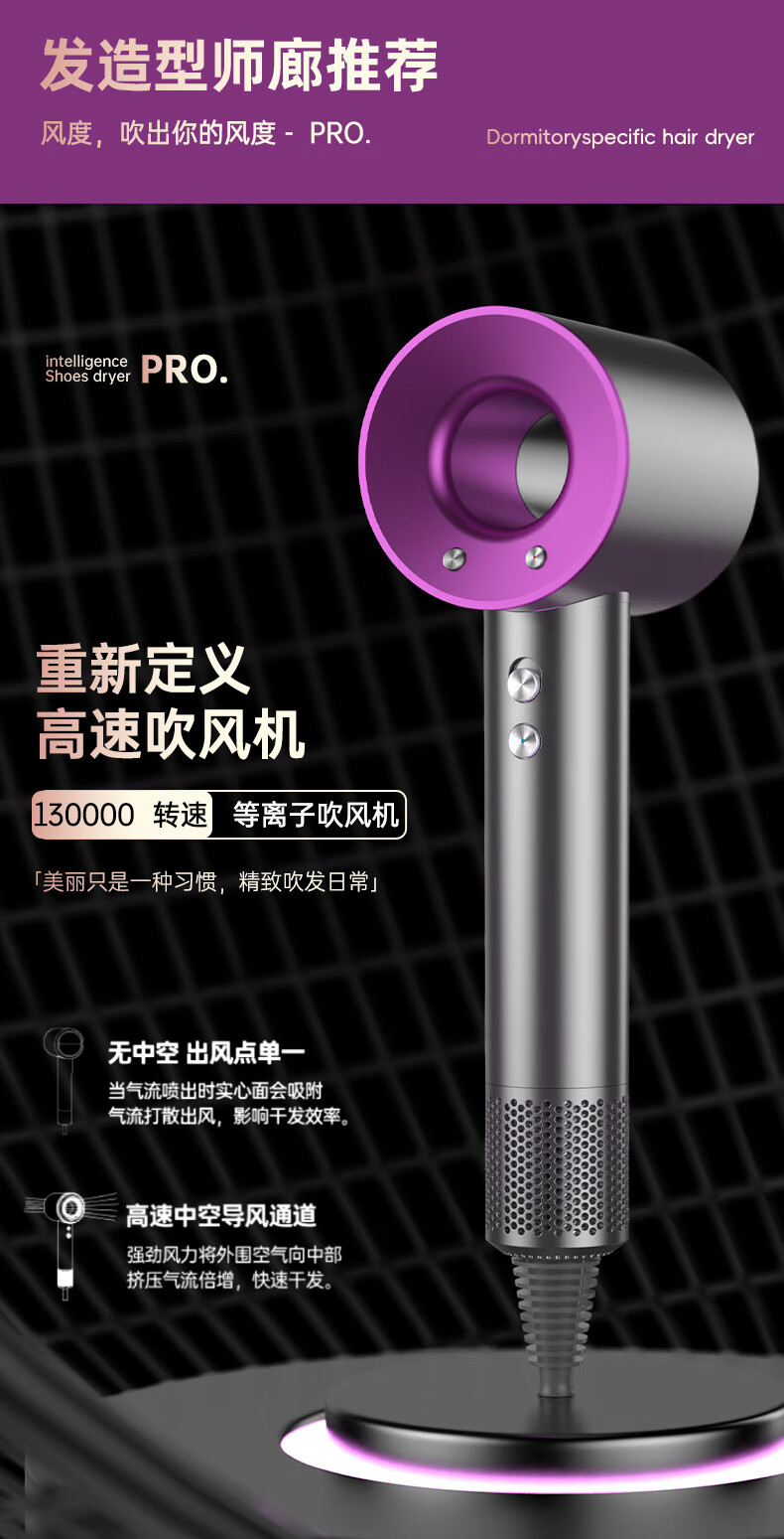 【国家3C认证 30亿负离子护发】华强北高速无叶电吹风机家用低音大功率速干不伤发电吹风筒礼物 【官方顶配】落日玫瑰-五风嘴-30亿水润负离子护发