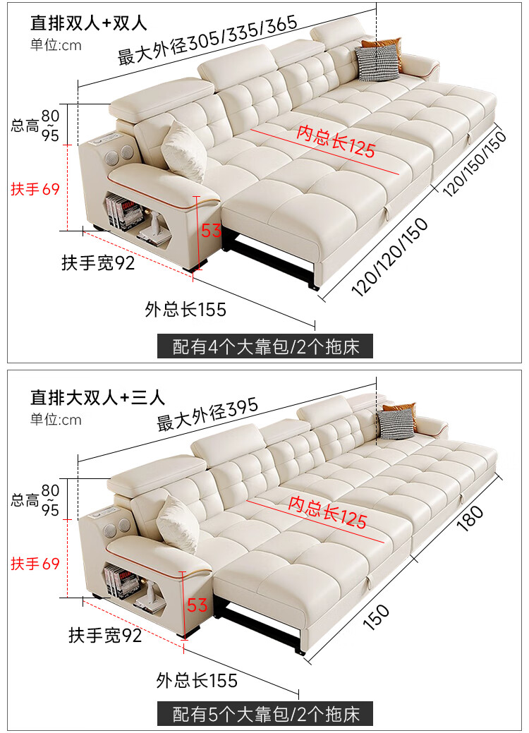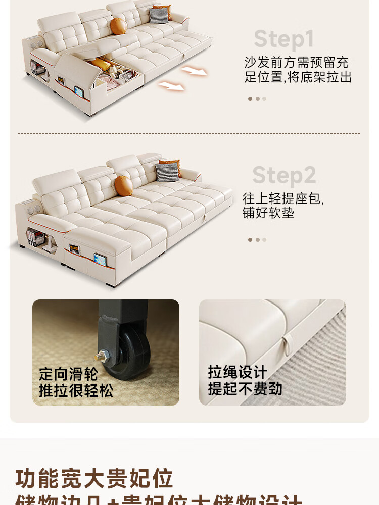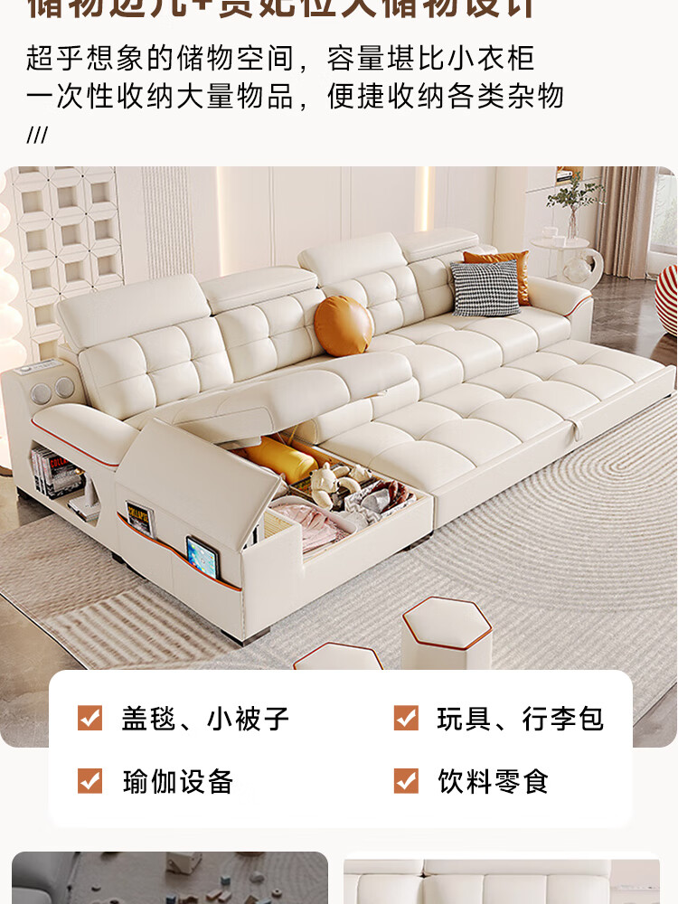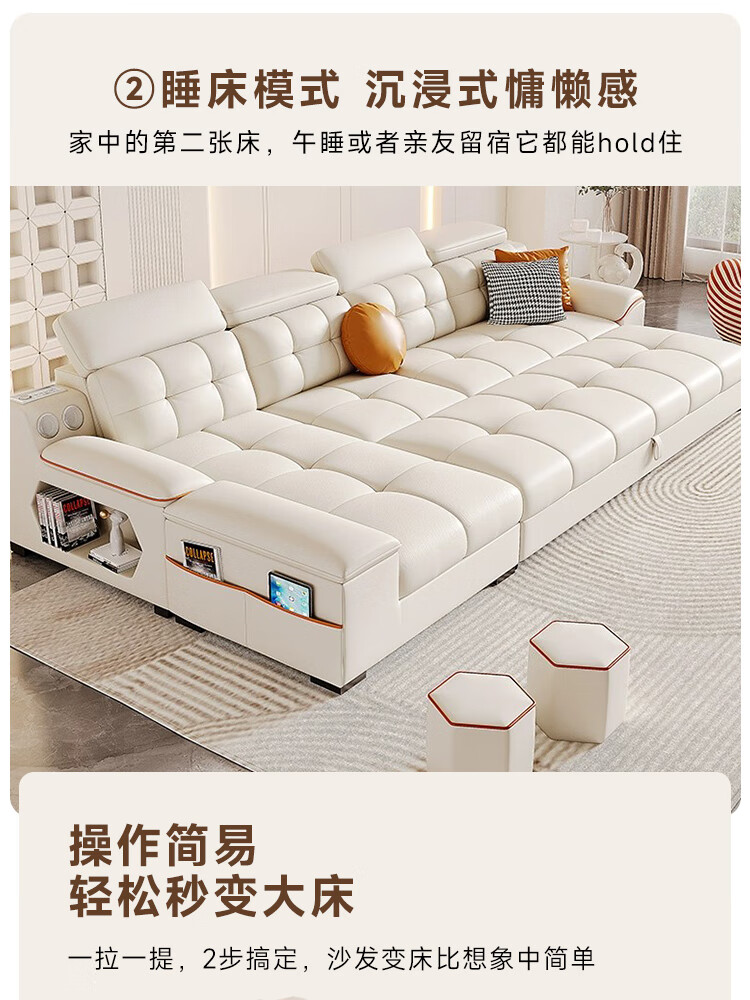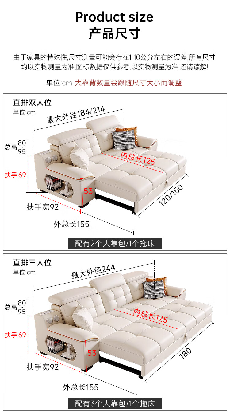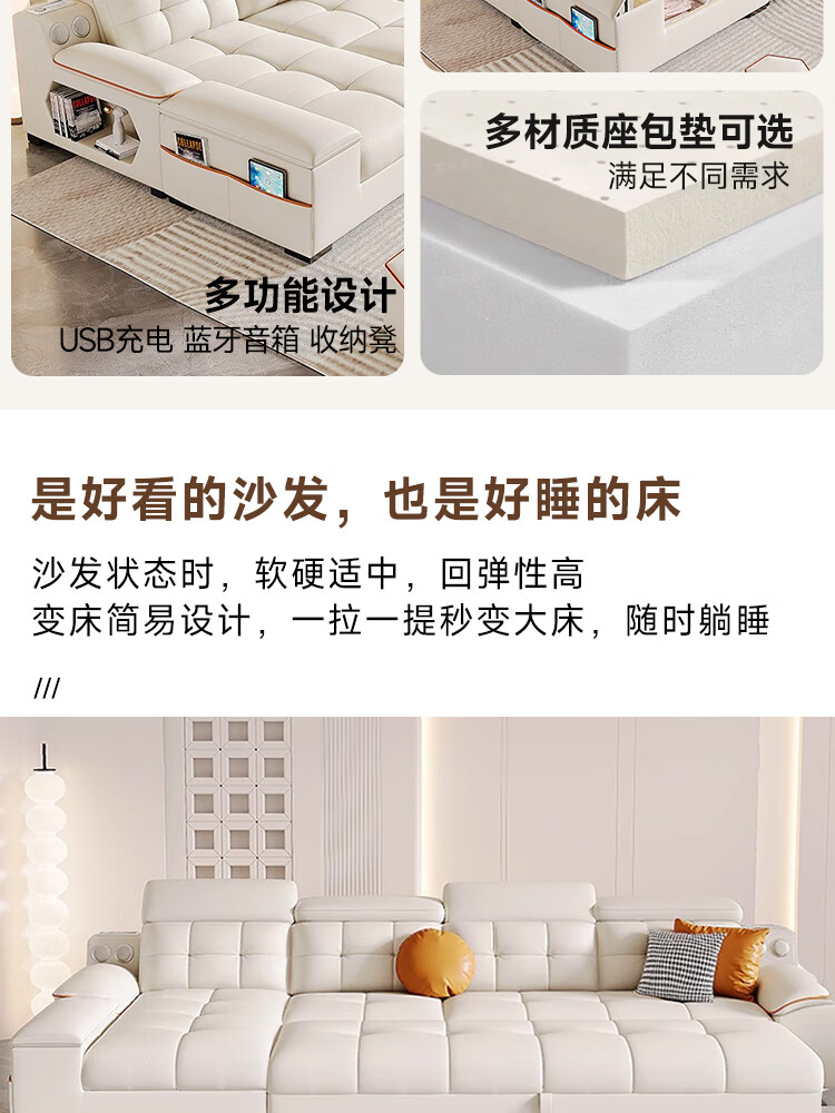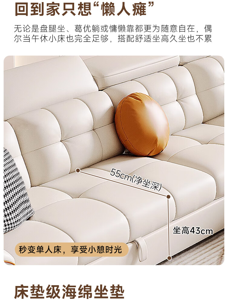 泽贤阁2025新款现代简约多功能折叠沙发一体两用客厅小户型懒人沙发 【新款猫抓皮+实木脚】米黄 【抑菌乳胶款】2*1.2米(2腰枕2扶手)