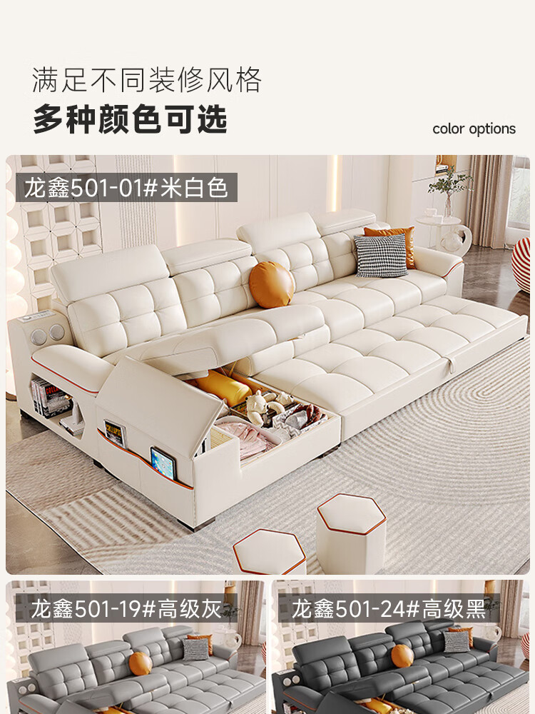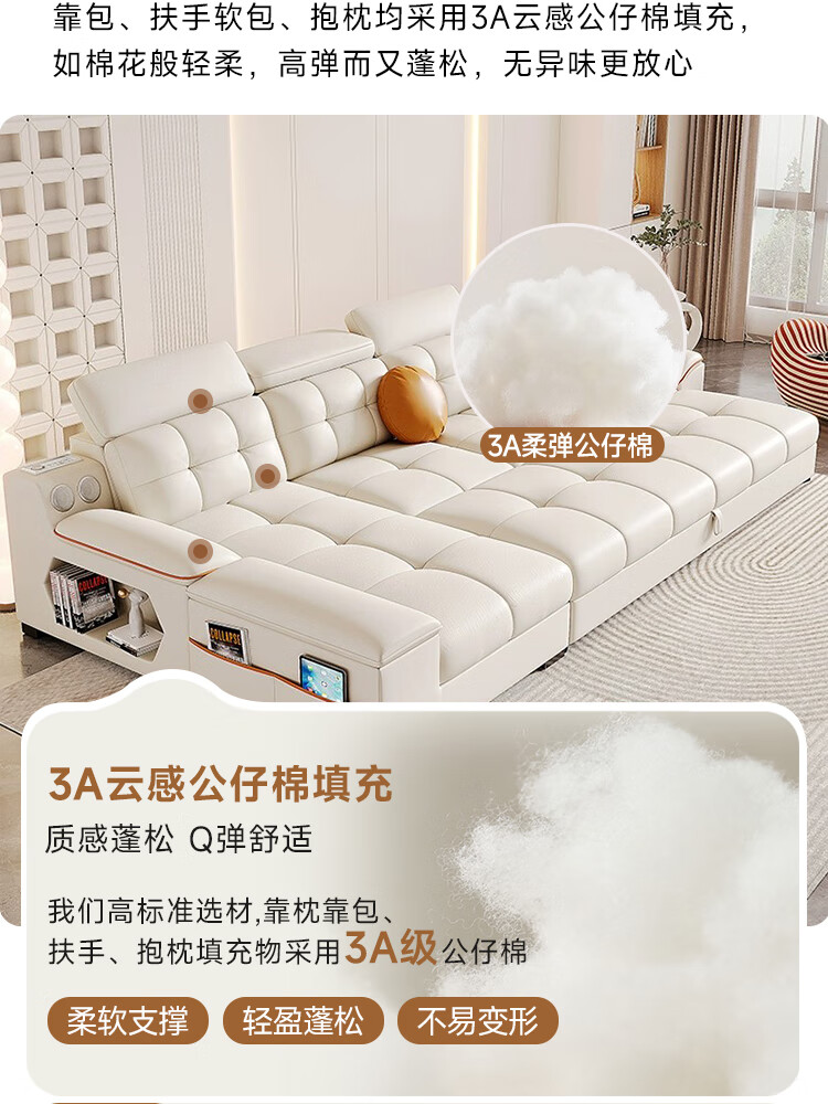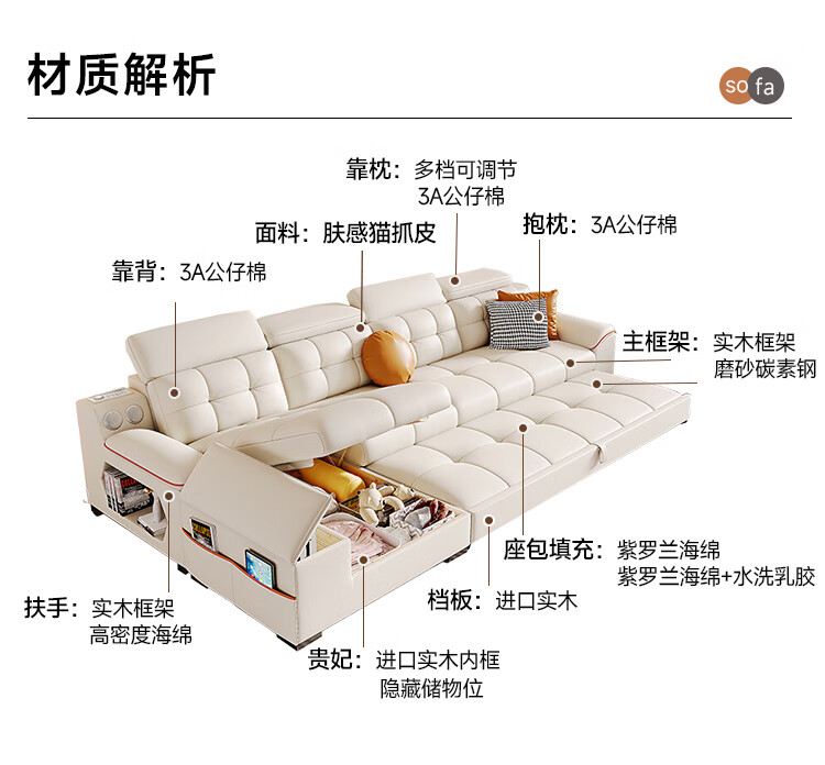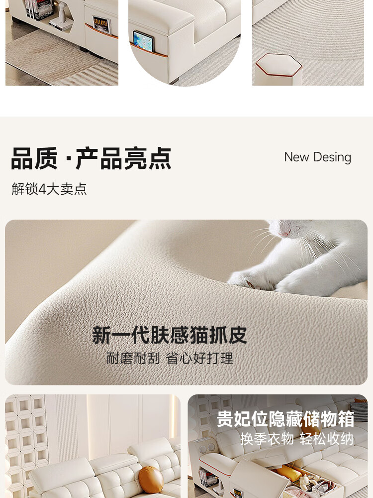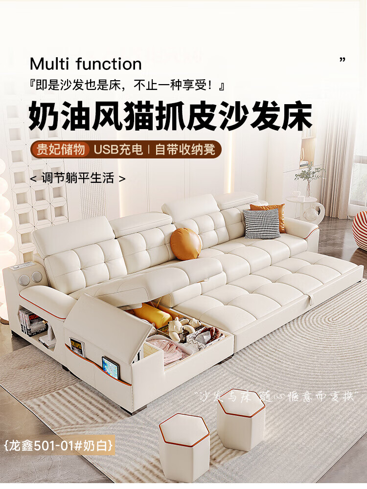 松南可伸缩新款贵妃沙发床两用客厅现代简约多功能高端原创猫抓皮沙发 总长2.44m直排:三人位 高弹海绵款(软硬适中)