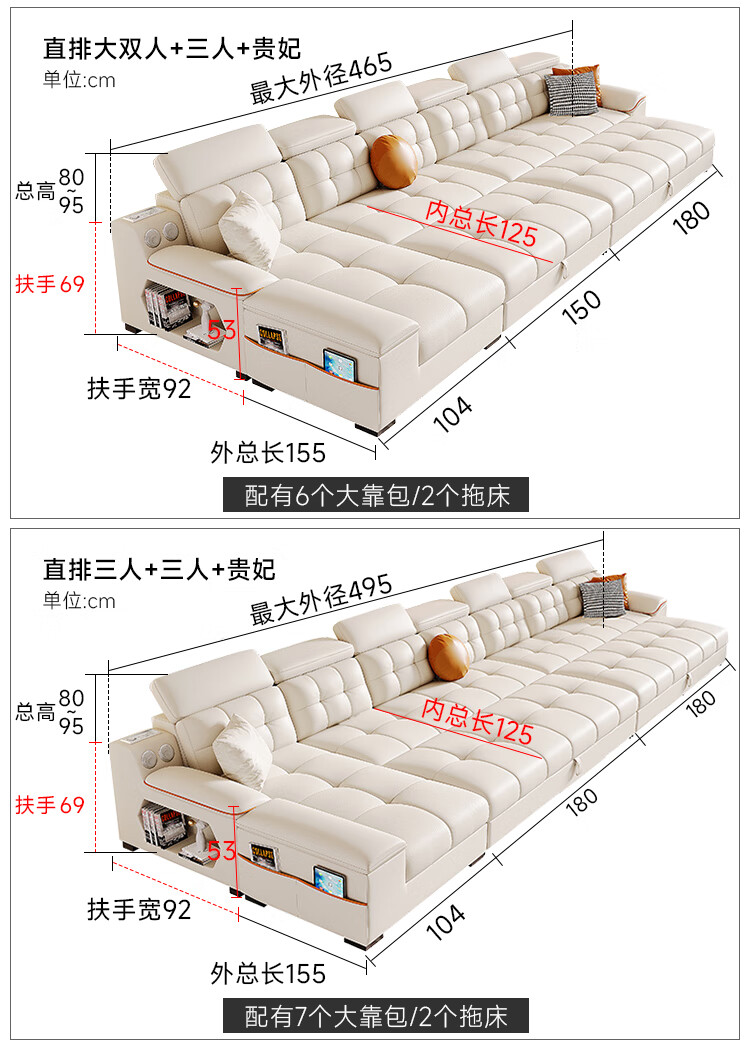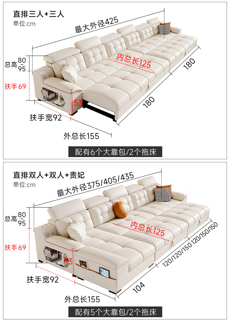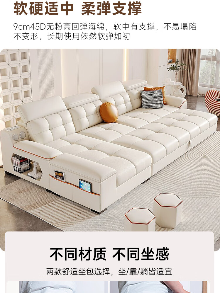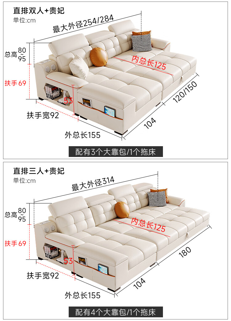 松南可伸缩新款贵妃沙发床两用客厅现代简约多功能高端原创猫抓皮沙发 总长2.44m直排:三人位 高弹海绵款(软硬适中)