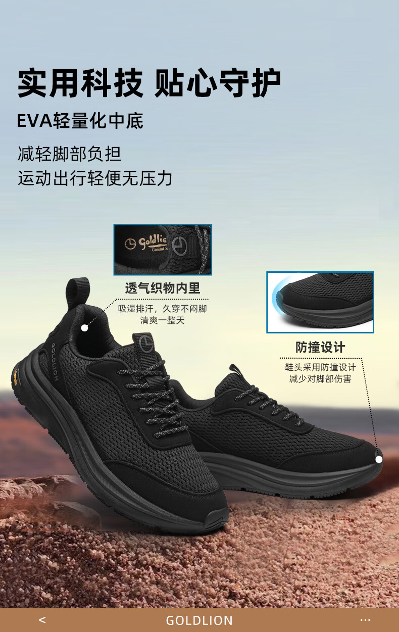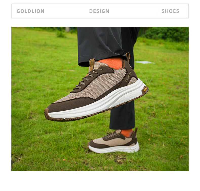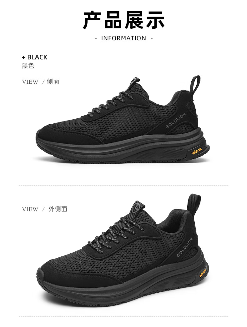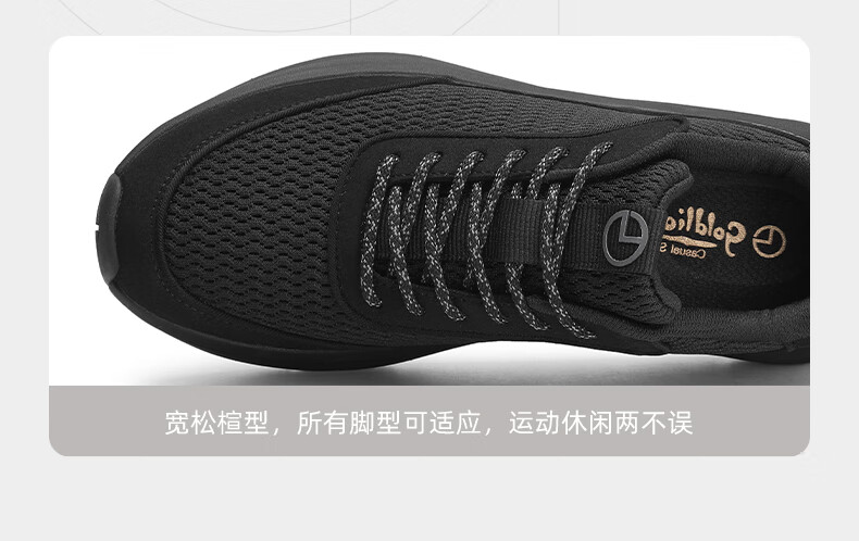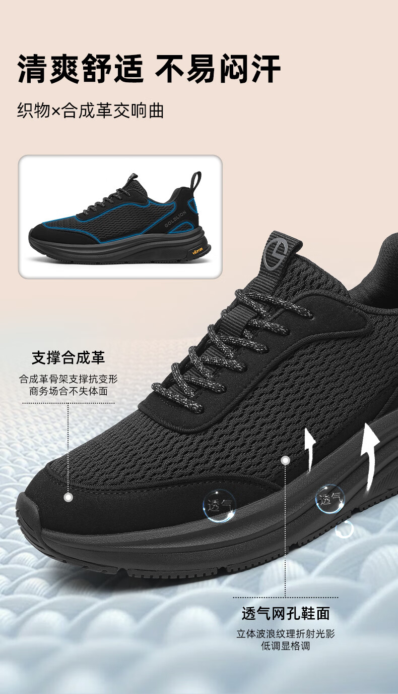 金利来(Goldlion)霸霸鞋男鞋25年秋新品网面休闲鞋男厚底软弹运动鞋跑步老爹鞋 黑色 42
