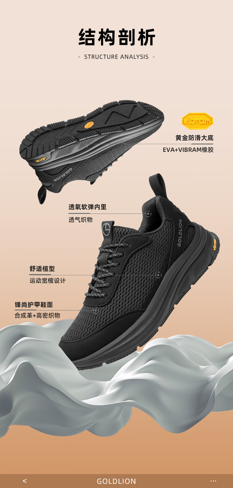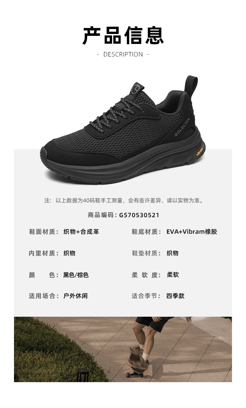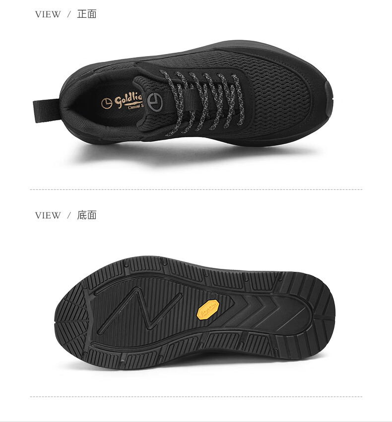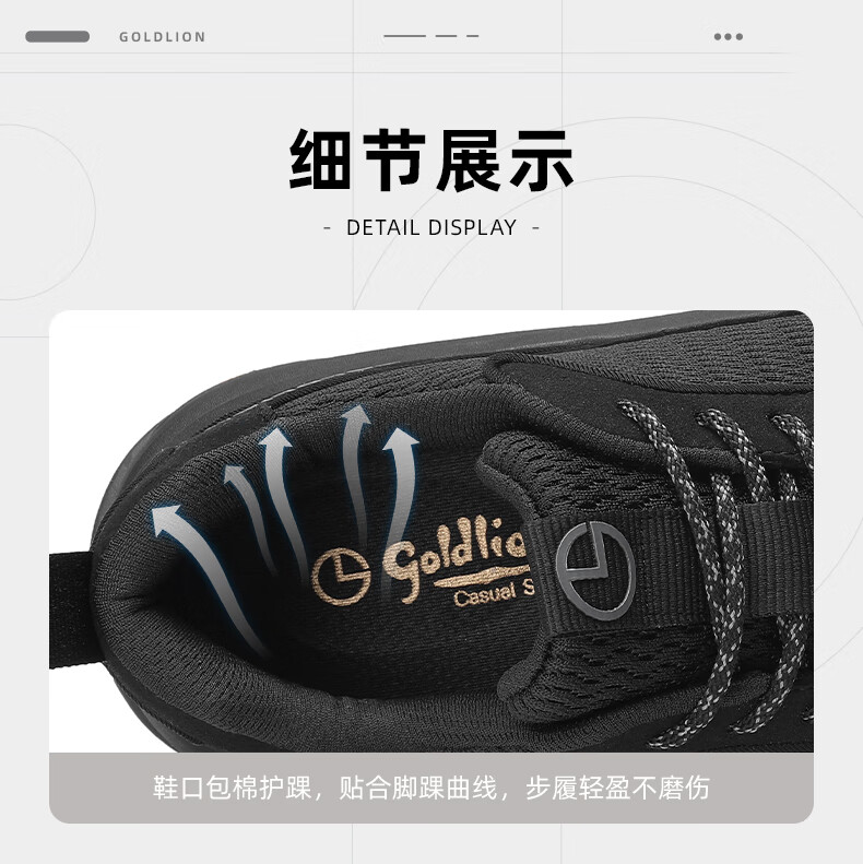 金利来(Goldlion)霸霸鞋男鞋25年秋新品网面休闲鞋男厚底软弹运动鞋跑步老爹鞋 黑色 42