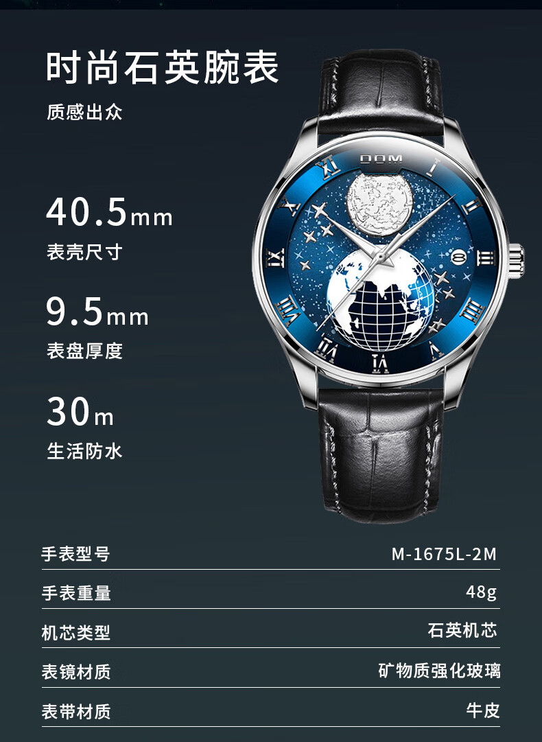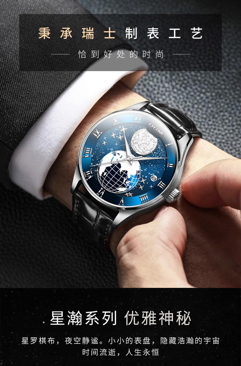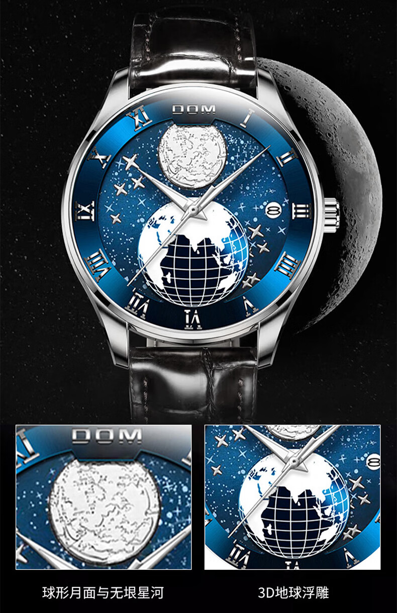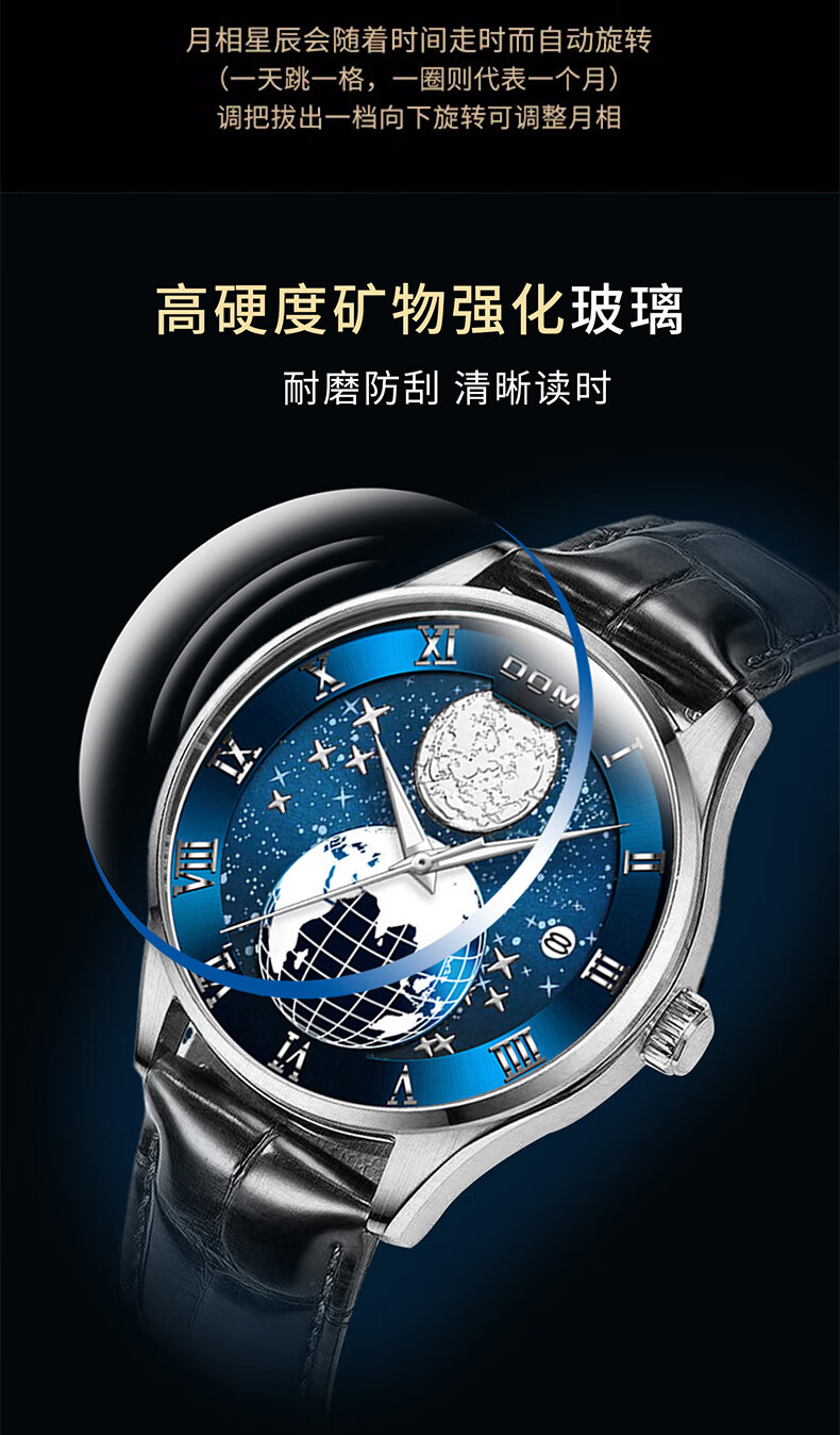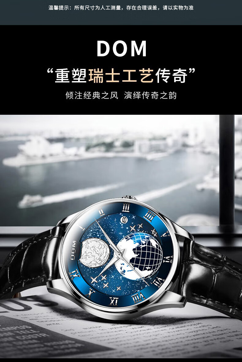 DOM多功能指挥官手表男士全自动机械风石英防水生日礼物送男友