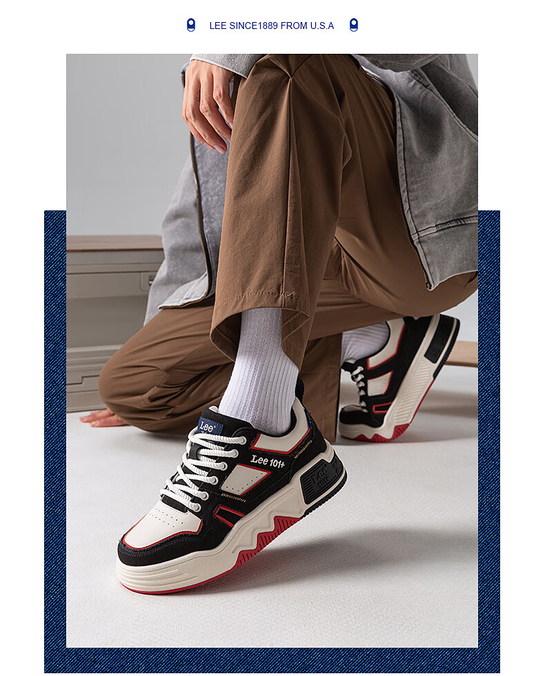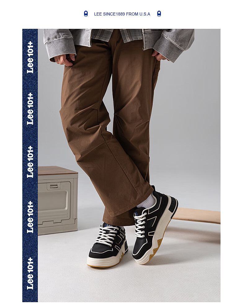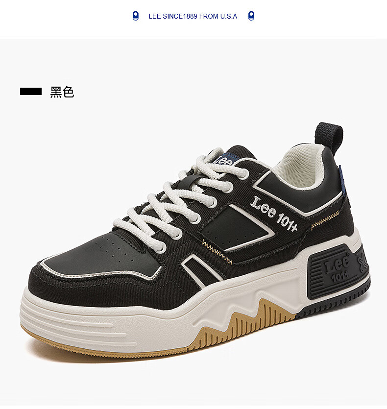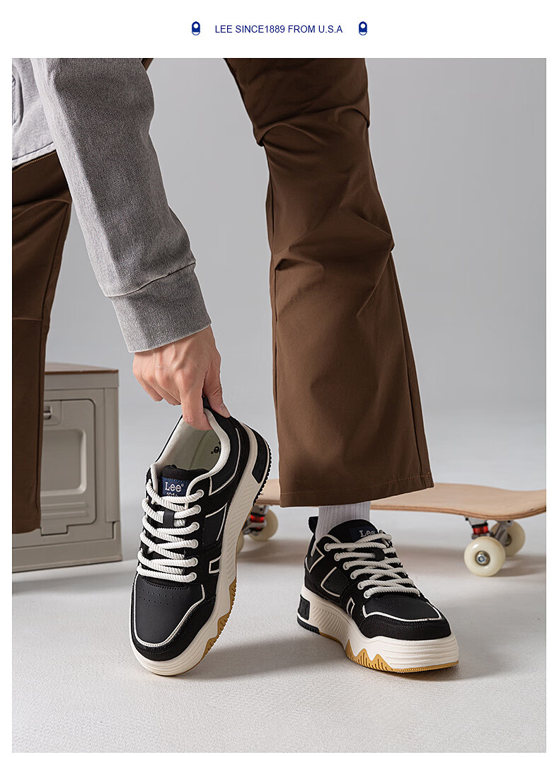 Lee男鞋秋季新款百搭休闲鞋男时尚运动板鞋增高运动鞋潮流舒适鞋子男 黑色 40 【偏大/请拍小一码】