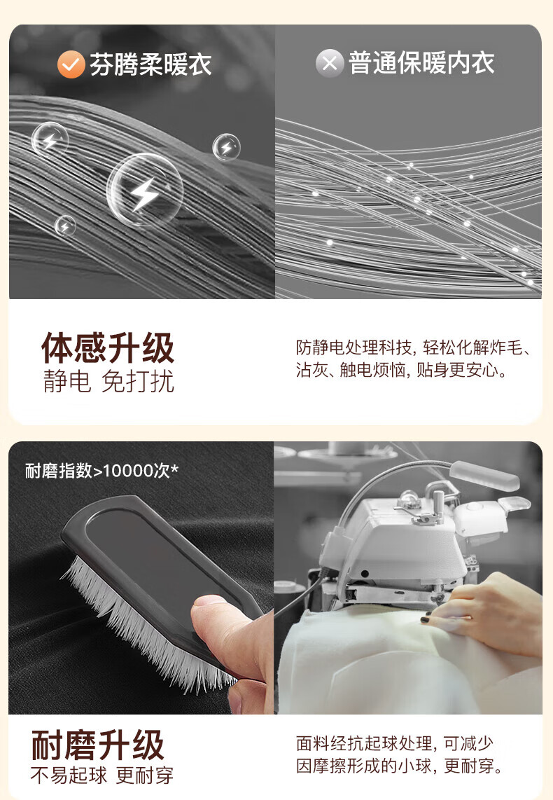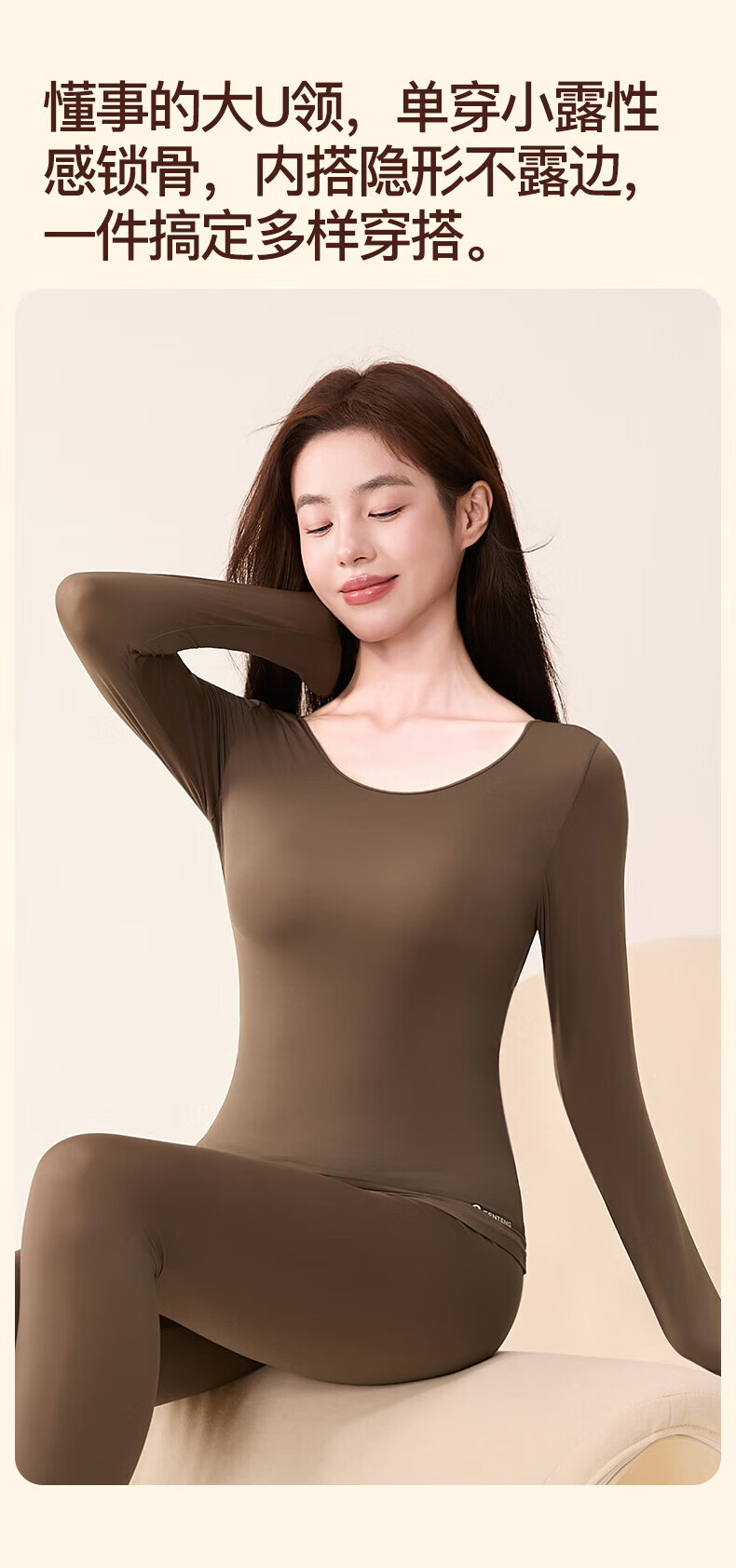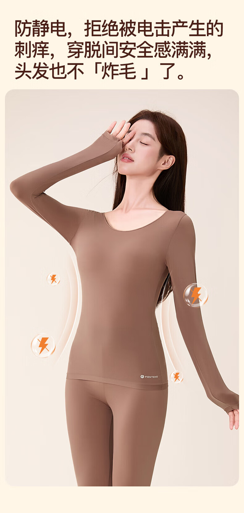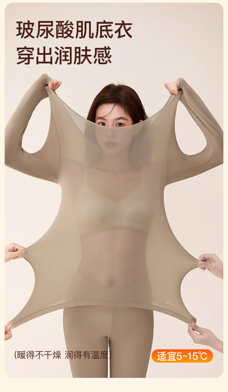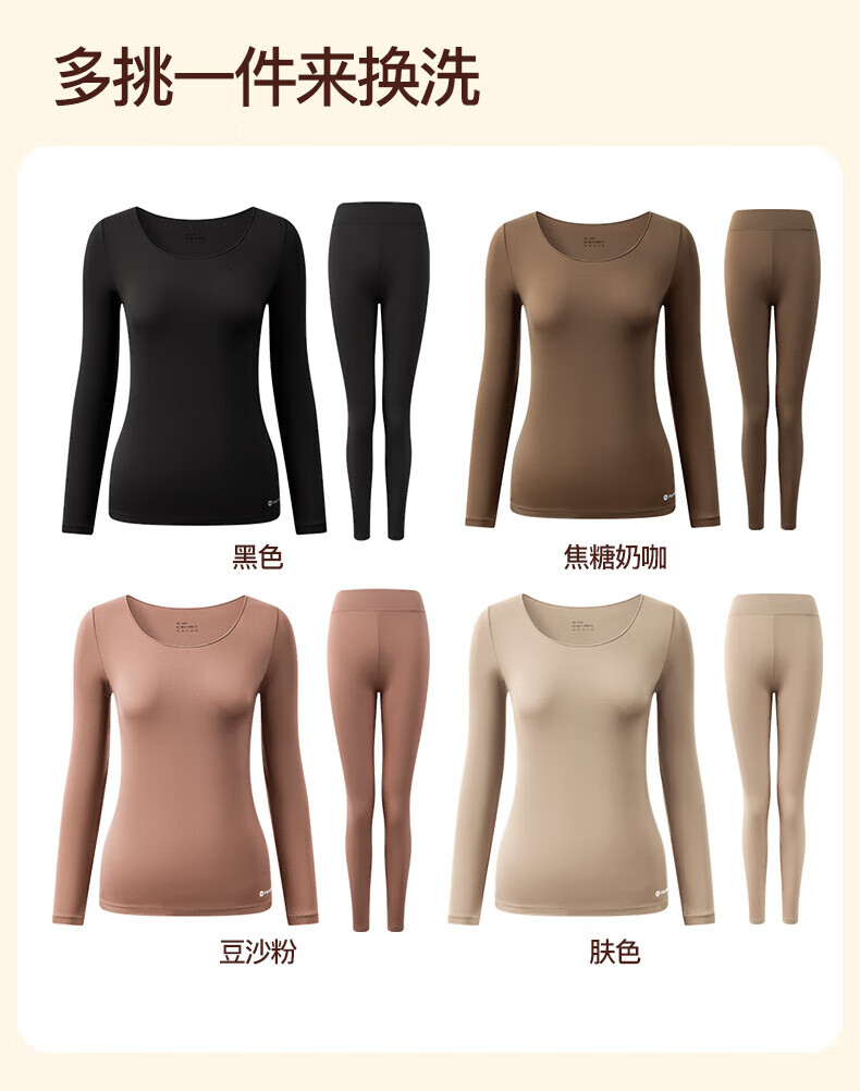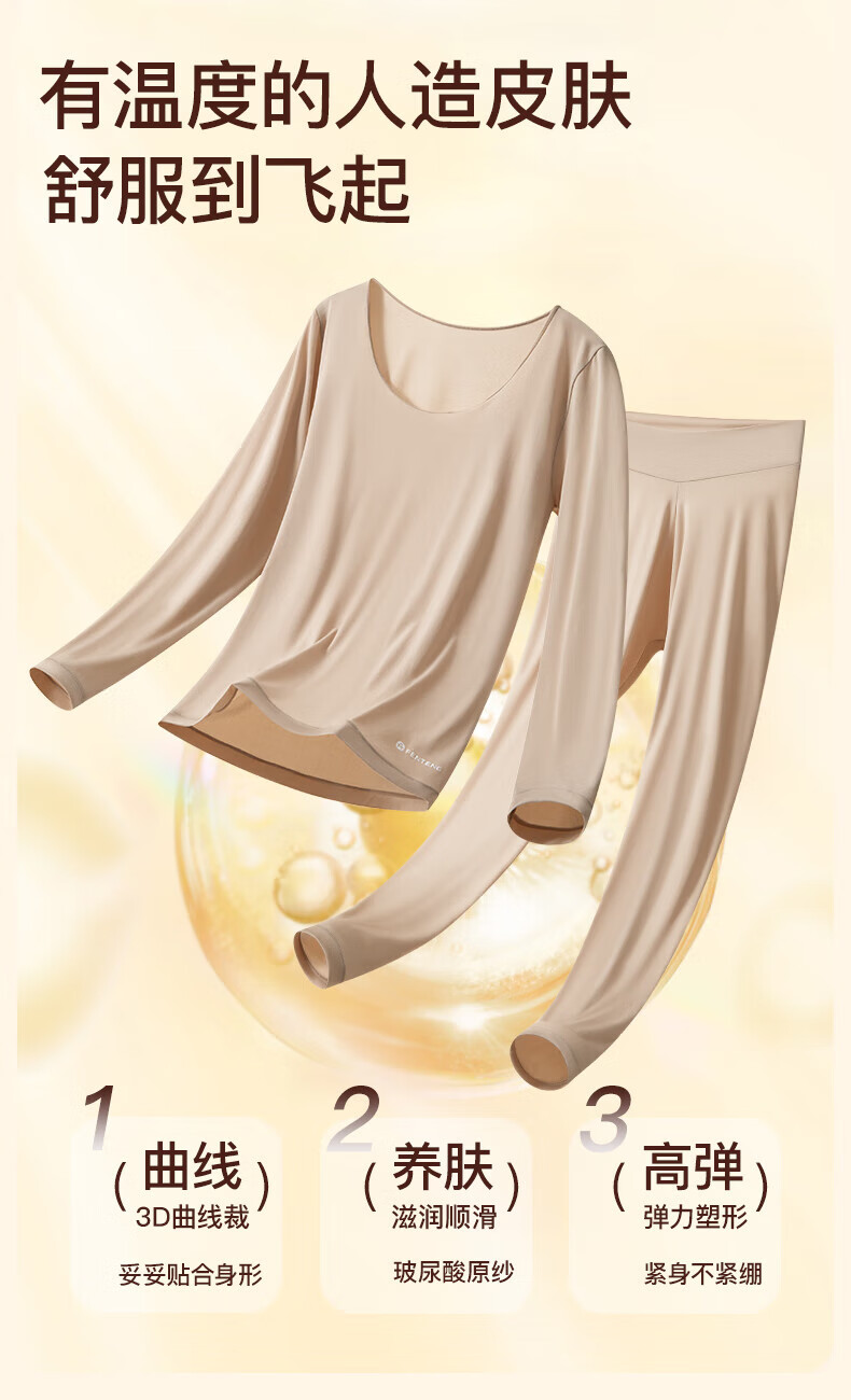 芬腾保暖内衣女润肤玻尿酸2025秋季防静电防起球薄肌底衣打底衣套装 豆沙粉 M