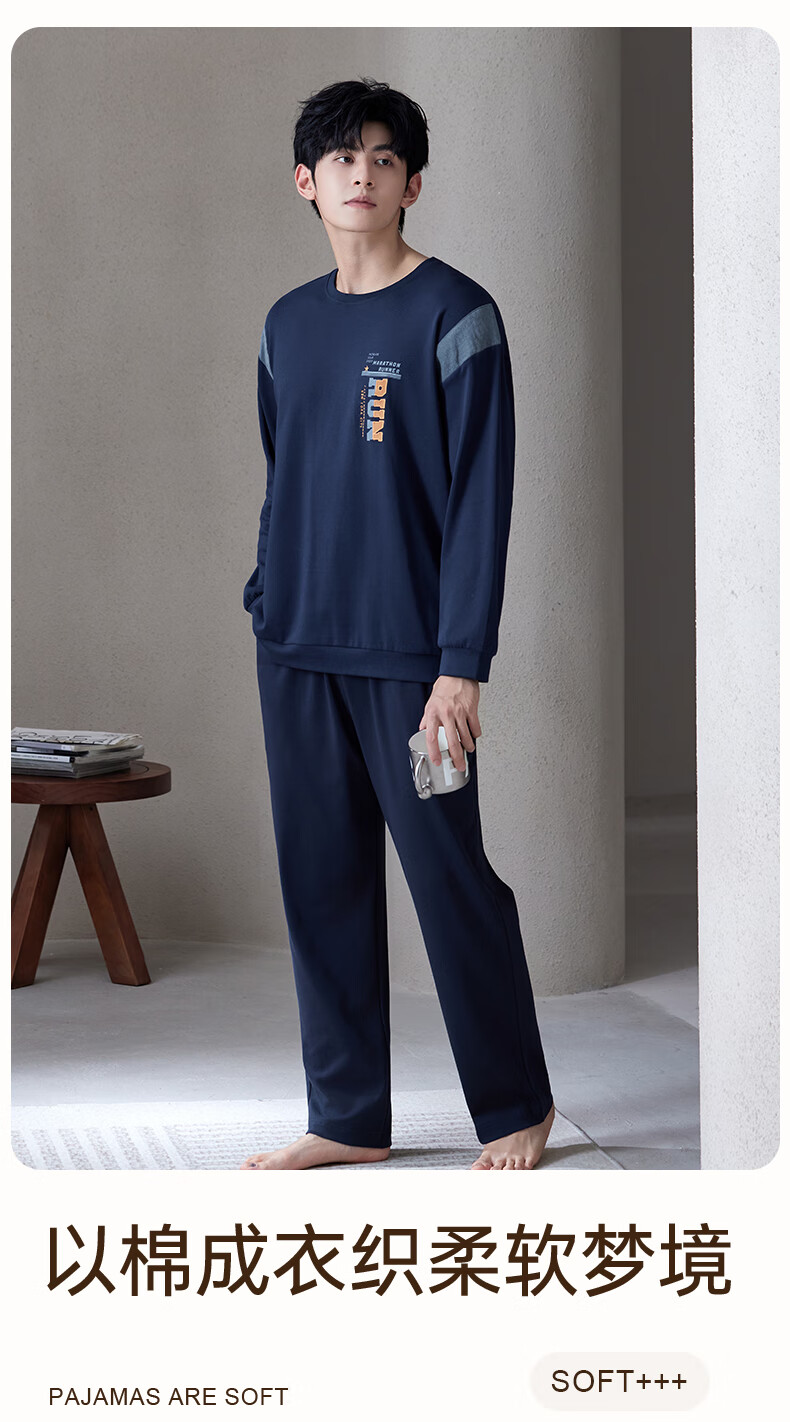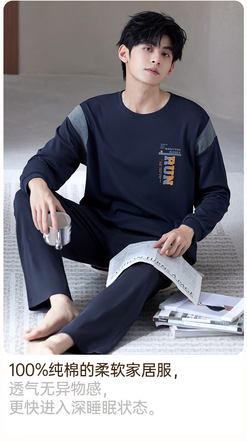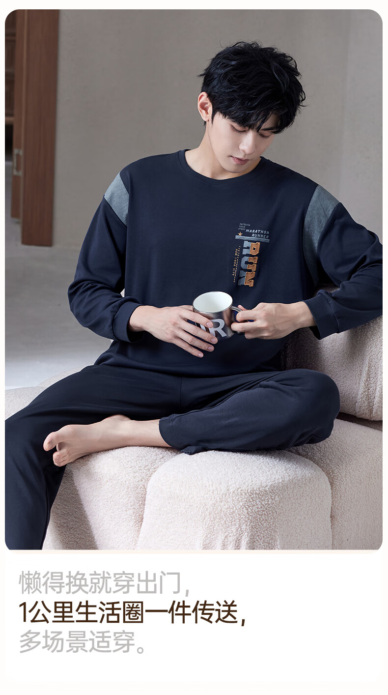 爱慕先生【牛奶系-加倍暖】双层加厚吸湿发热含氨基酸蛋白质男保暖套装 单层-蓝莓牛奶套装 2XL 180