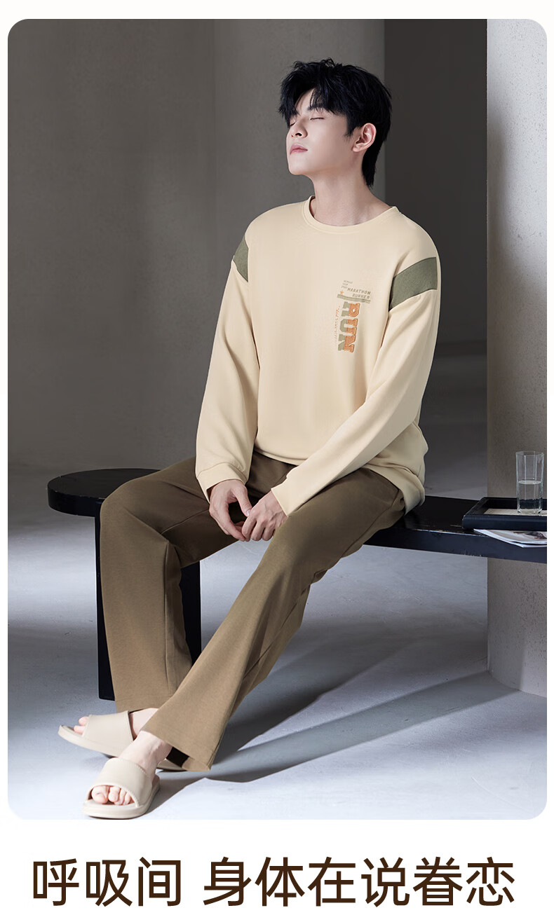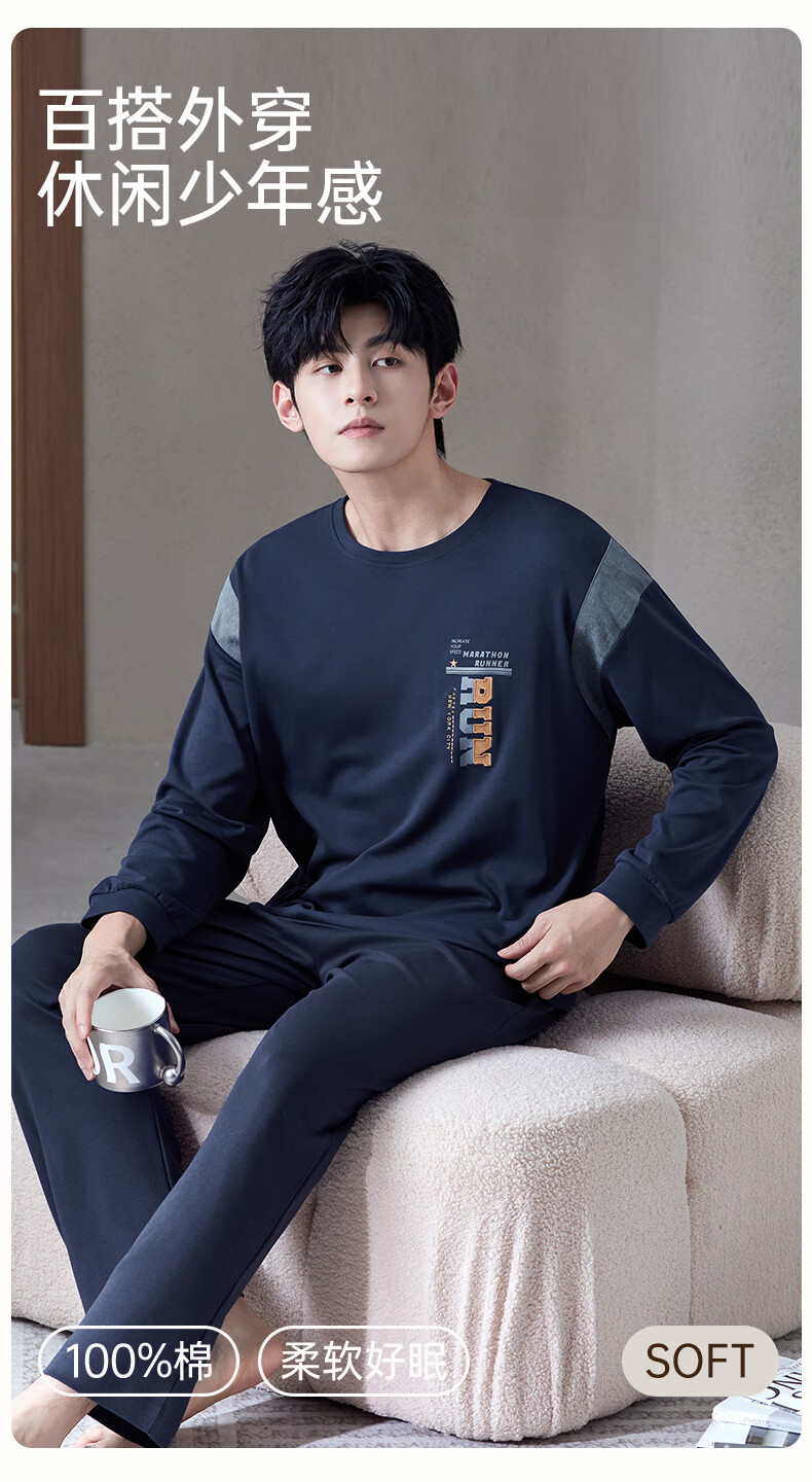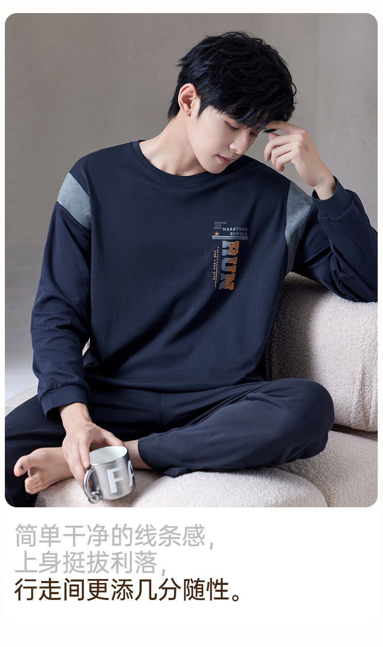 爱慕先生【牛奶系-加倍暖】双层加厚吸湿发热含氨基酸蛋白质男保暖套装 单层-蓝莓牛奶套装 2XL 180