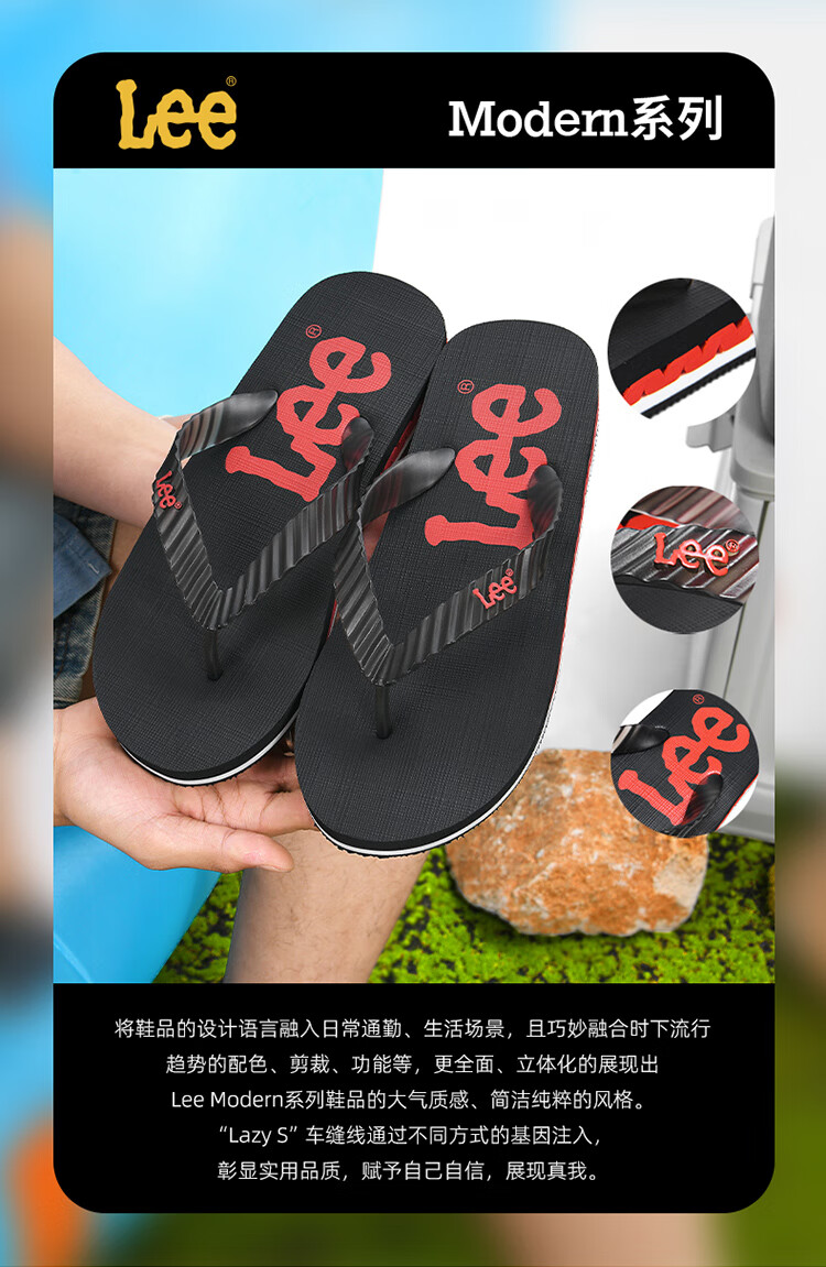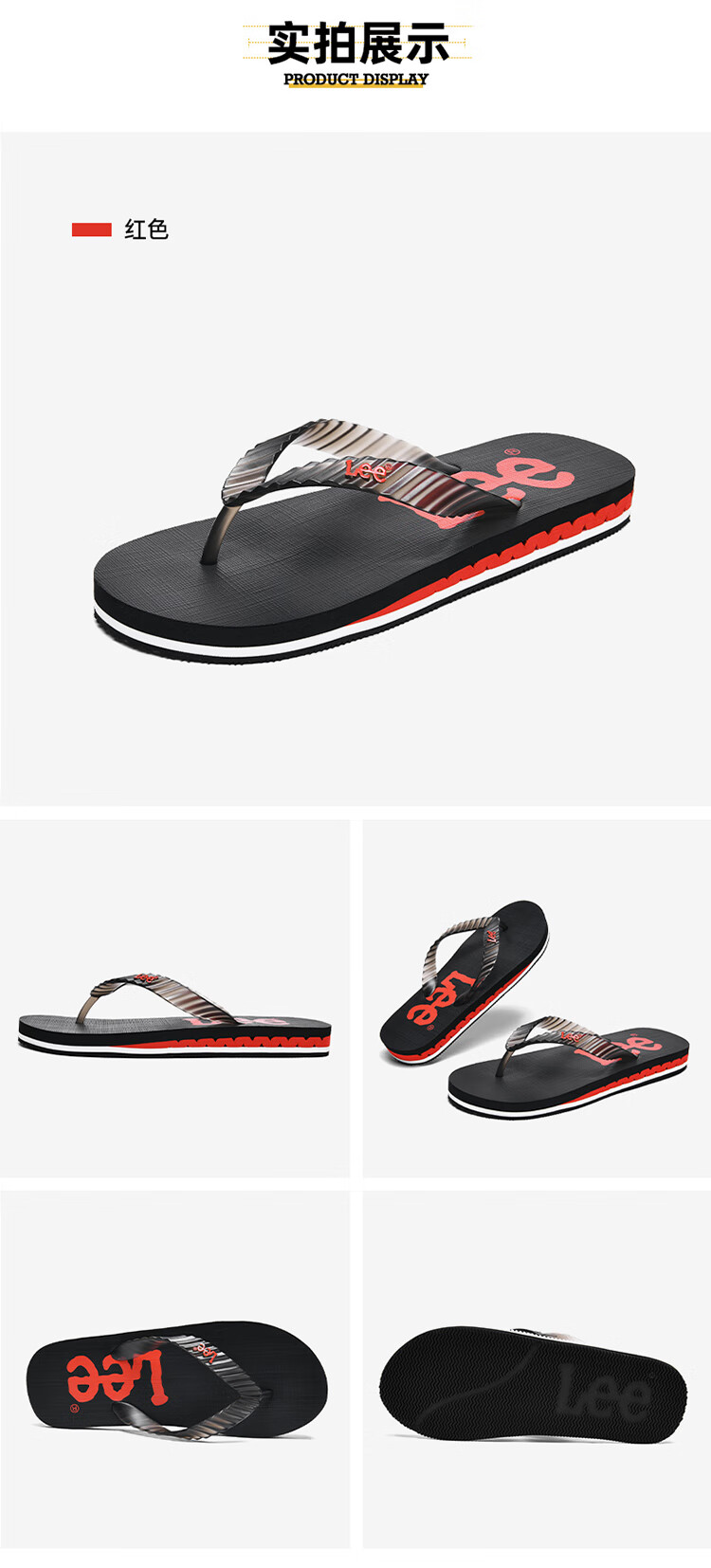 Lee人字拖2025夏季新款男士拖鞋防滑防臭沙滩外穿夹脚踩屎感潮流凉拖 红色 41