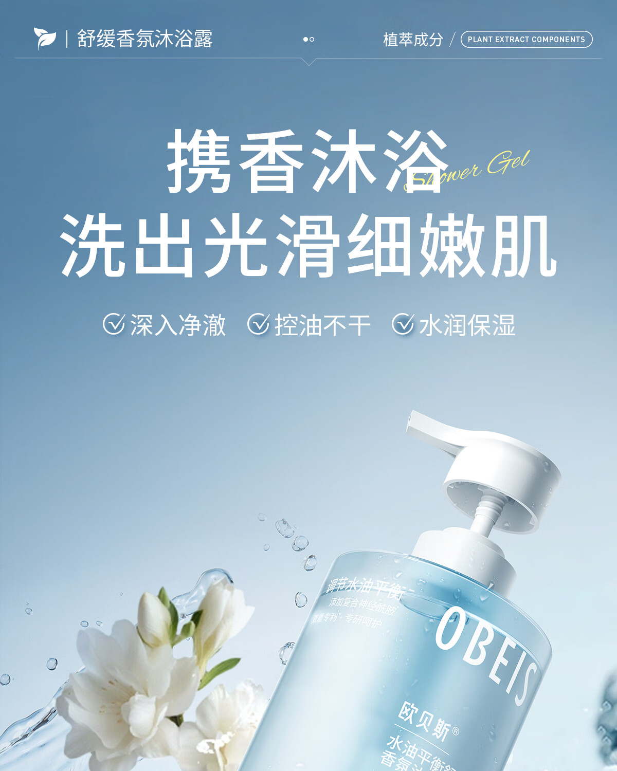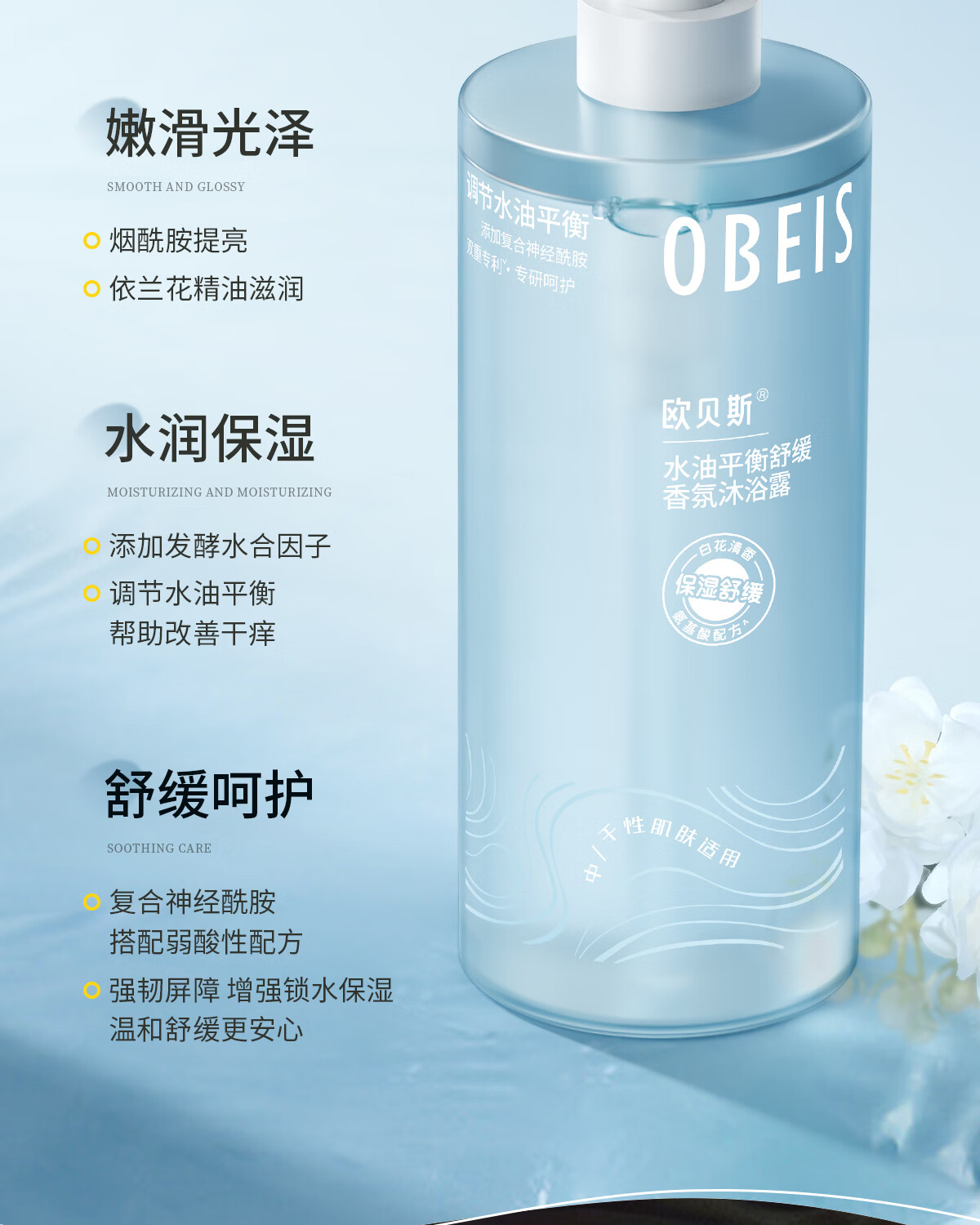 欧贝斯烟酰胺沐浴露水油平衡控油沐浴乳液800g持久留香保湿舒缓男女通用