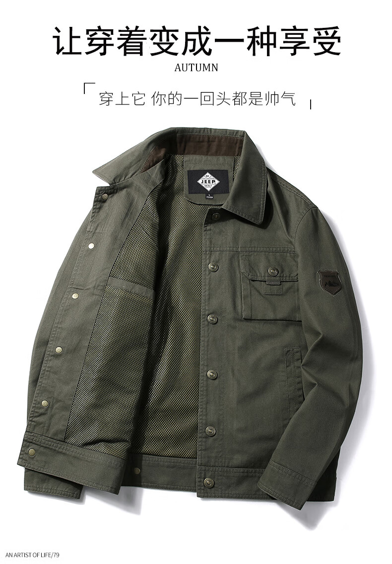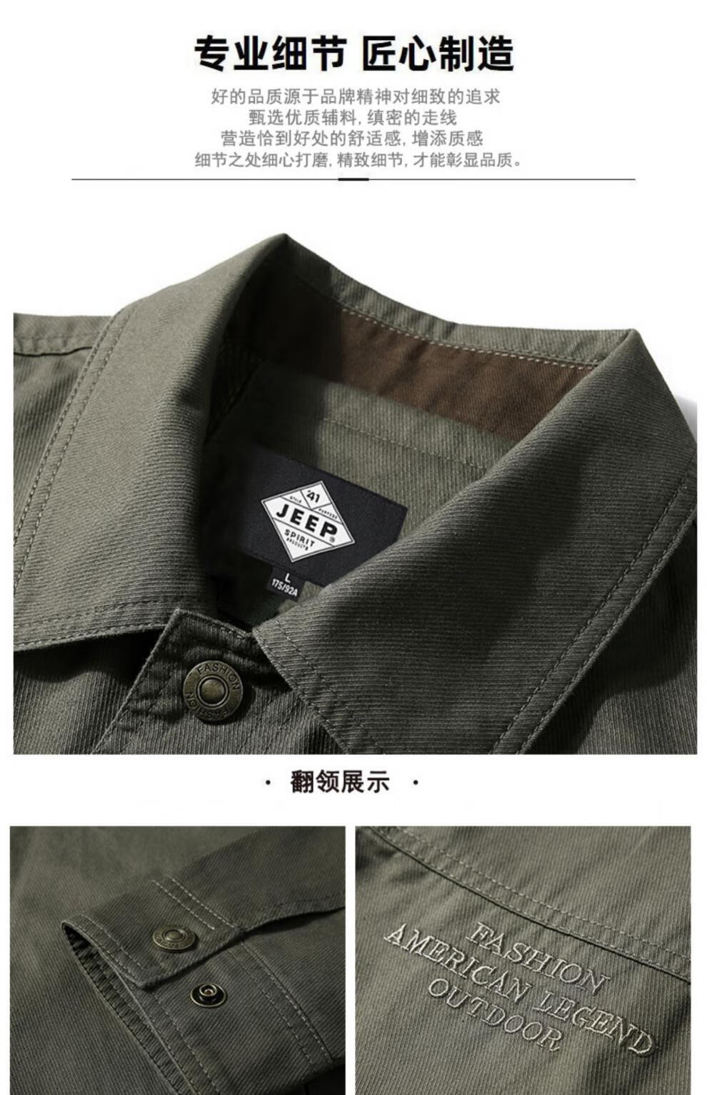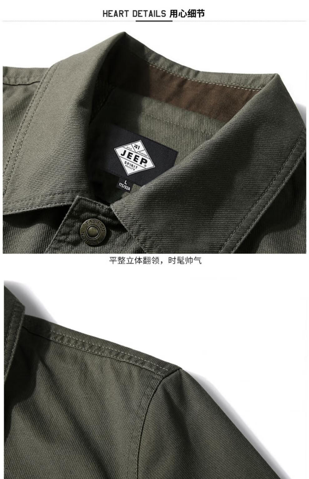 JEEP SPIRIT男士夹克2024春秋休闲宽松翻领秋季工装外套男装上衣 3218军绿 L