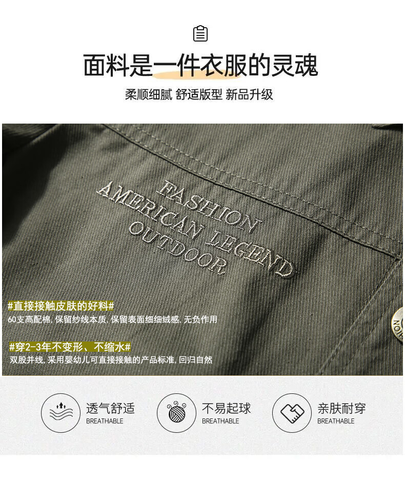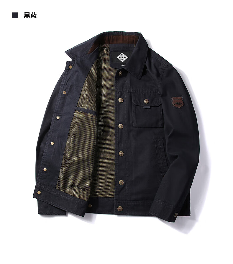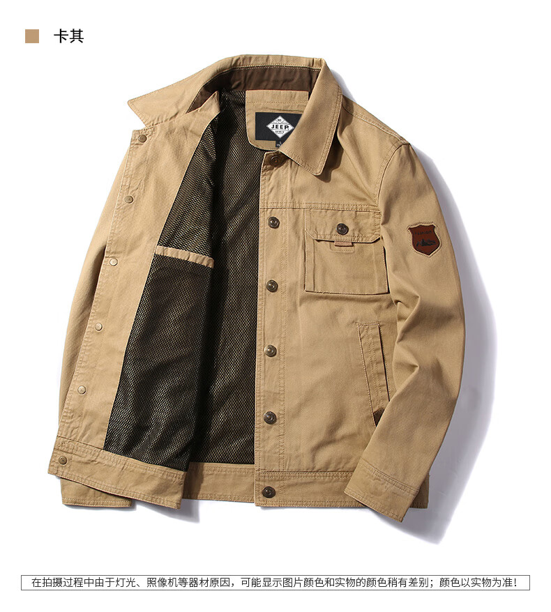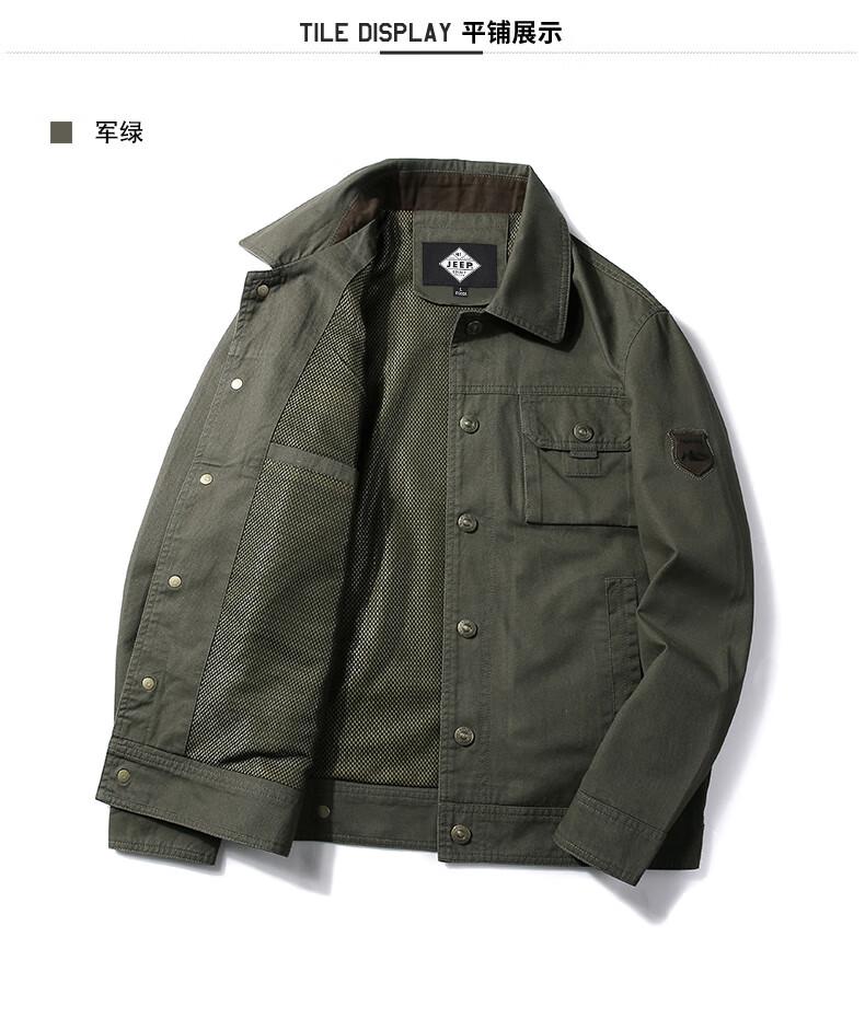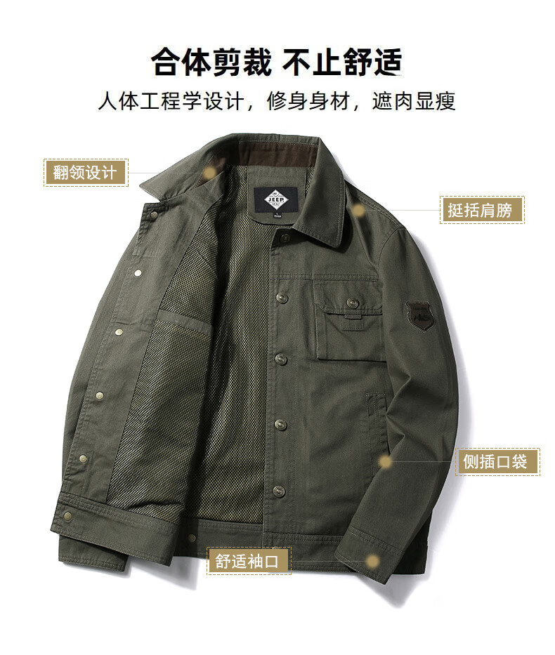 JEEP SPIRIT男士夹克2024春秋休闲宽松翻领秋季工装外套男装上衣 3218军绿 L