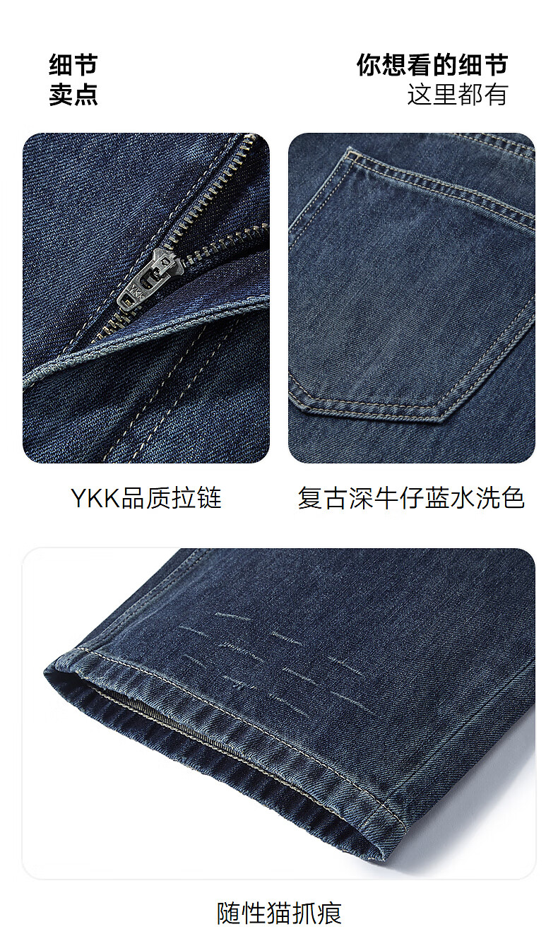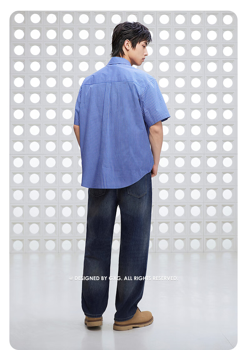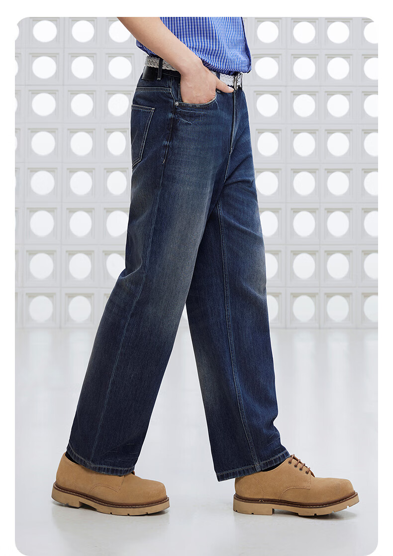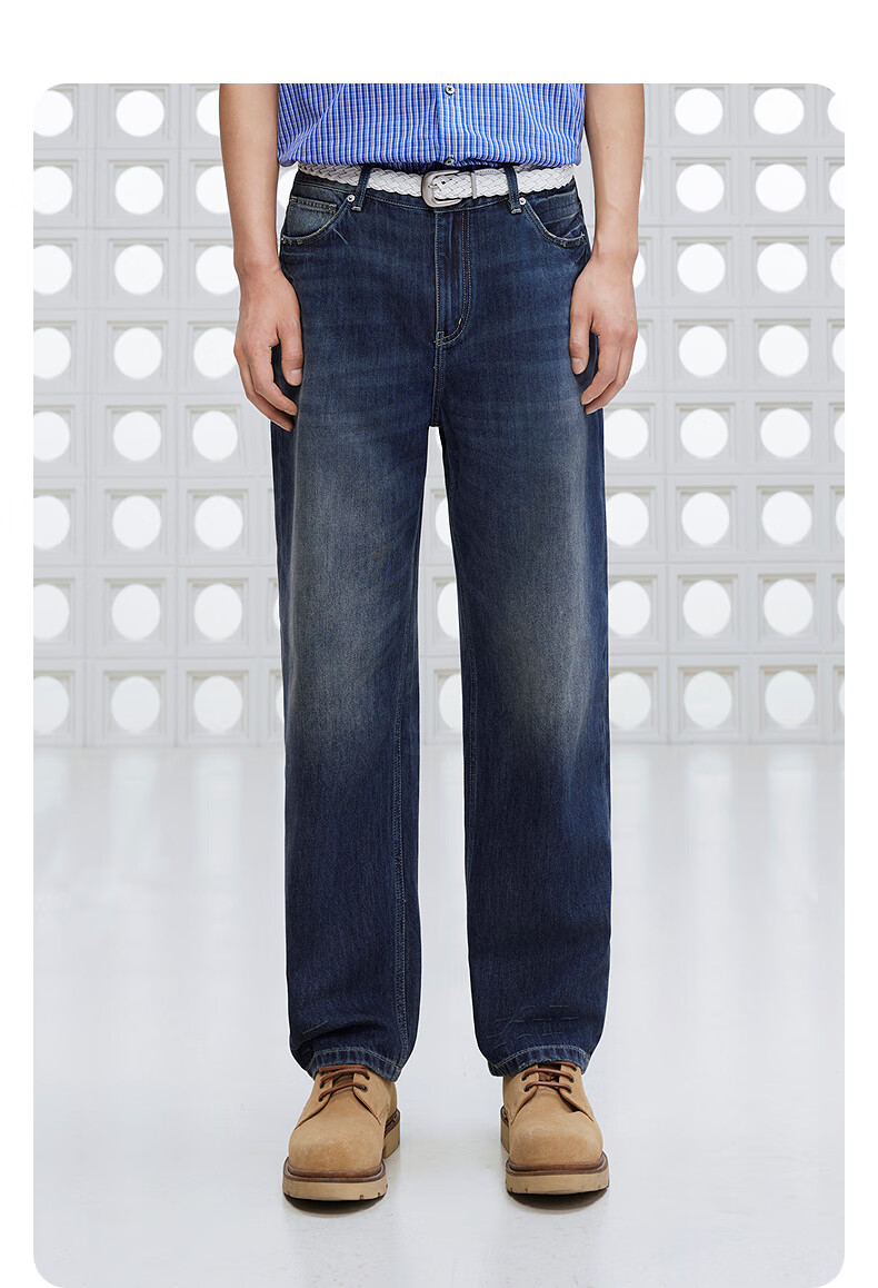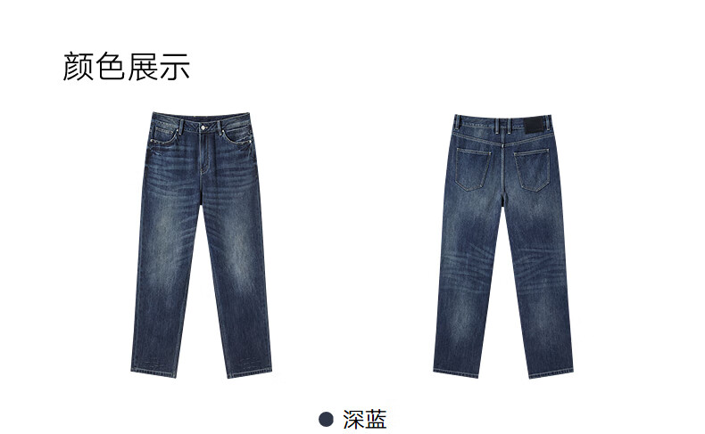 GXG男装宽松直筒复古深色水洗牛仔裤 深蓝 170/M