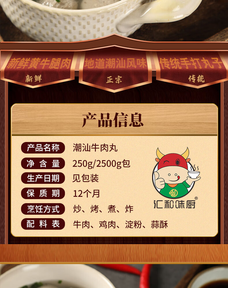 汇和味厨潮汕牛肉牛筋丸特产手工丸子火锅丸子烧烤食材【顺丰】 牛筋丸1000g