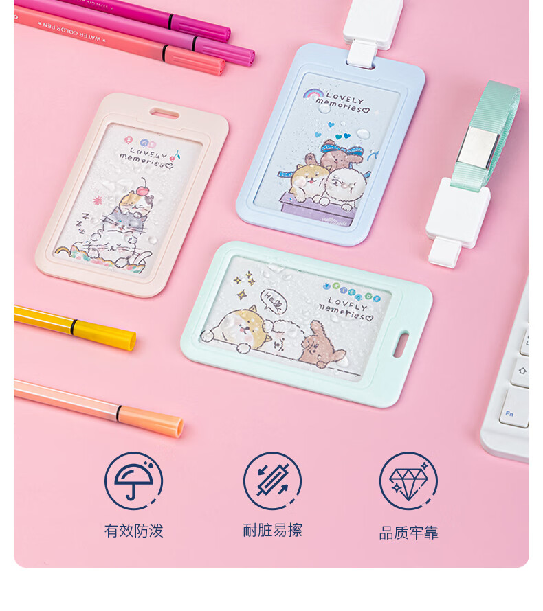 得力(deli)注塑ABS证件卡-易拉扣款 厂牌工牌/校园卡/身份证/公交卡 小学初高中胸牌卡通风格 颜色随机 64824