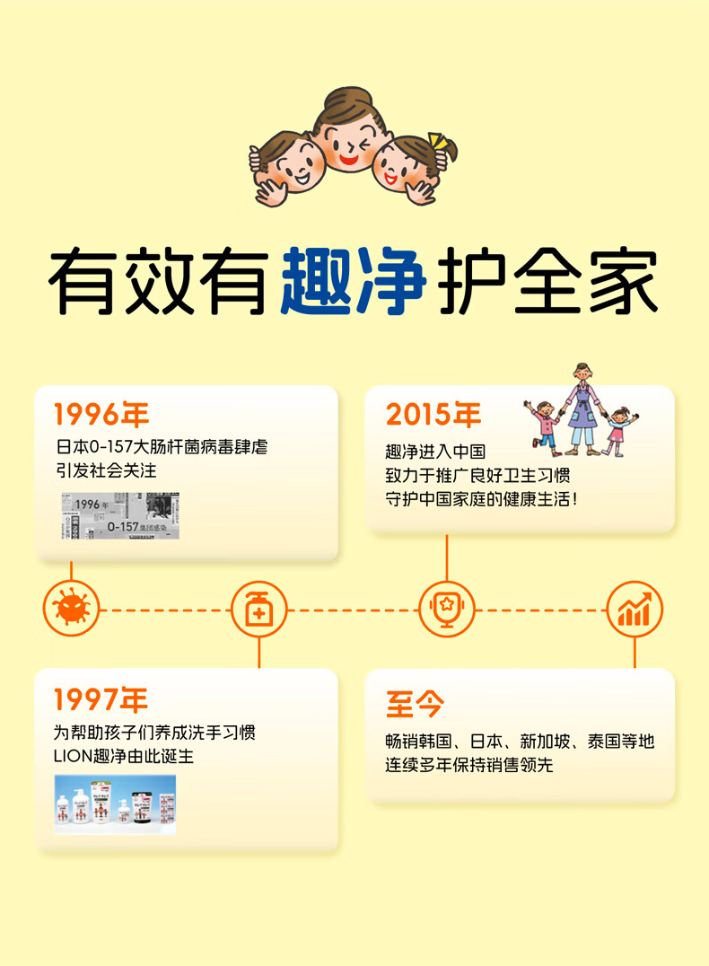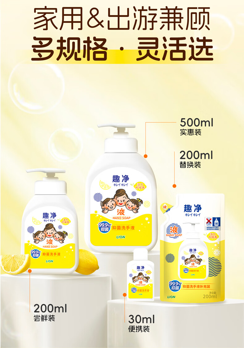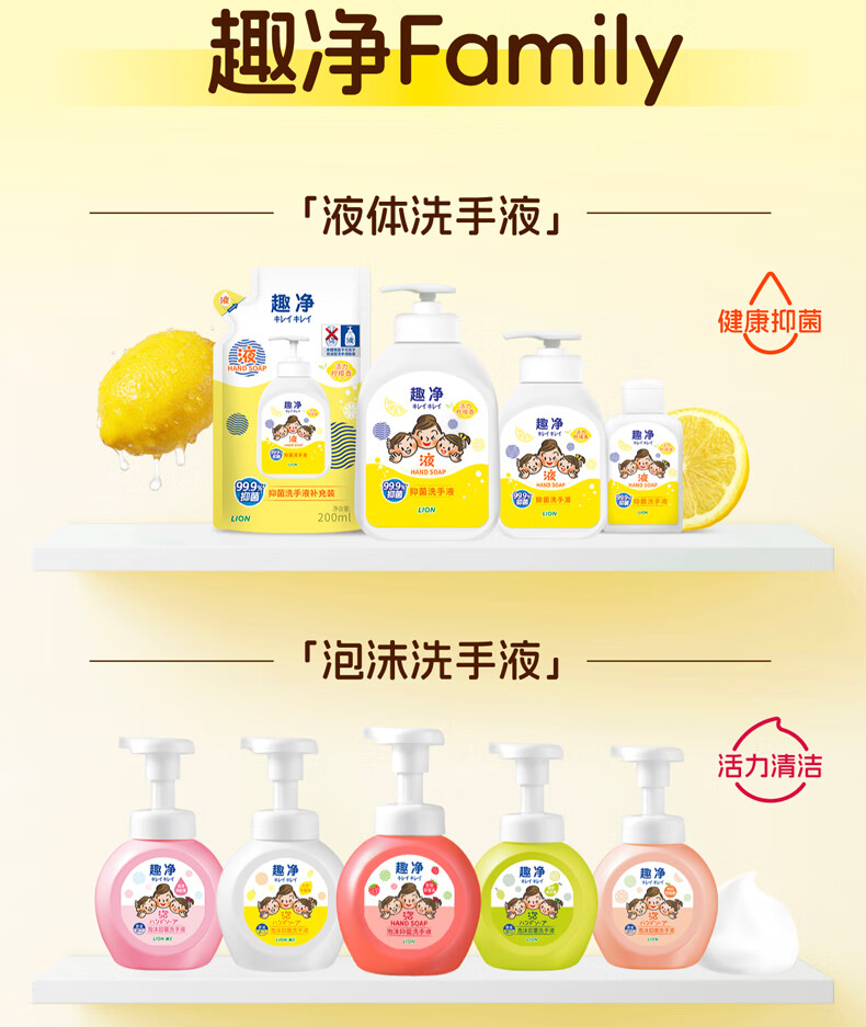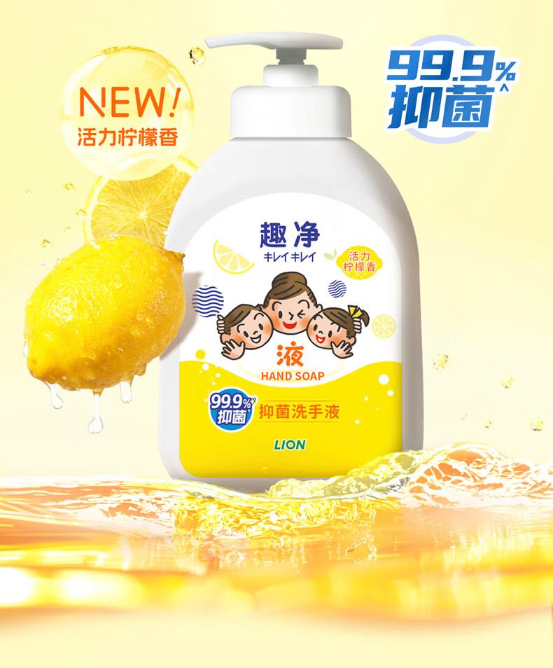 狮王(Lion)趣净抑菌洗手液活力柠檬香200ml天然植萃呵护一洗就净儿童抑菌