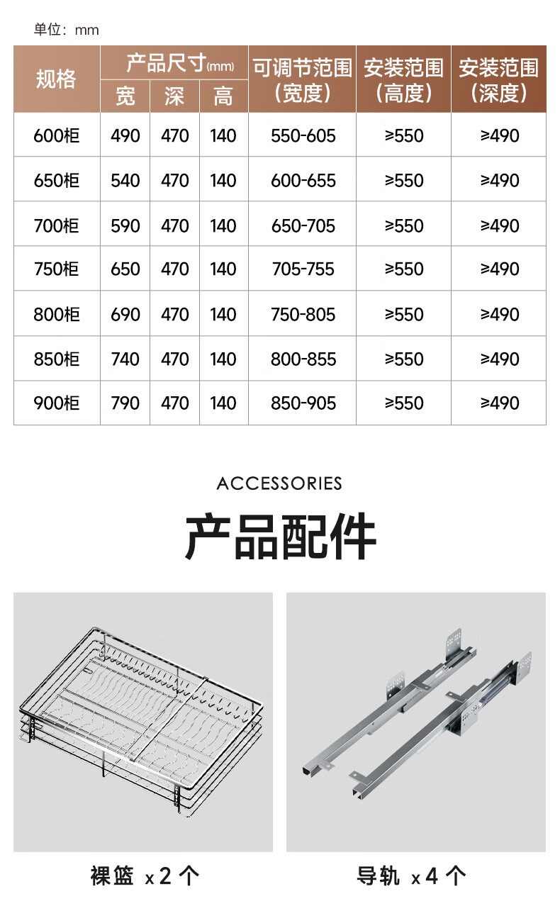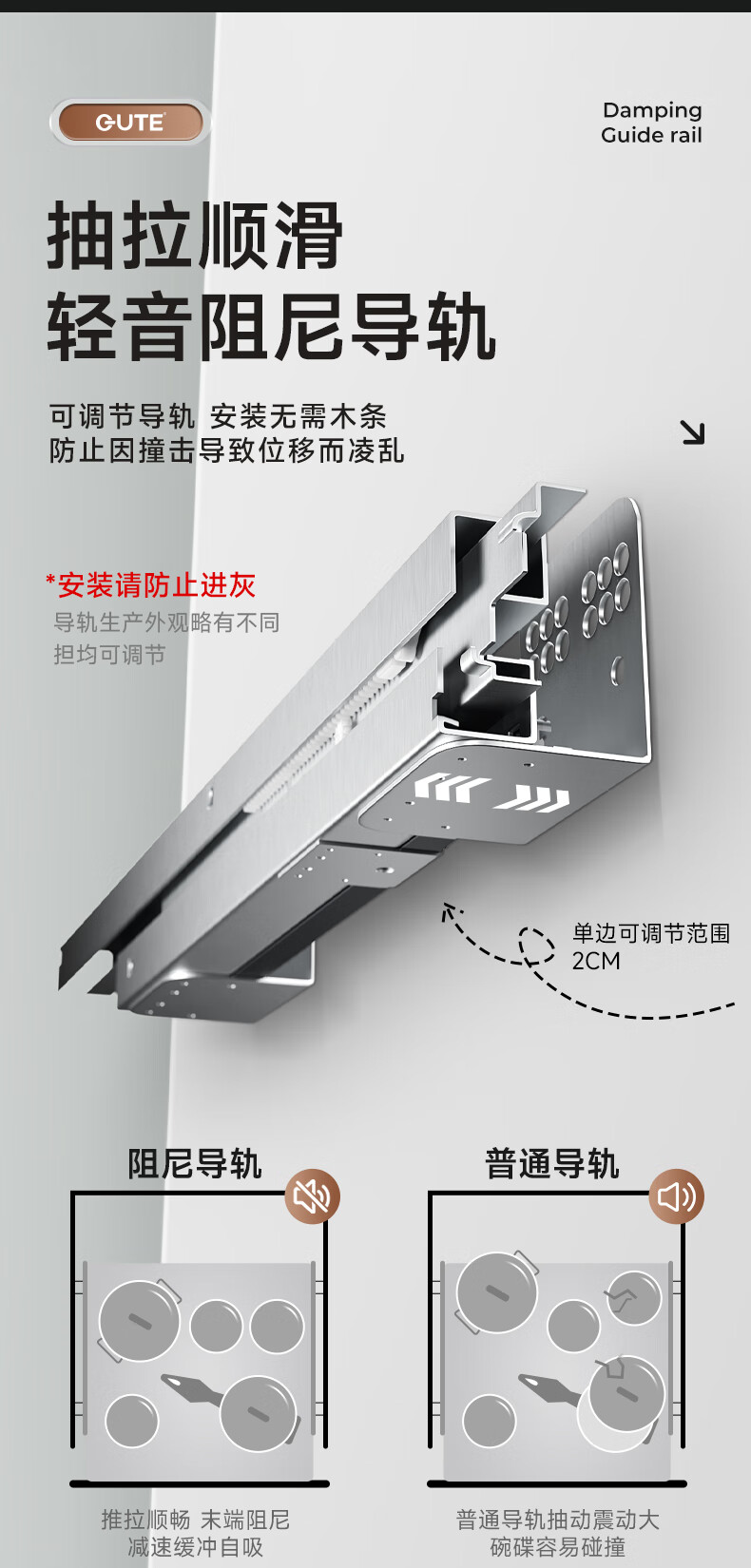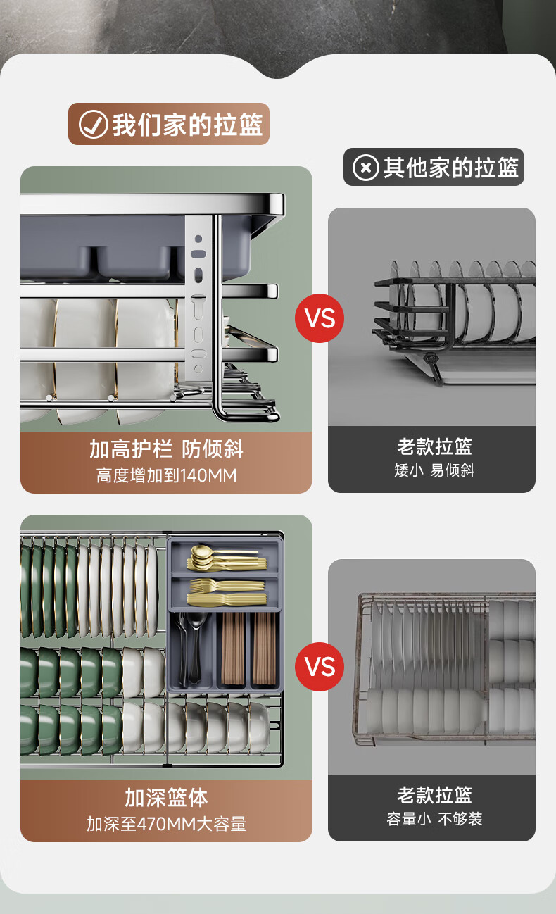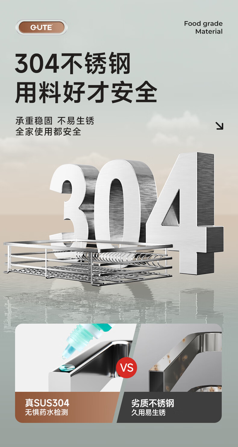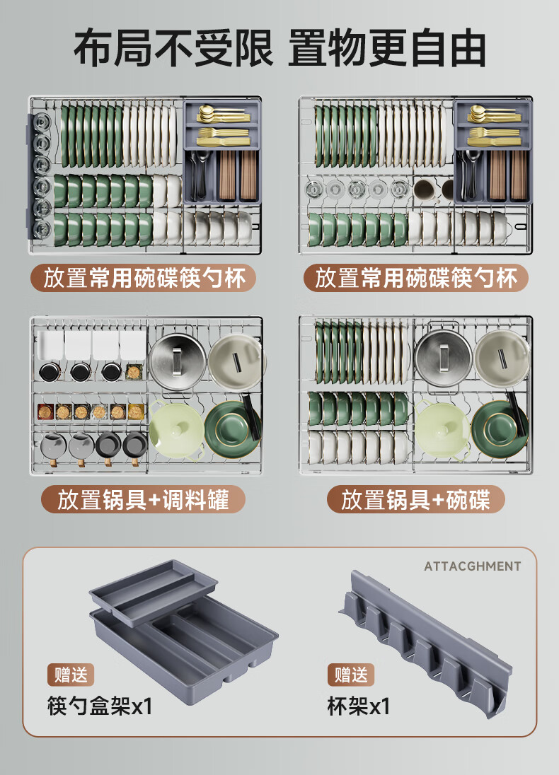 固特(GUTE)拉篮厨房橱柜抽屉式不锈钢厨房拉篮碗碟碗架碗柜调味拉篮 双层星空灰【600柜】不锈钢