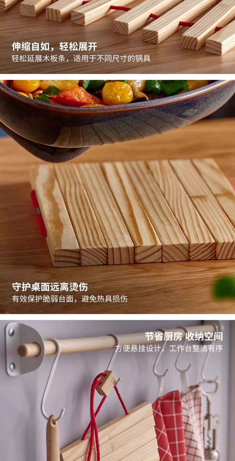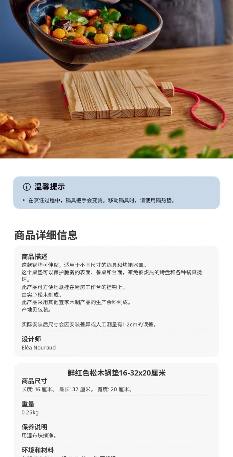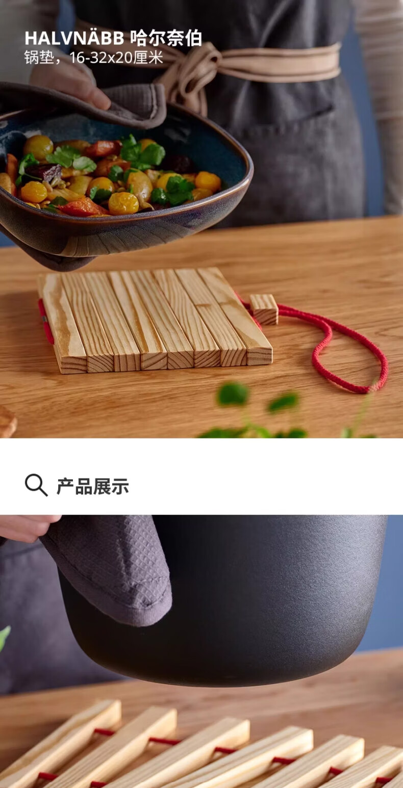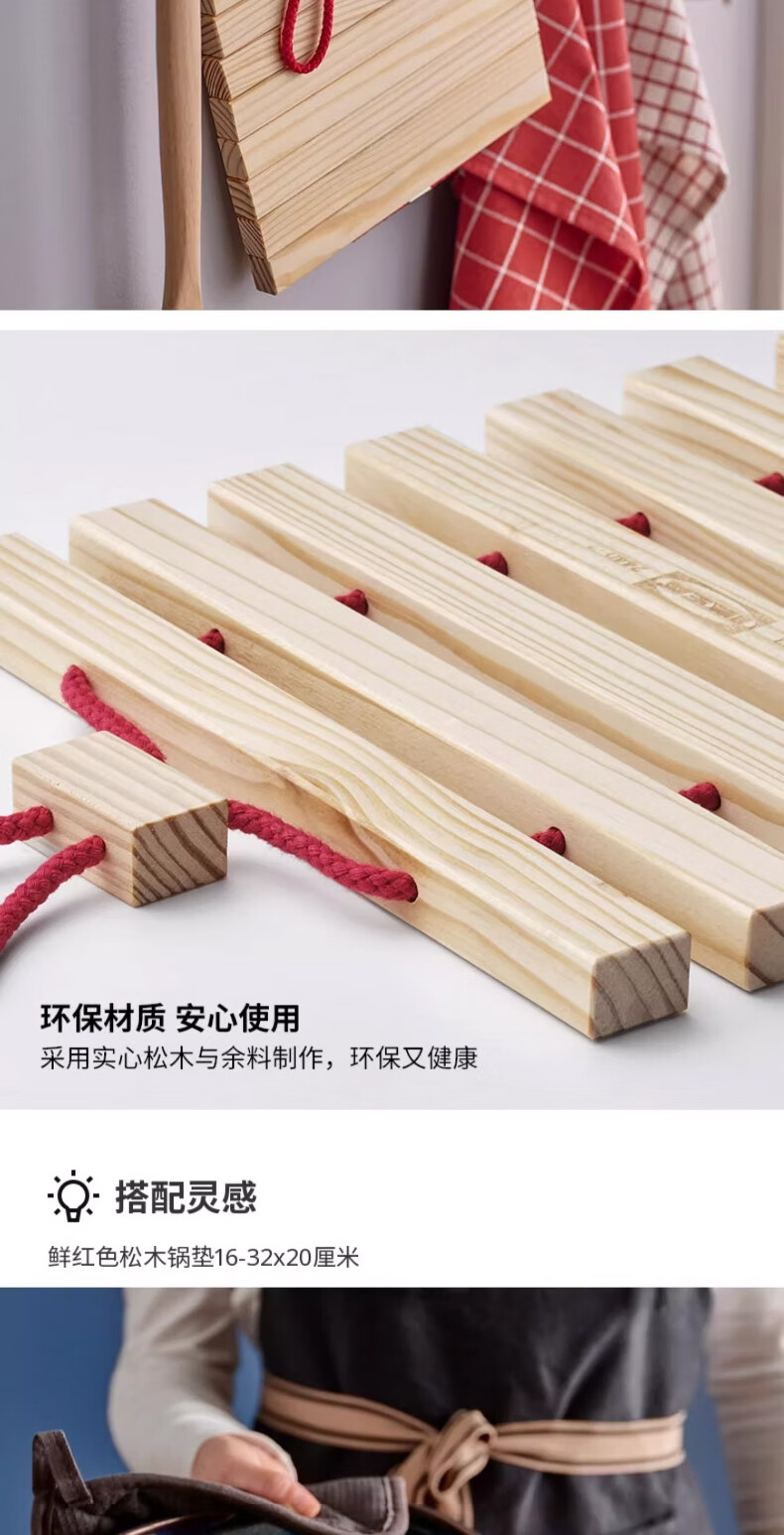 宜家(IKEA)HALVNABB哈尔奈伯实木锅垫耐高温餐桌盘子垫 鲜红色/松木16-32x20cm