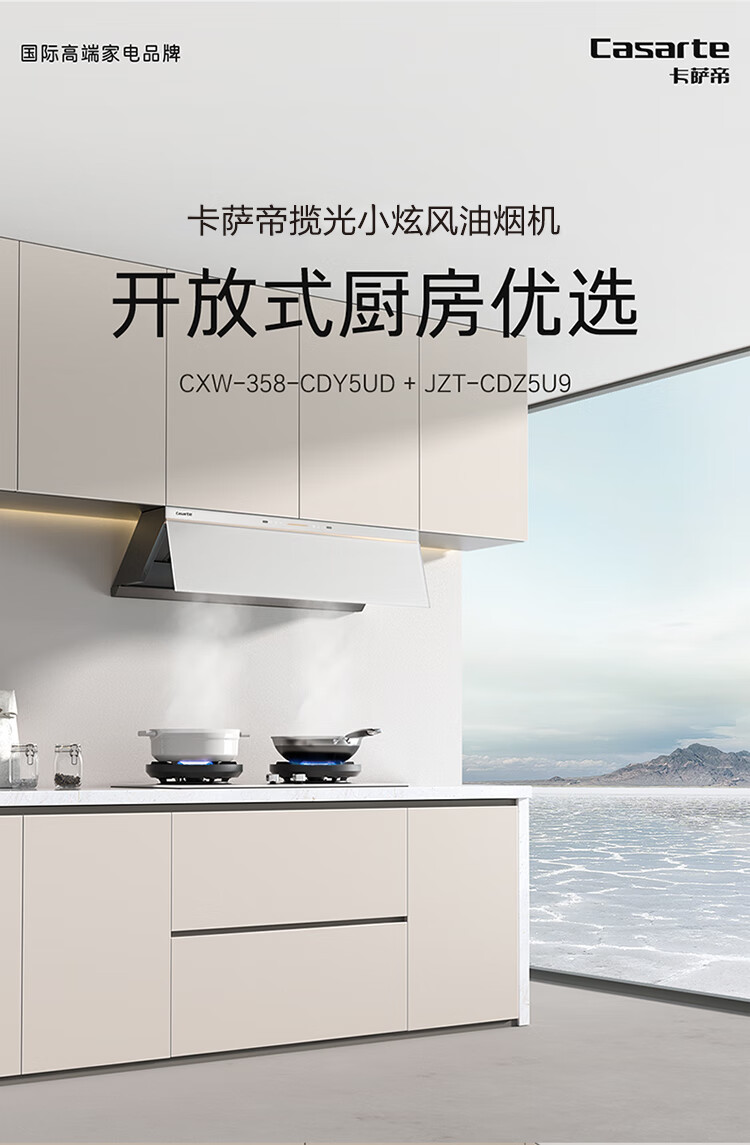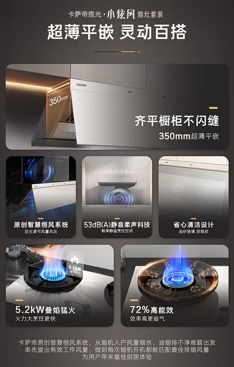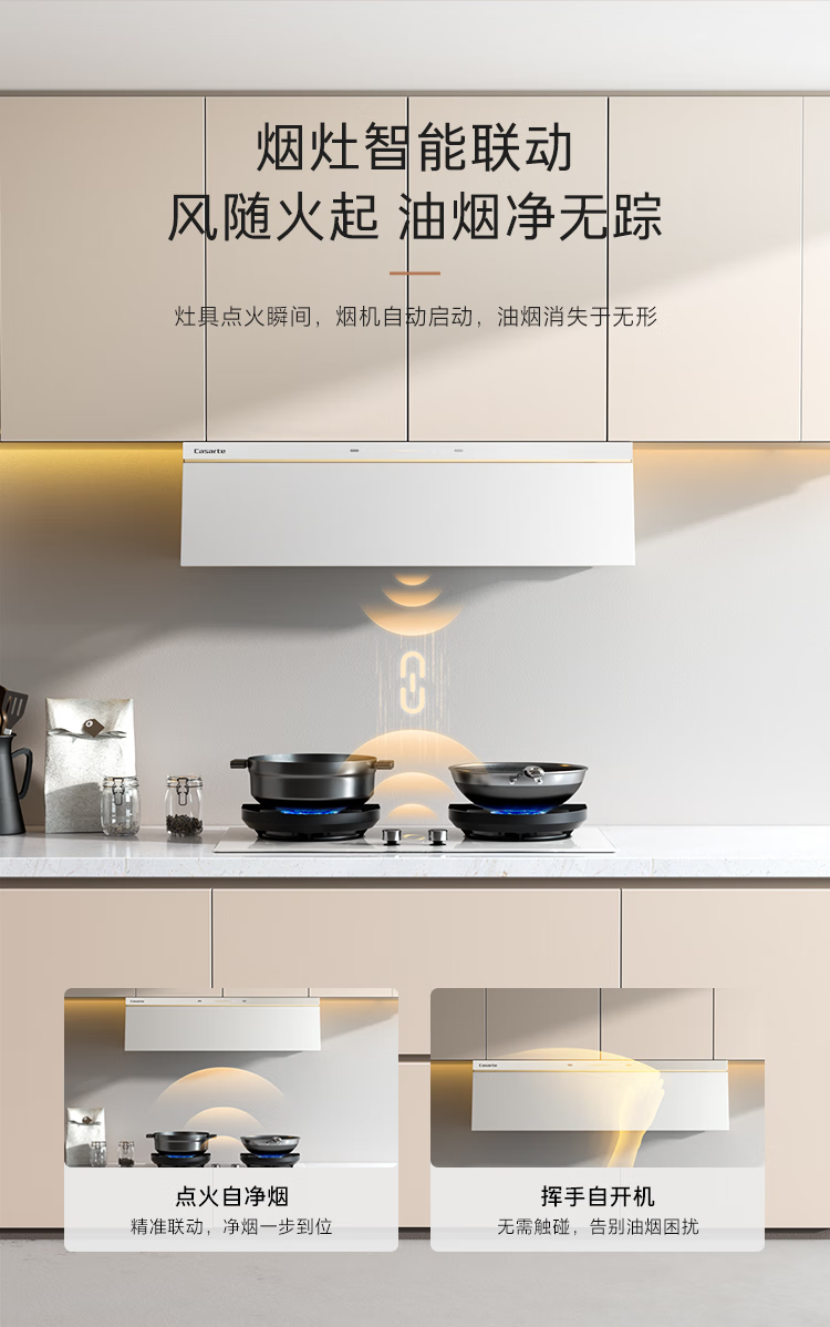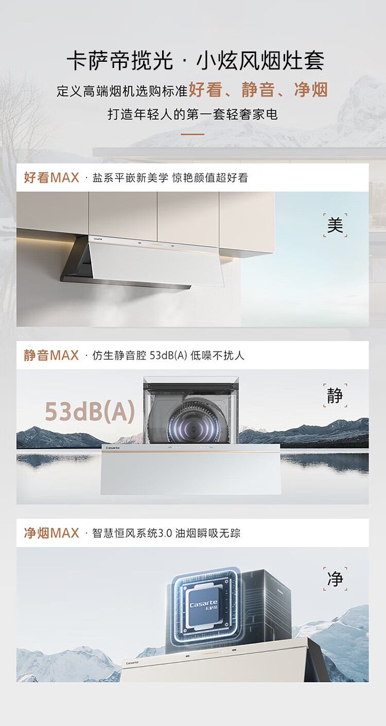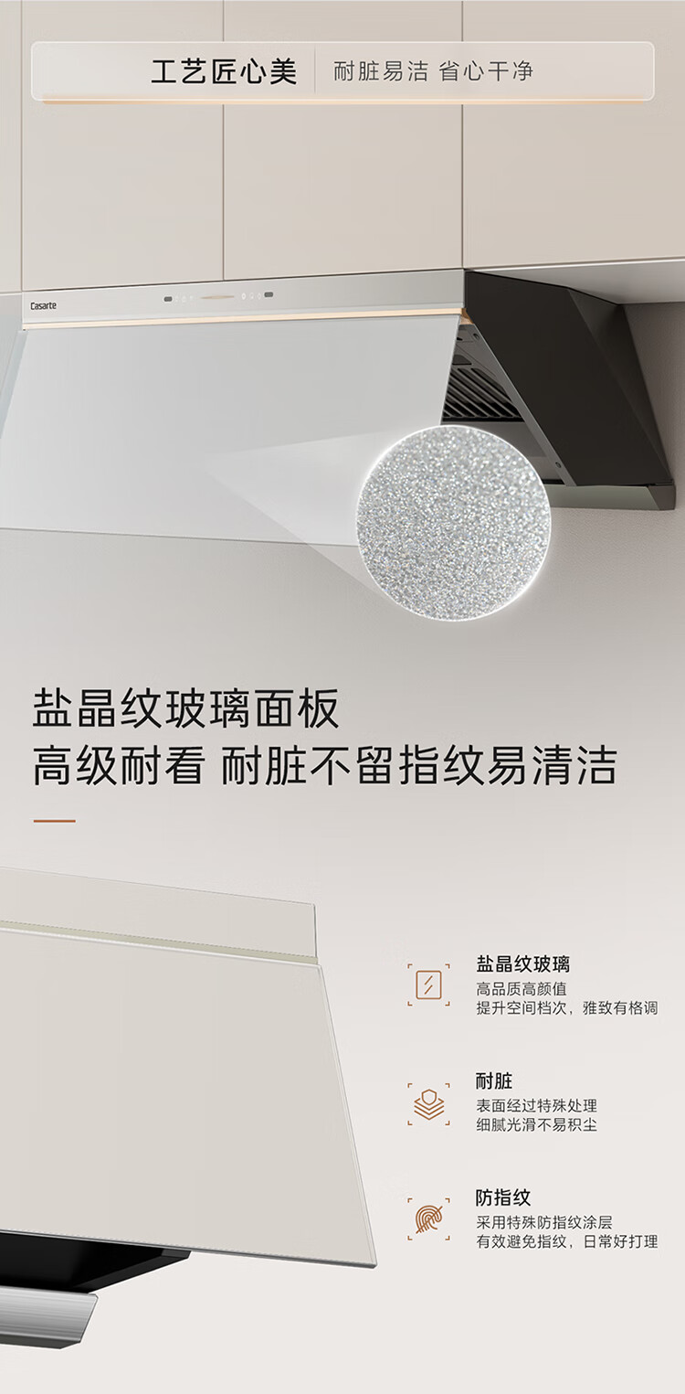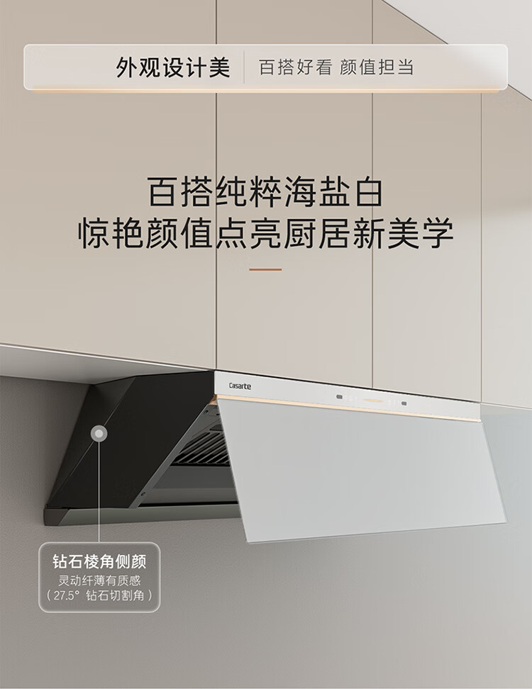 卡萨帝(Casarte)小炫风油烟机 盐白色超薄平嵌揽光抽油烟机家用烟灶套装 28风量大吸力静音国家补贴20% 烟灶联动Y5