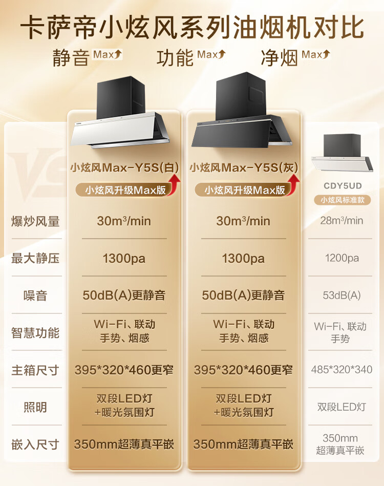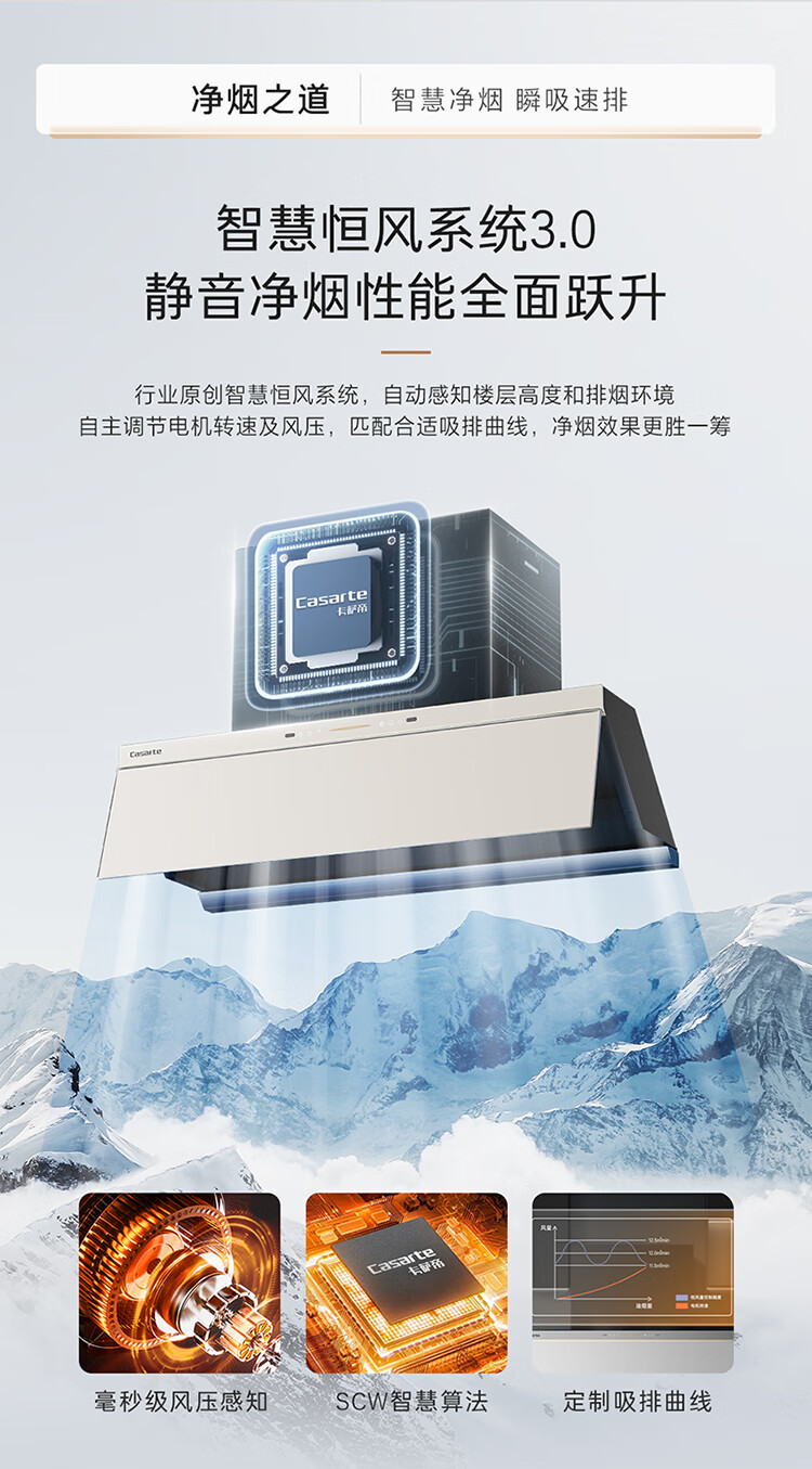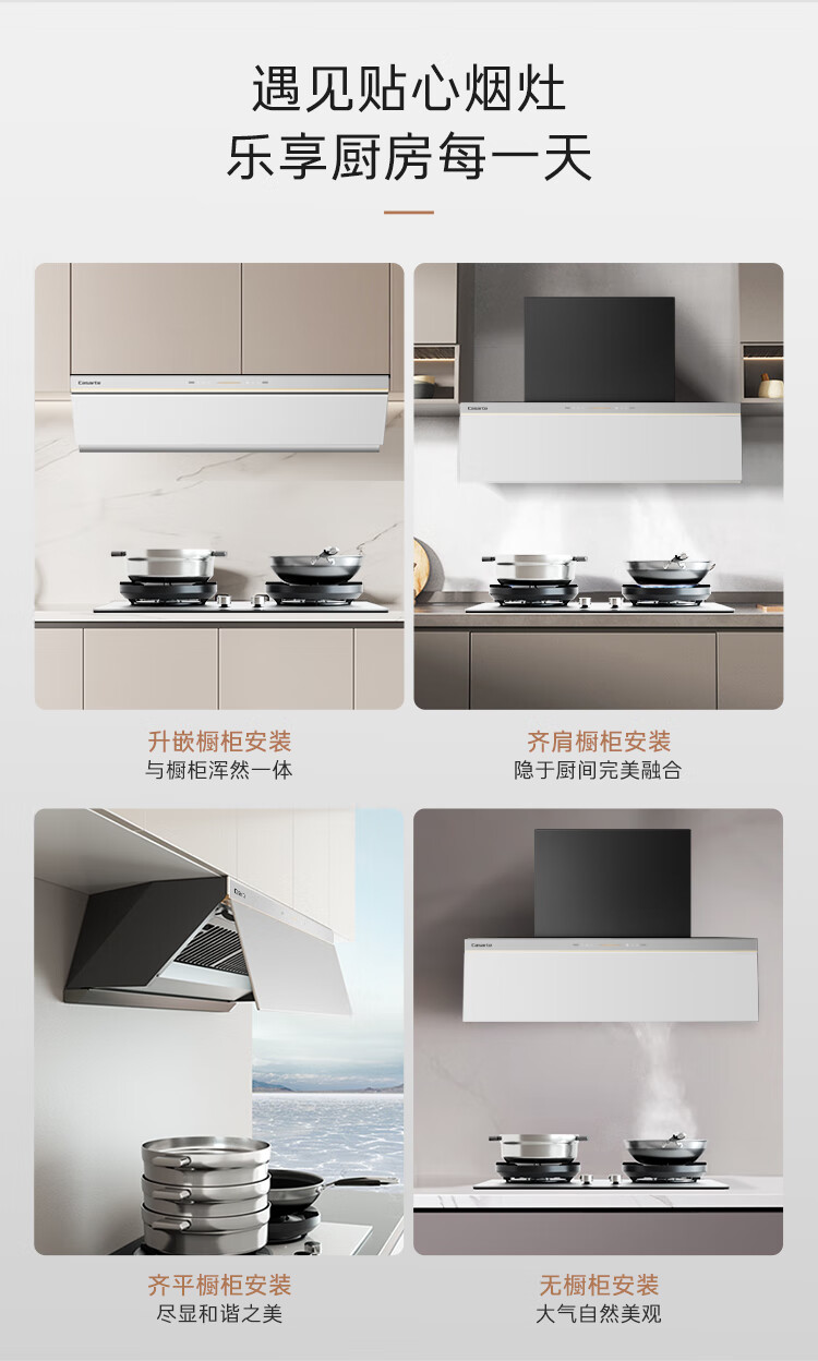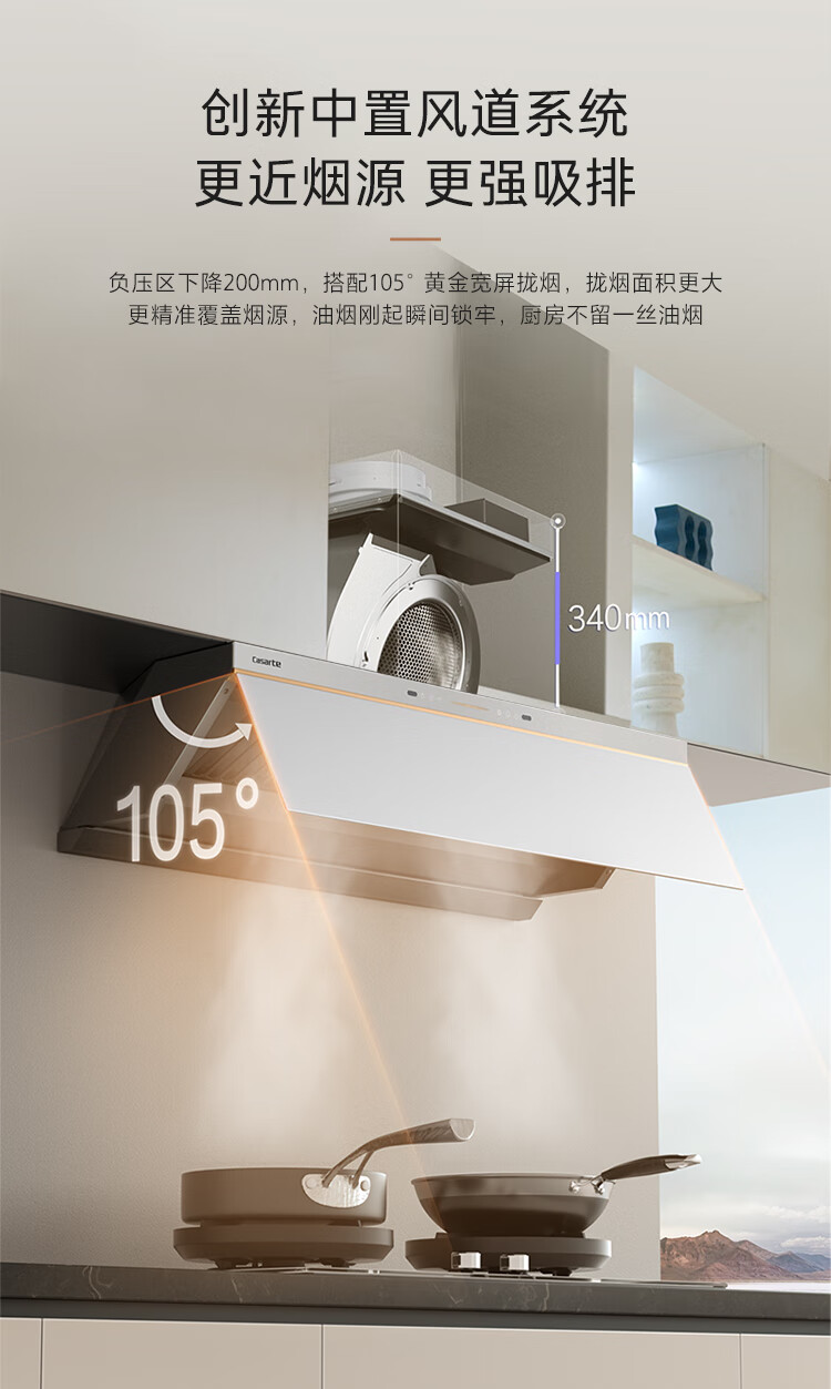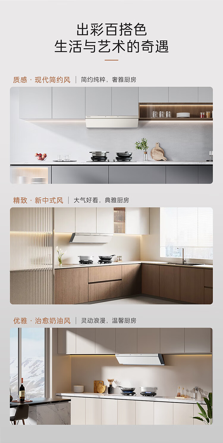 卡萨帝(Casarte)小炫风油烟机 盐白色超薄平嵌揽光抽油烟机家用烟灶套装 28风量大吸力静音国家补贴20% 烟灶联动Y5