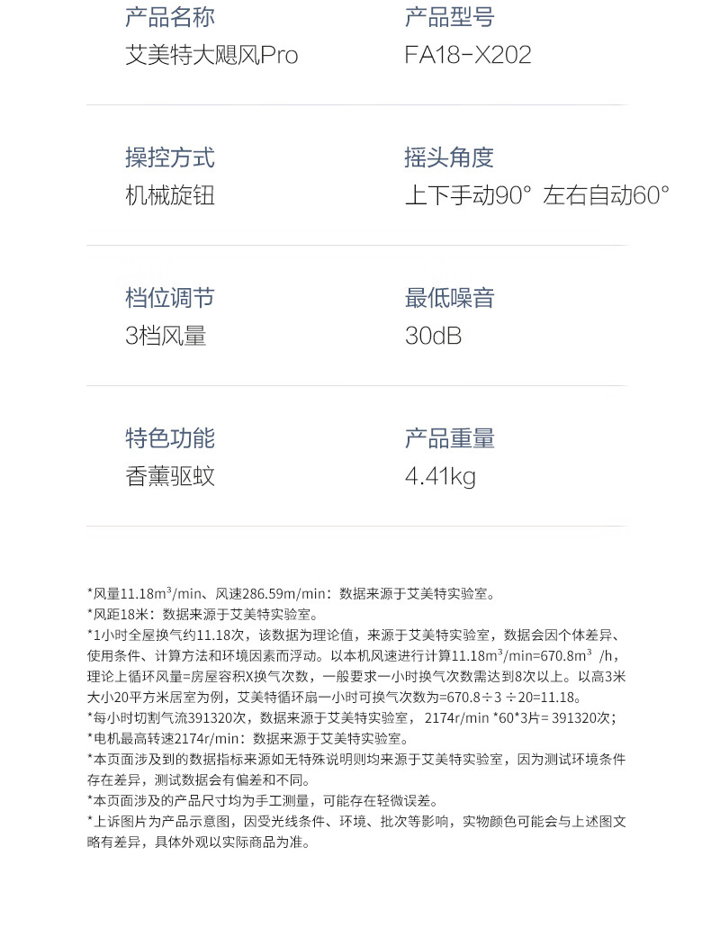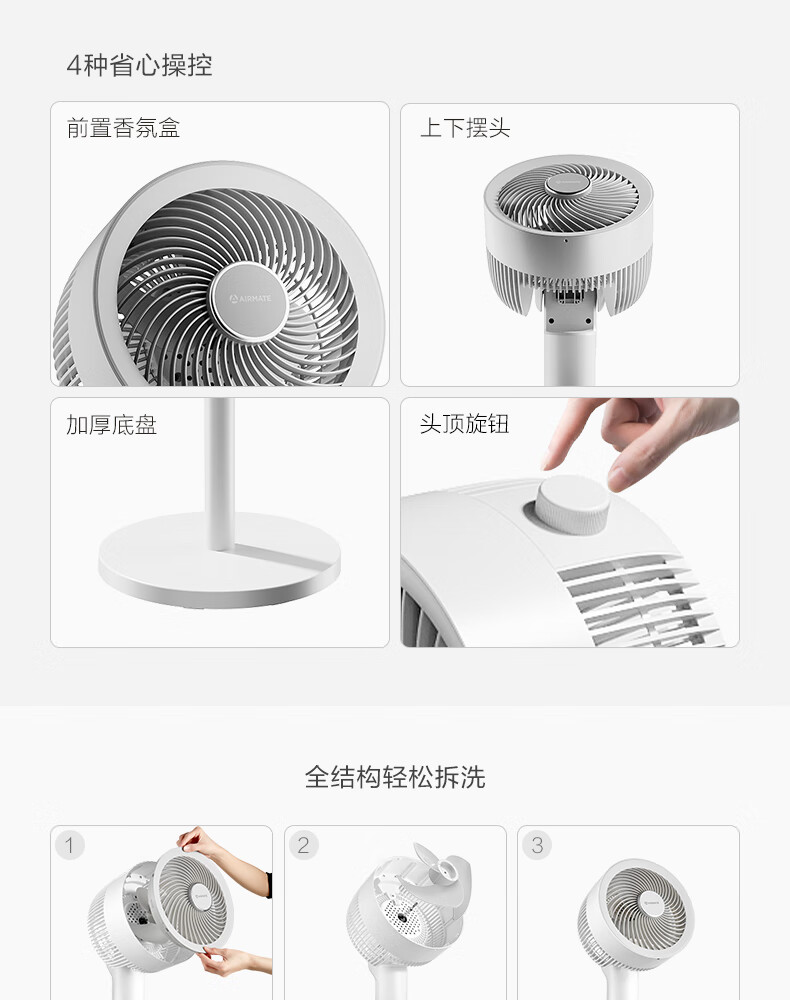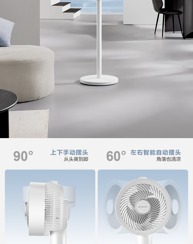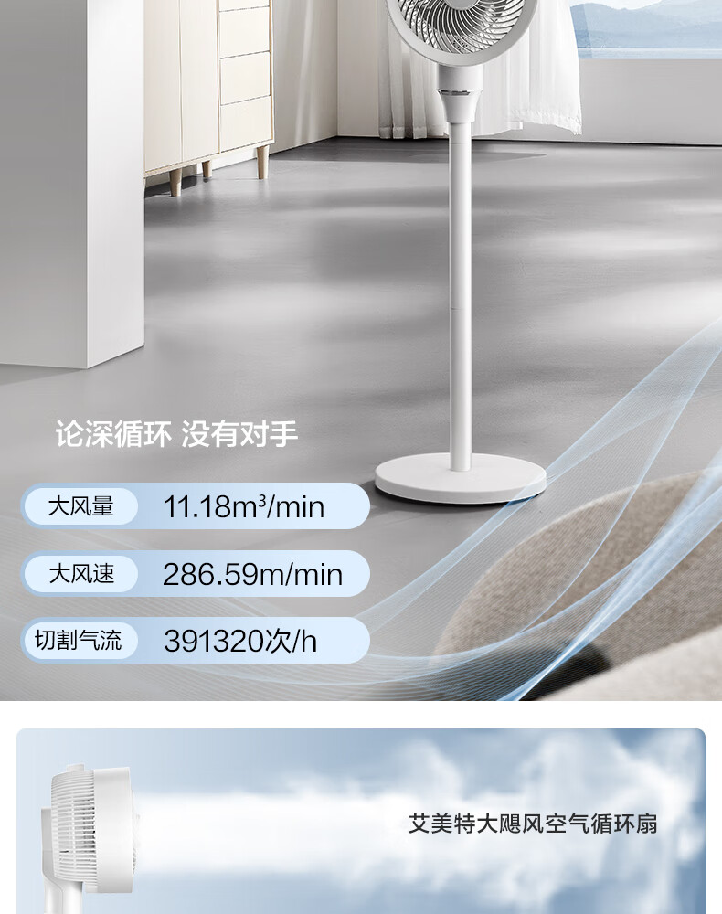 艾美特(AIRMATE)【大飓风】空气循环扇家用电风扇轻音节能落地扇大风力换气扇台立式小电扇香薰驱蚊交流定频X202