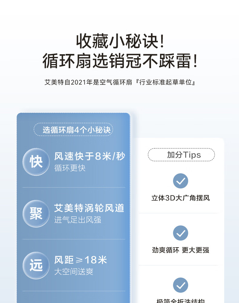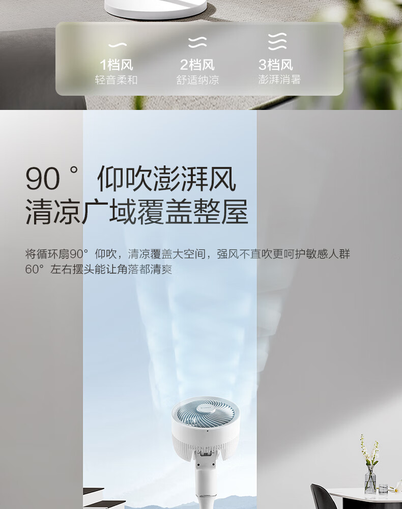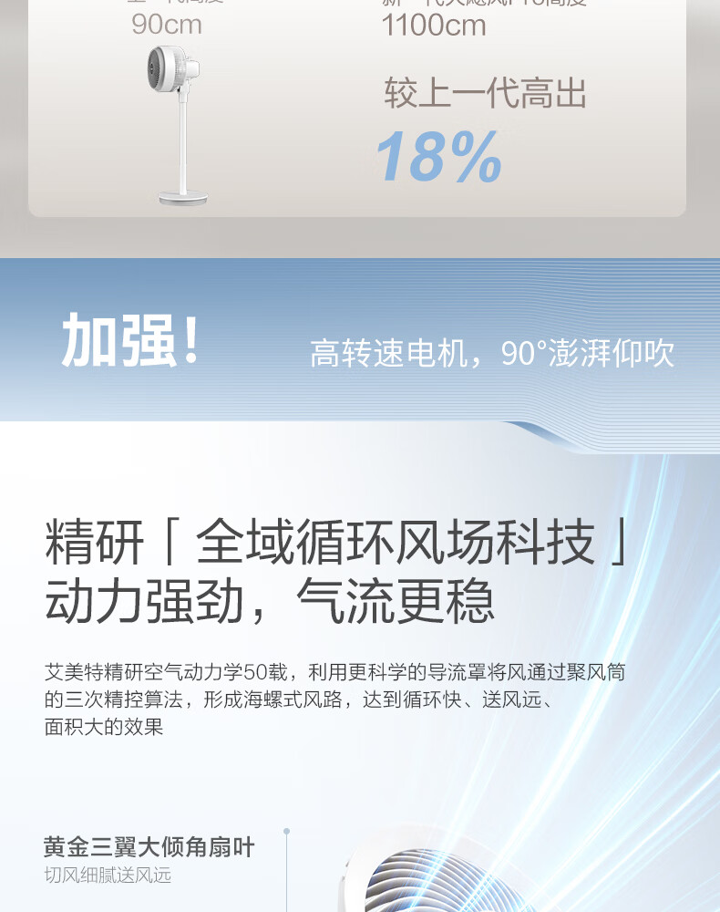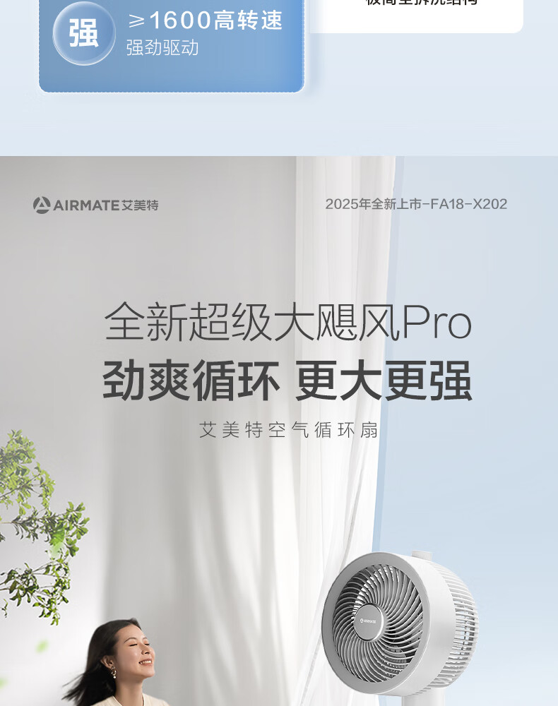 艾美特(AIRMATE)【大飓风】空气循环扇家用电风扇轻音节能落地扇大风力换气扇台立式小电扇香薰驱蚊交流定频X202