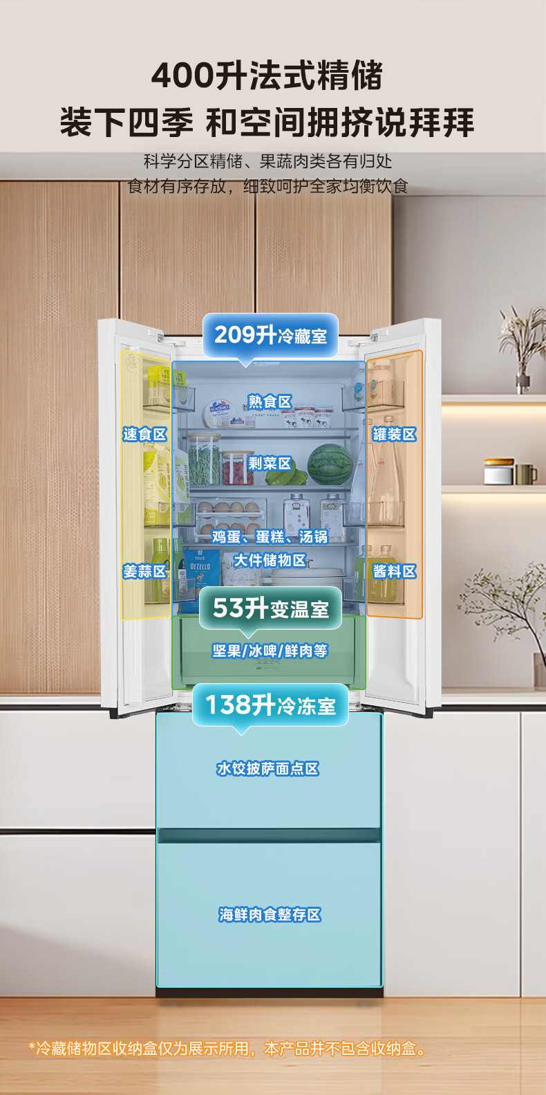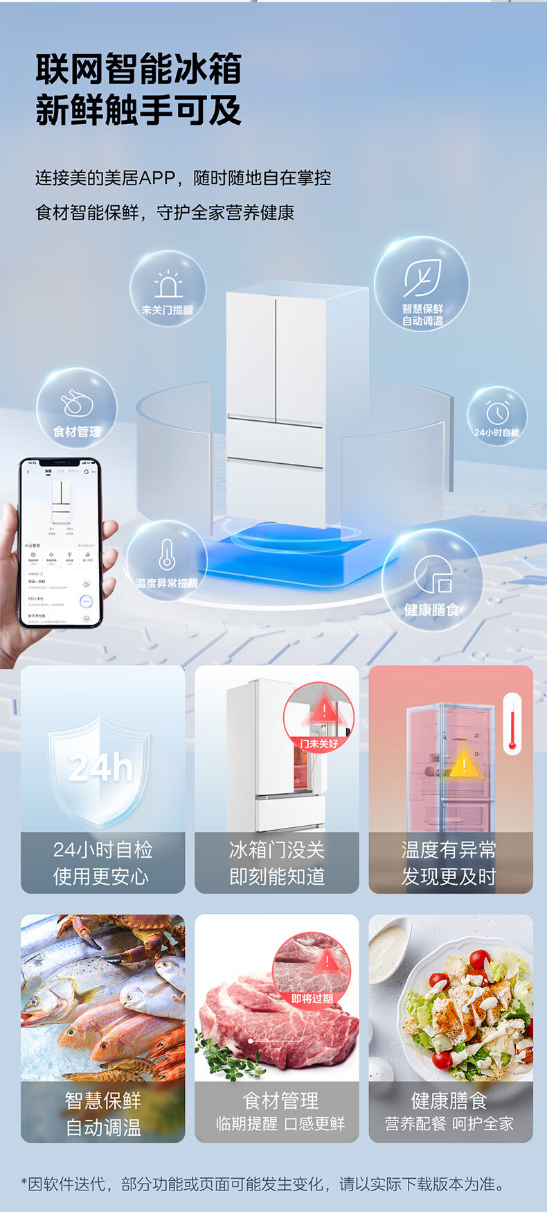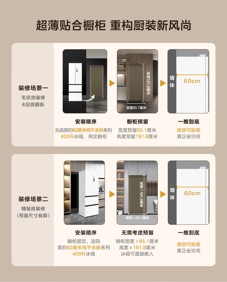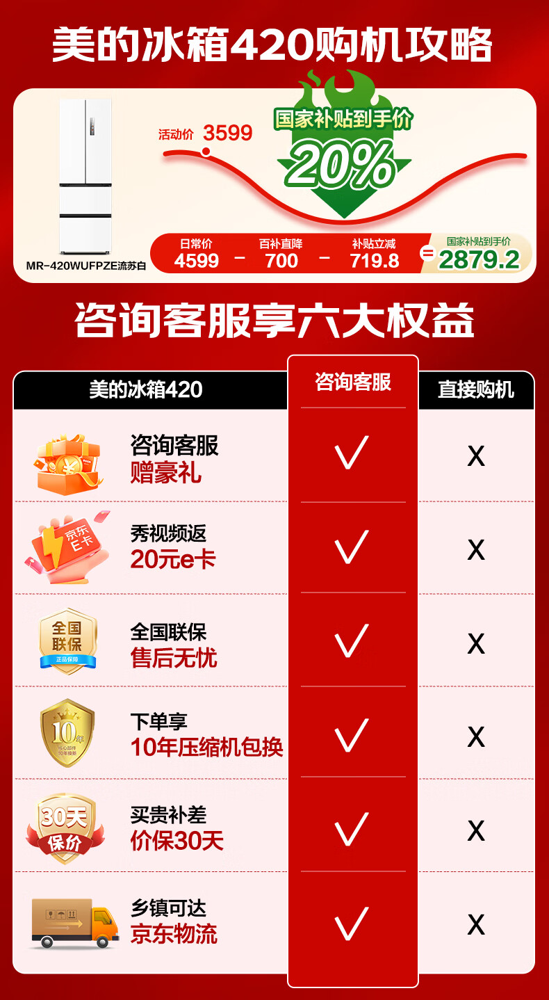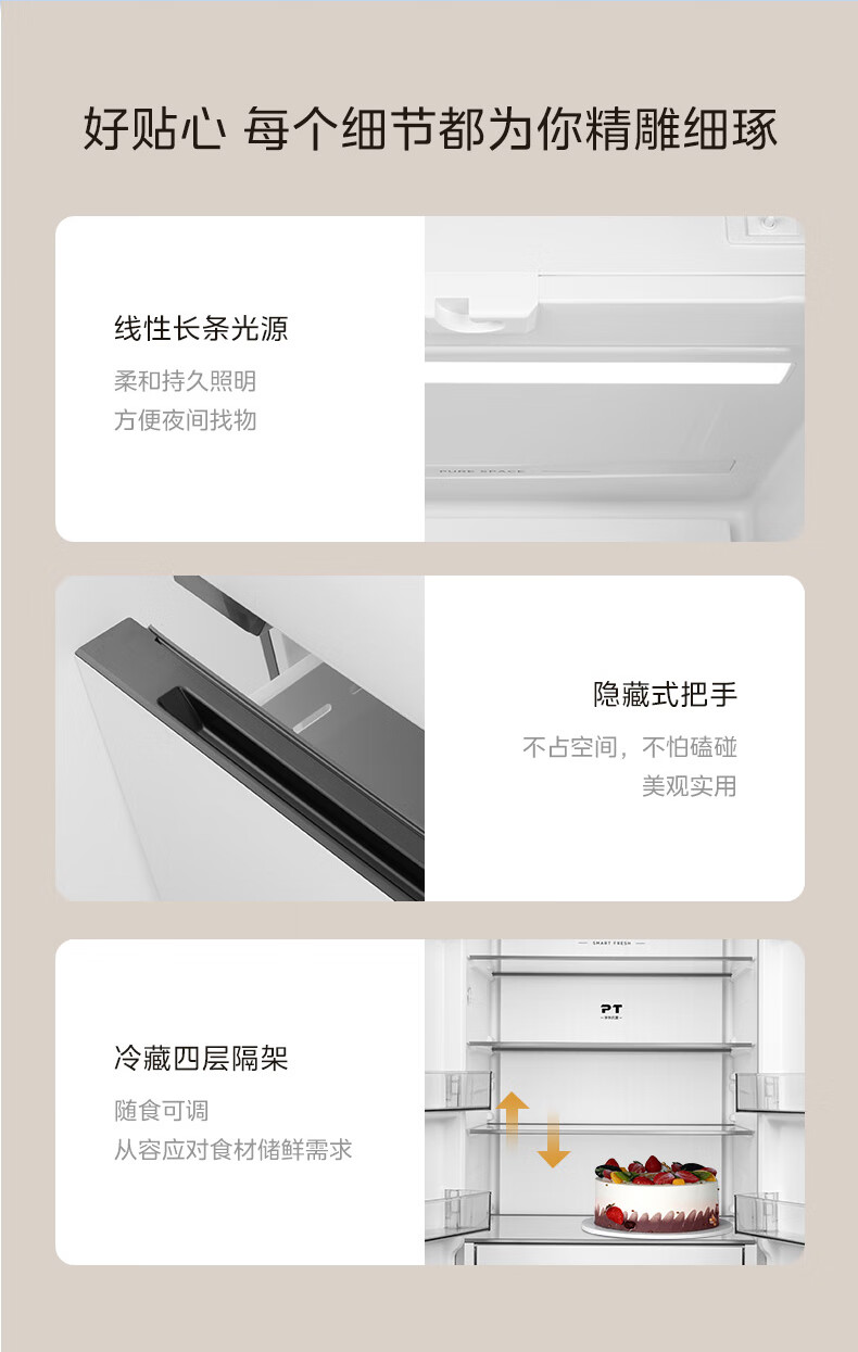 美的(Midea)420法式多门四门超薄纯平全嵌双变频一级大容量底部散热风冷无霜白色冰箱MR-420WUFPZE国家补贴
