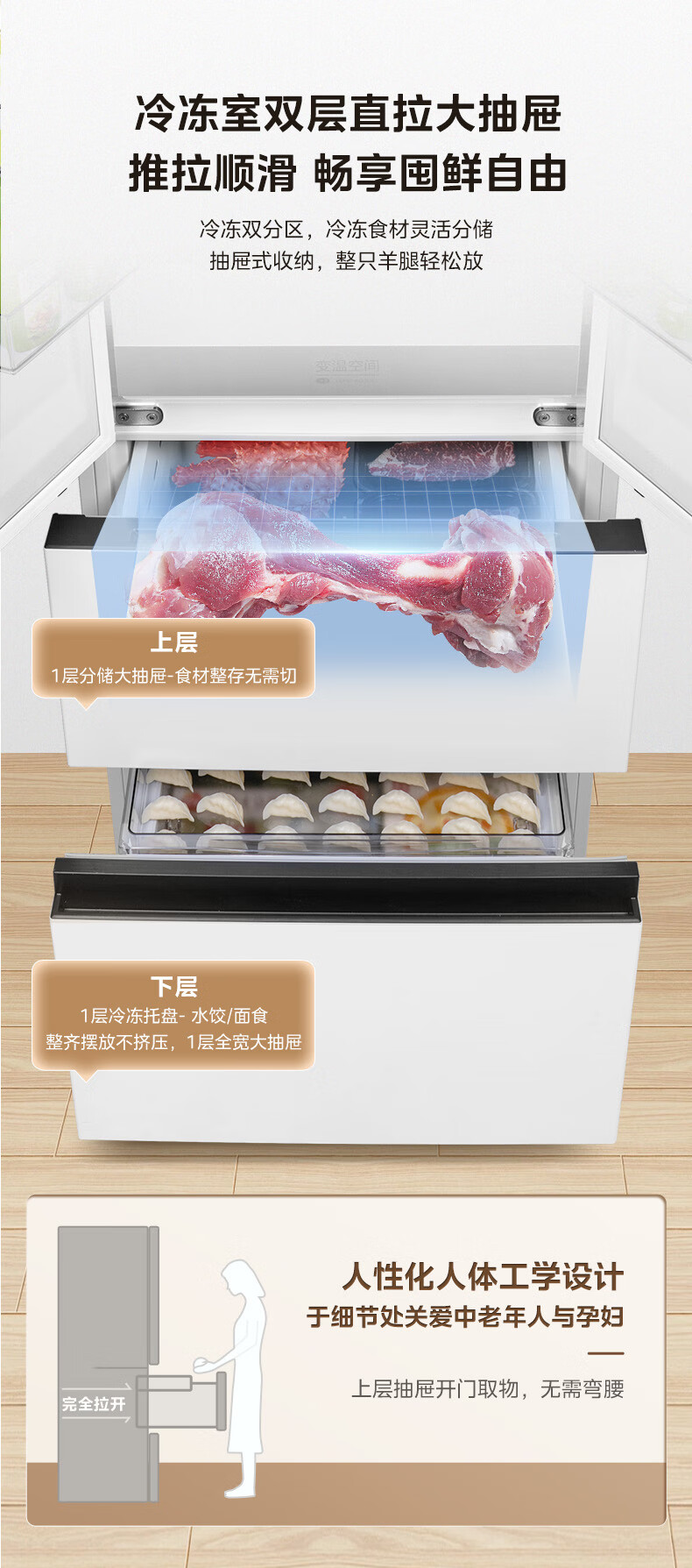 澳柯玛(AUCMA)300升家用冰柜减霜大容量冷柜-36℃超低温电子控温卧式冰箱 一级能效BC/BD-300DHNE 国家补贴