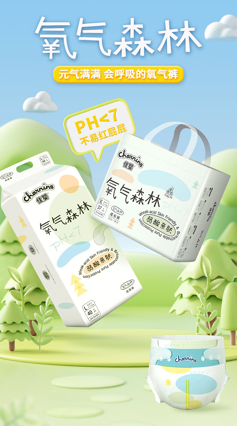 佳婴氧气森林纸尿裤L码40片超薄婴儿弱酸亲肤透气尿不湿