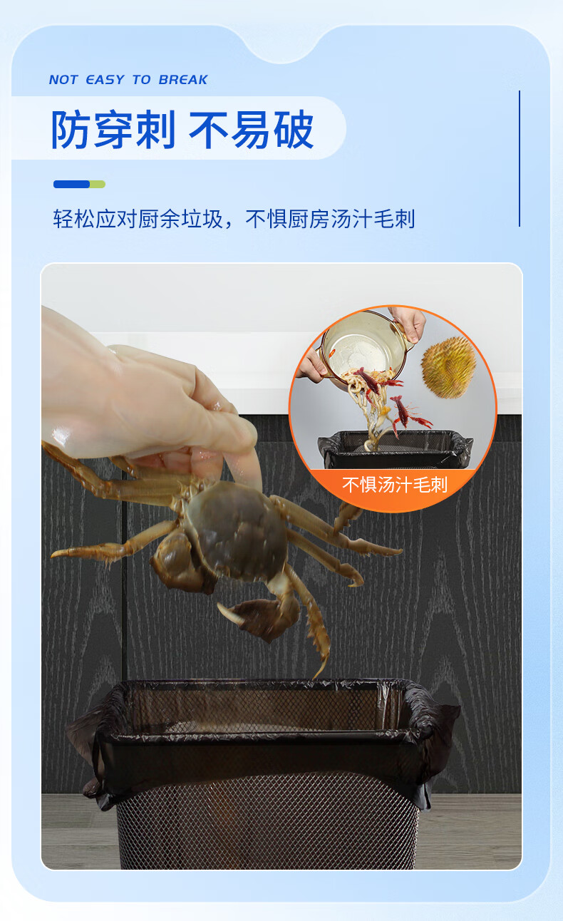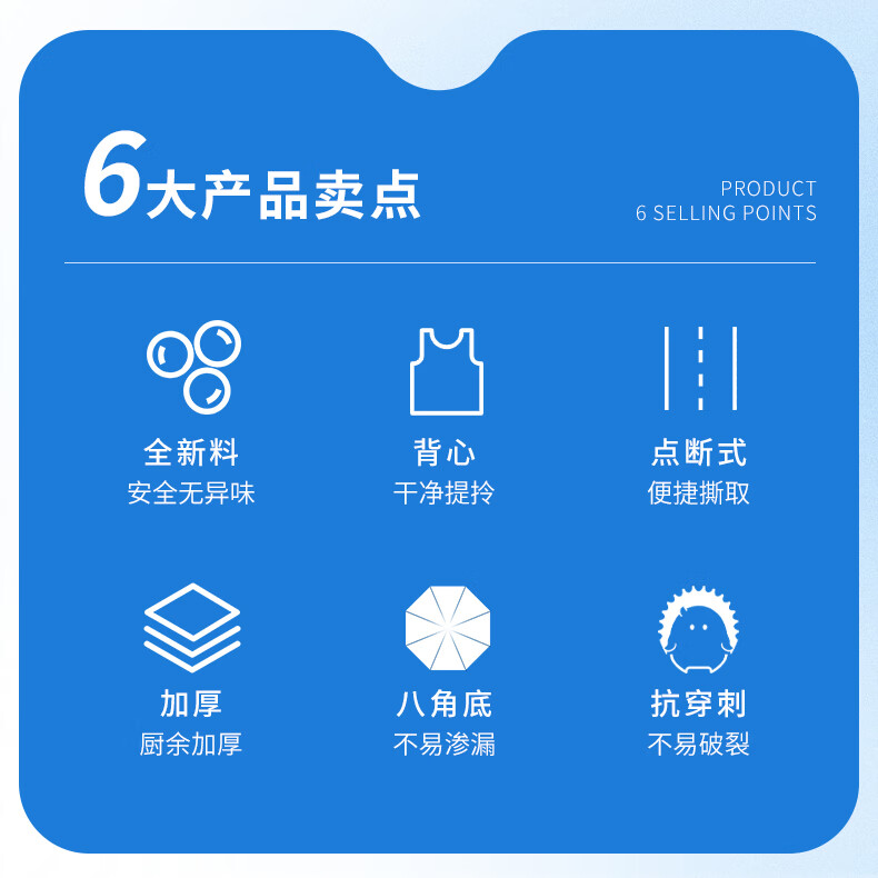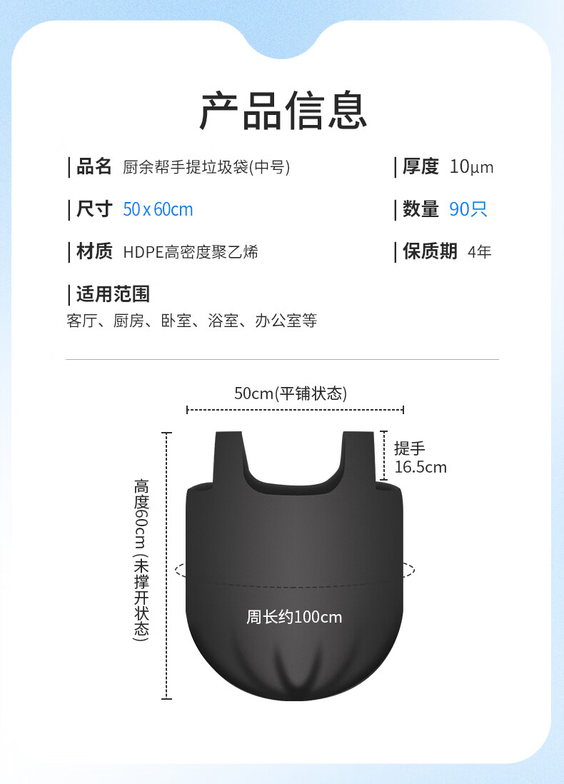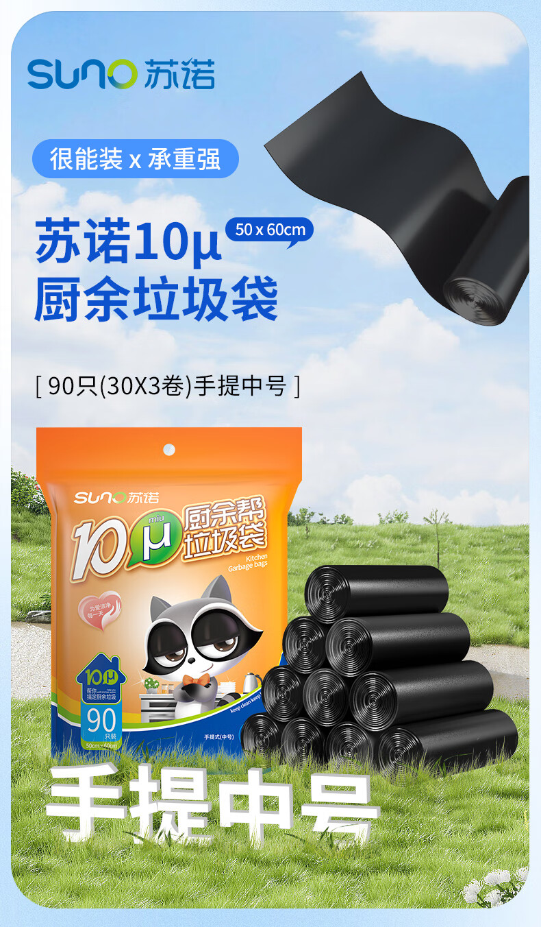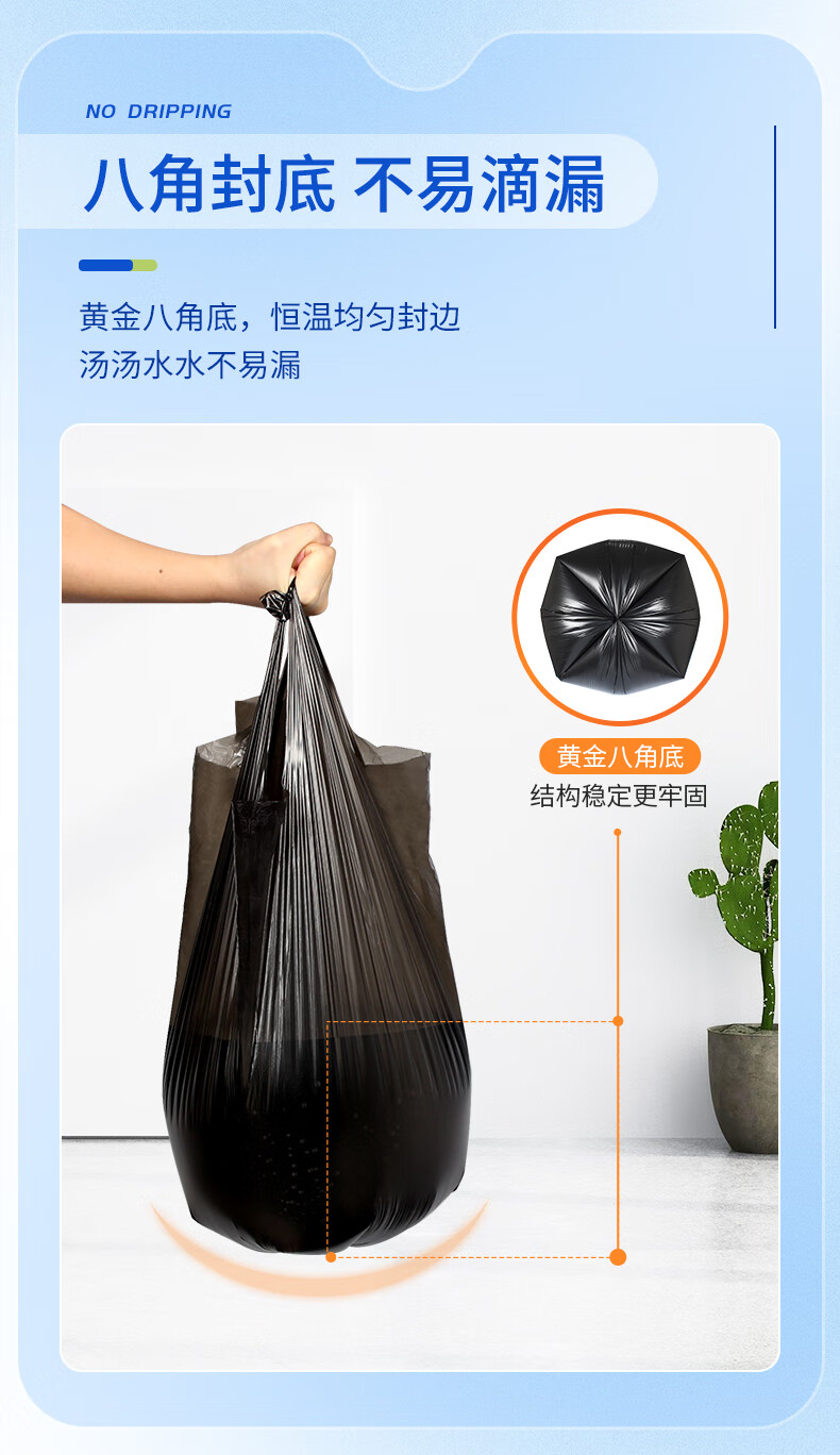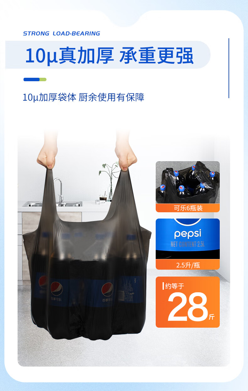 苏诺背心式垃圾袋黑色50*60cm*90只单面1丝加厚厨余专用厨房垃圾袋