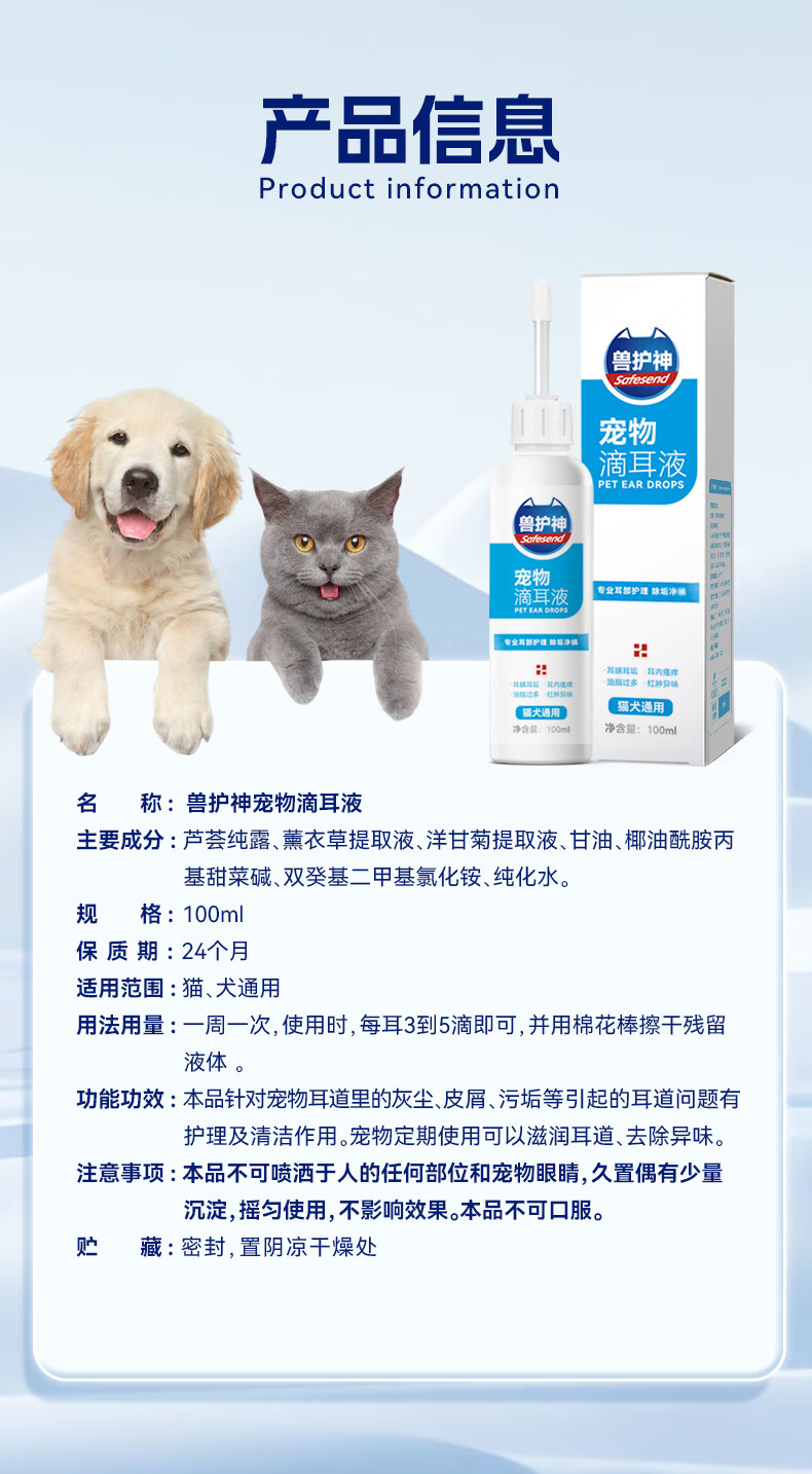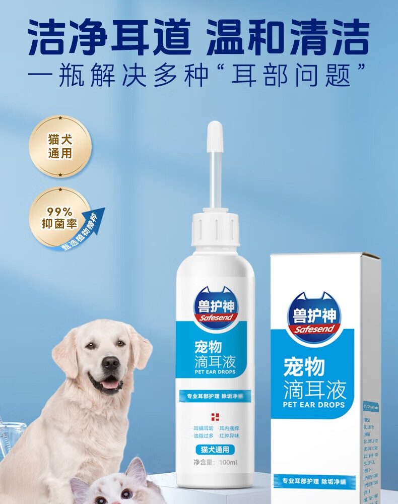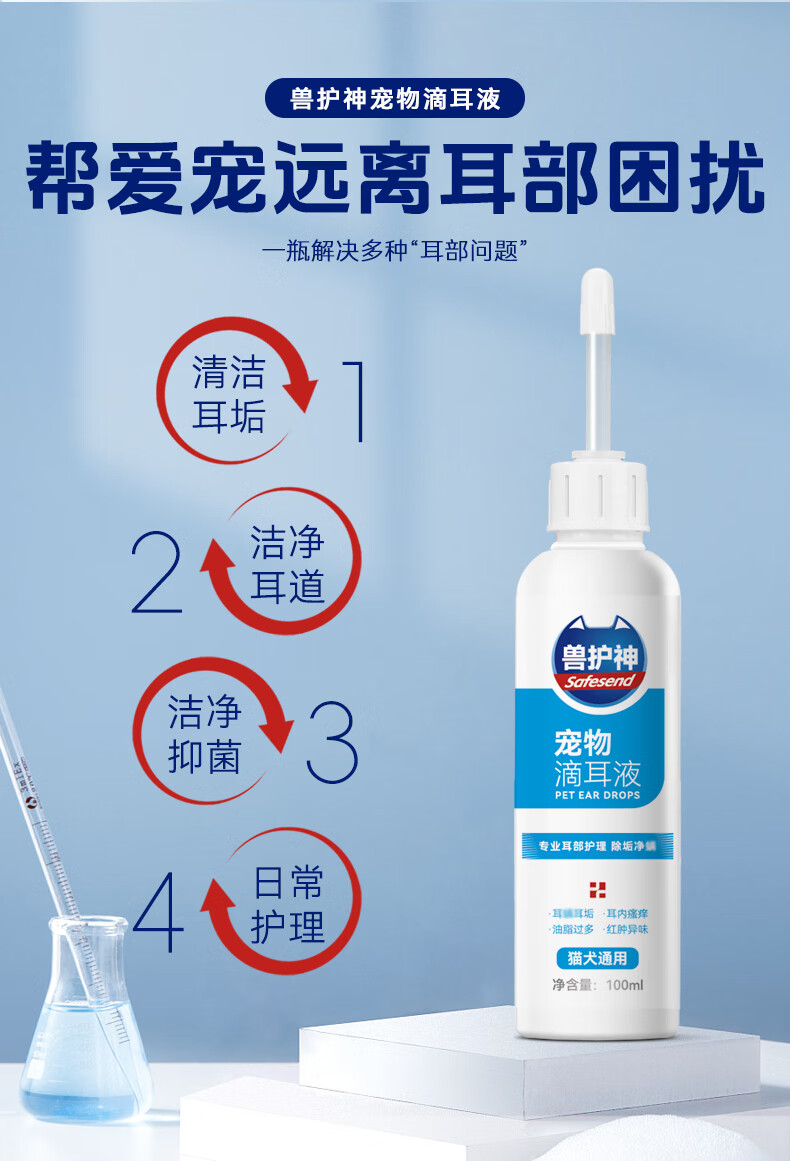 兽护神兽护神宠物洗耳液猫咪狗狗犬通用耳螨耳朵清洁滴耳液抑菌止痒除臭 一瓶装100ml滴耳液