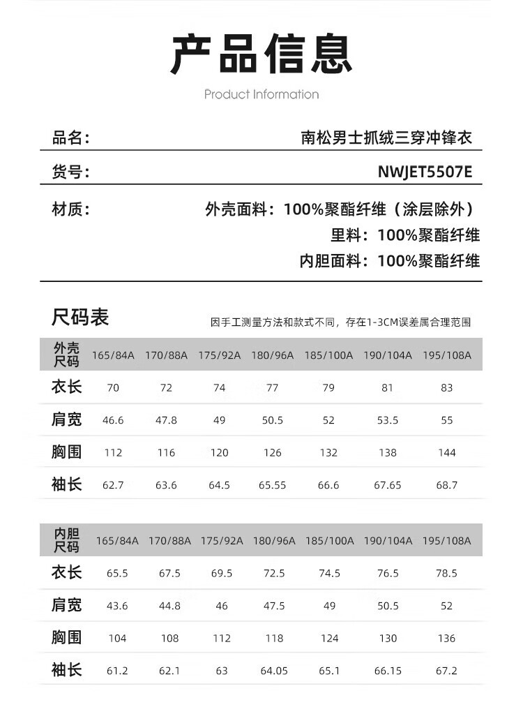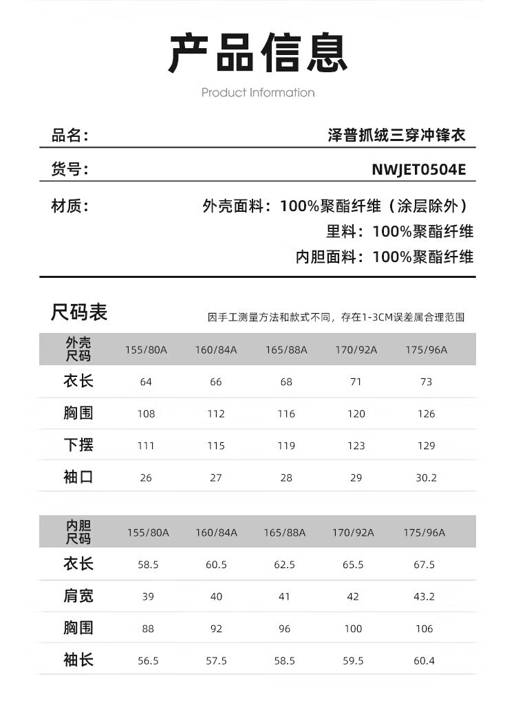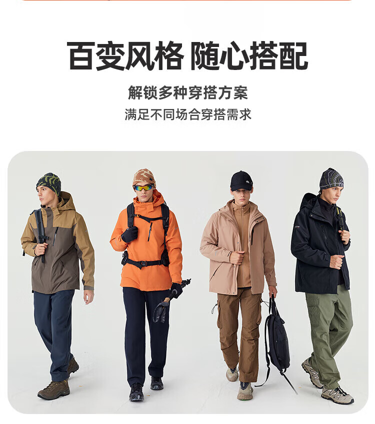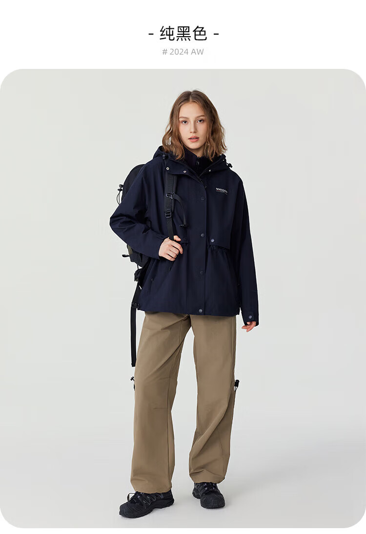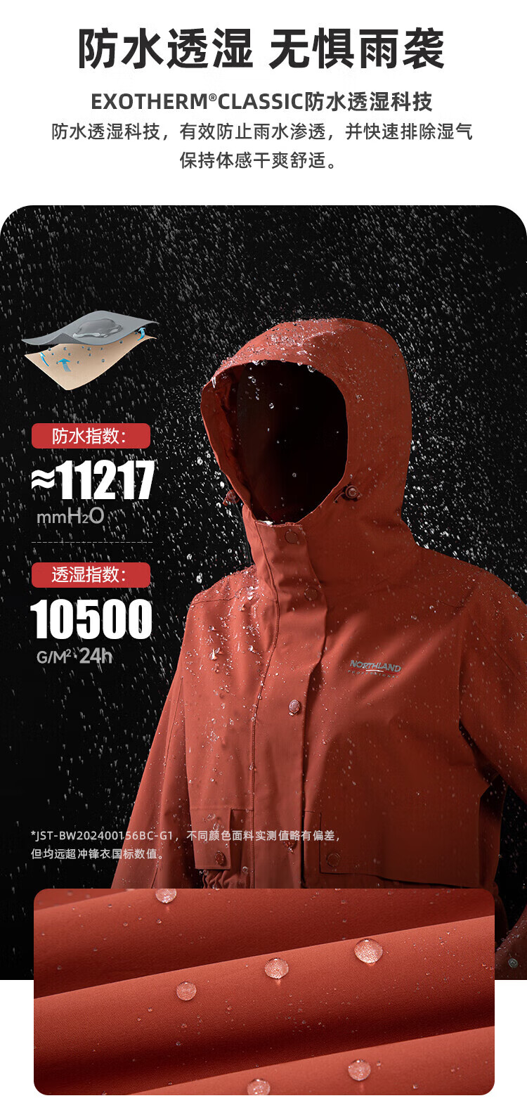 诺诗兰(NORTHLAND)户外全压胶防水抓绒三合一冲锋衣男女耐磨三防徒步登山夹克外套 纯黑色-男07E 175