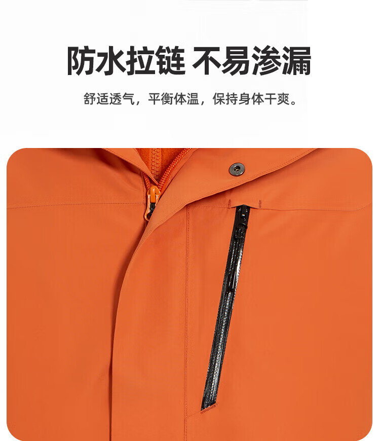 德尔.默克(Delmerk)冲锋上衣男女三合一可拆卸两件套防风登山滑雪外套团购定制 深蓝色三合一水貂绒内胆男女同款 XL